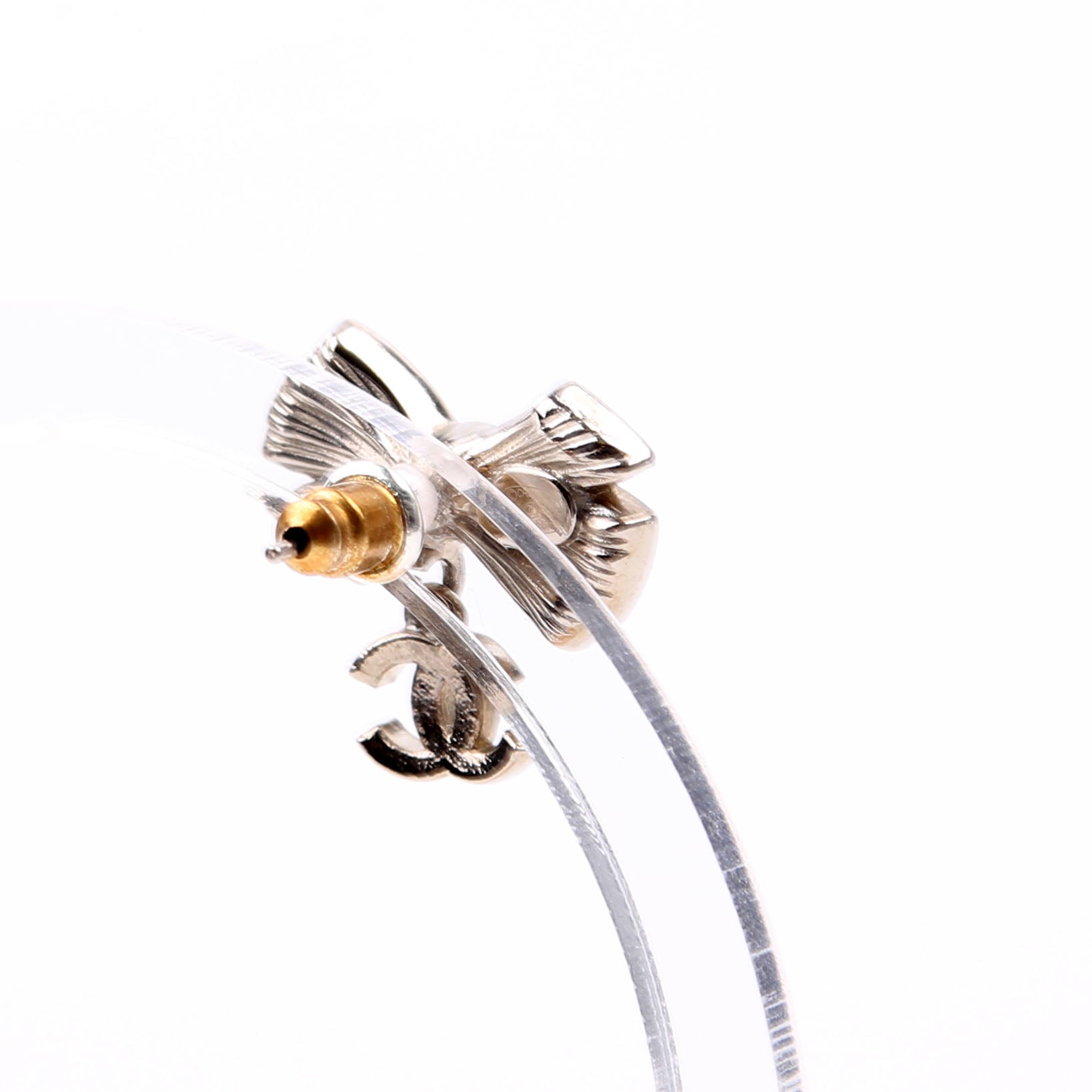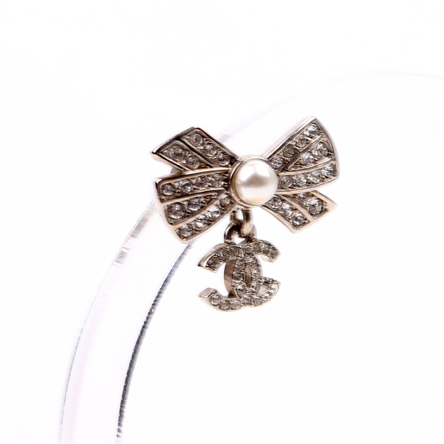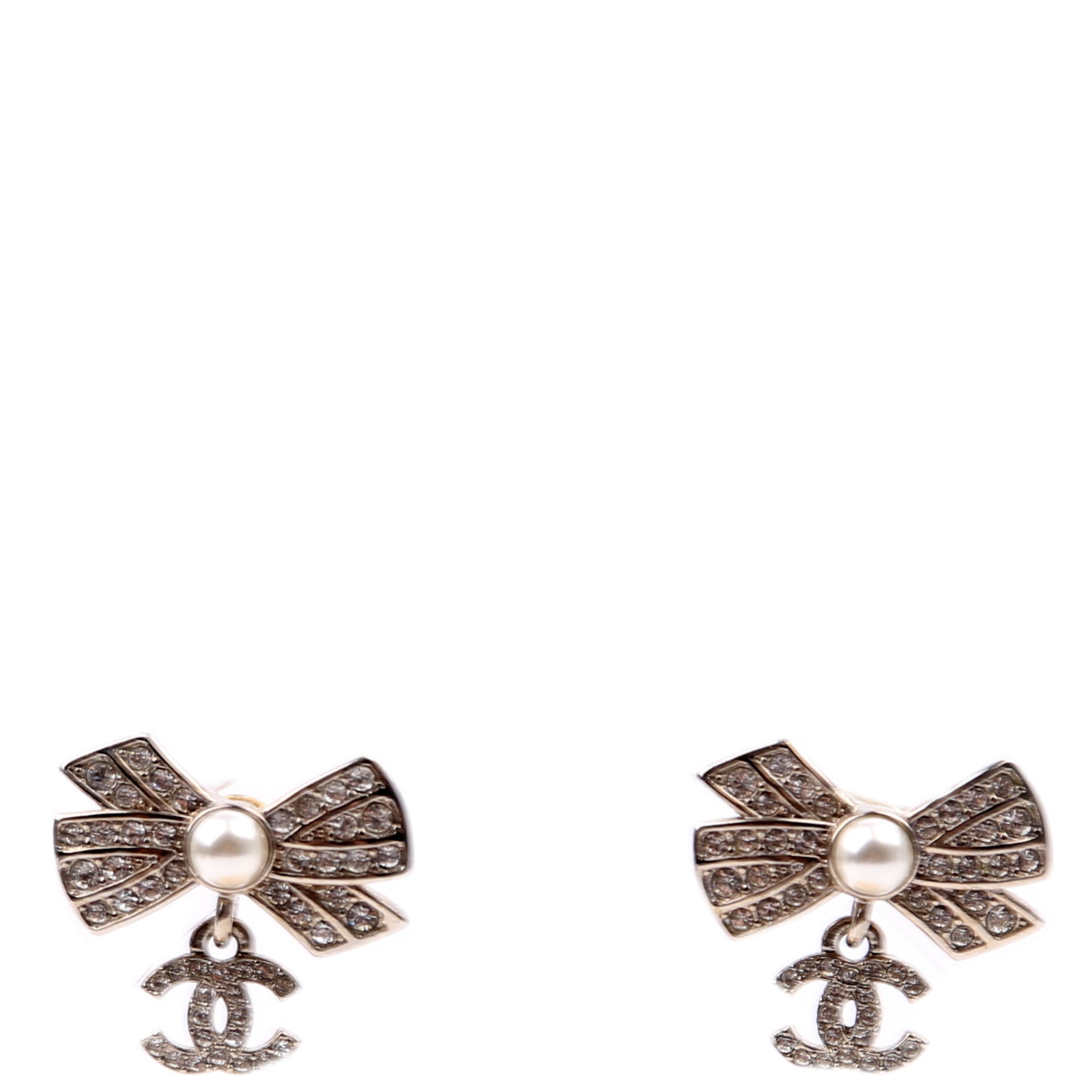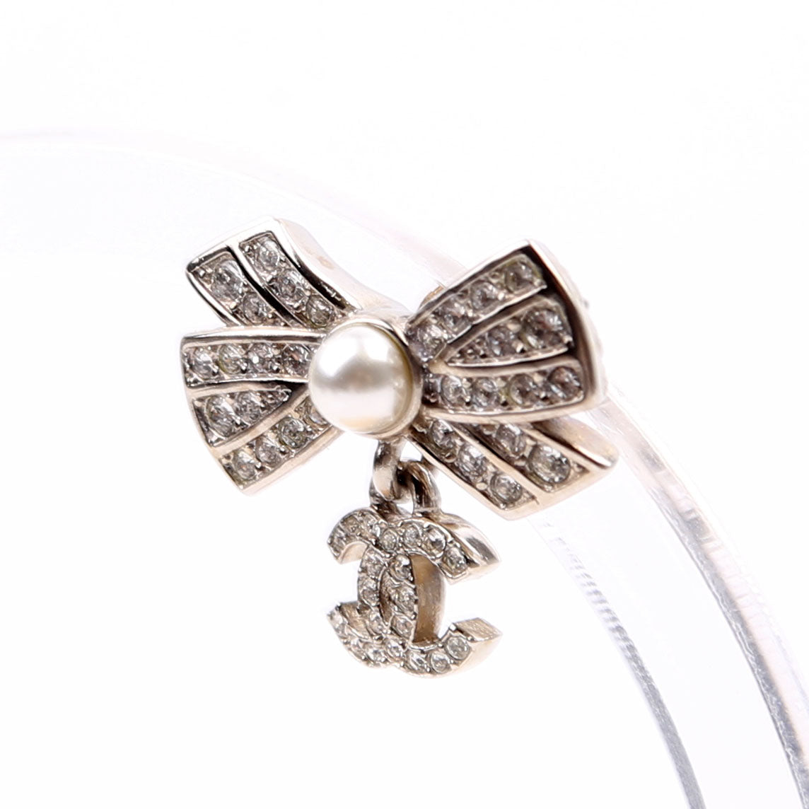 These pre-owned Chanel Crystal Bow CC Drop Small Earrings are guaranteed 100% authentic.