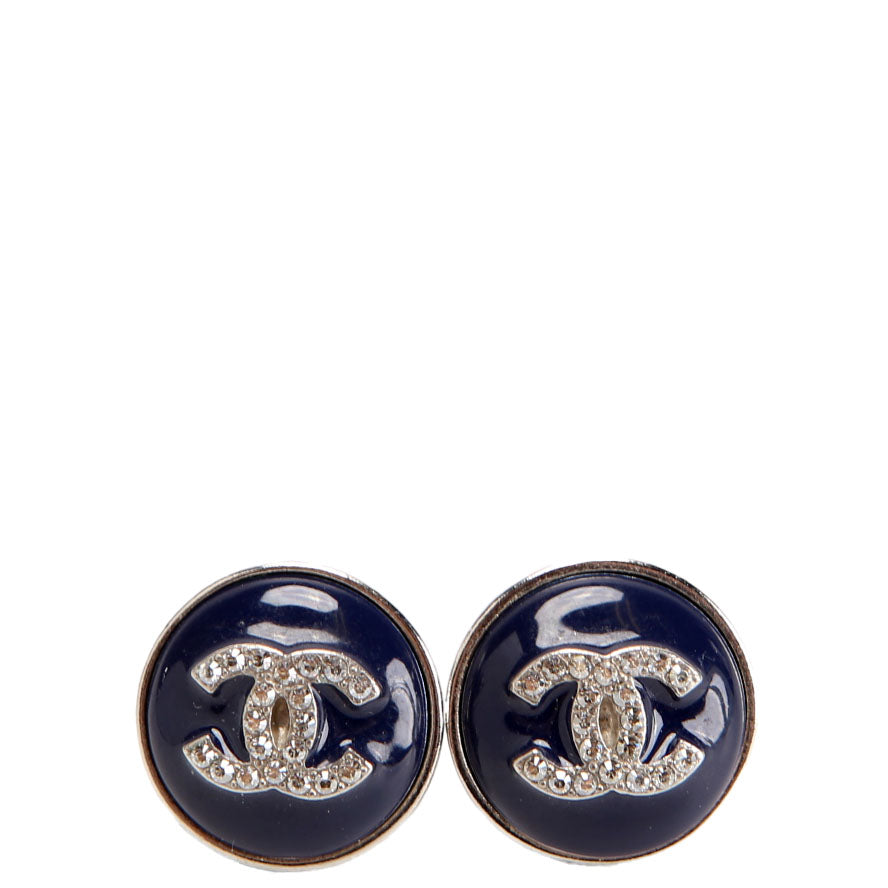 These pre-owned Chanel Crystal CC Enamel Round Earrings are guaranteed 100% authentic.