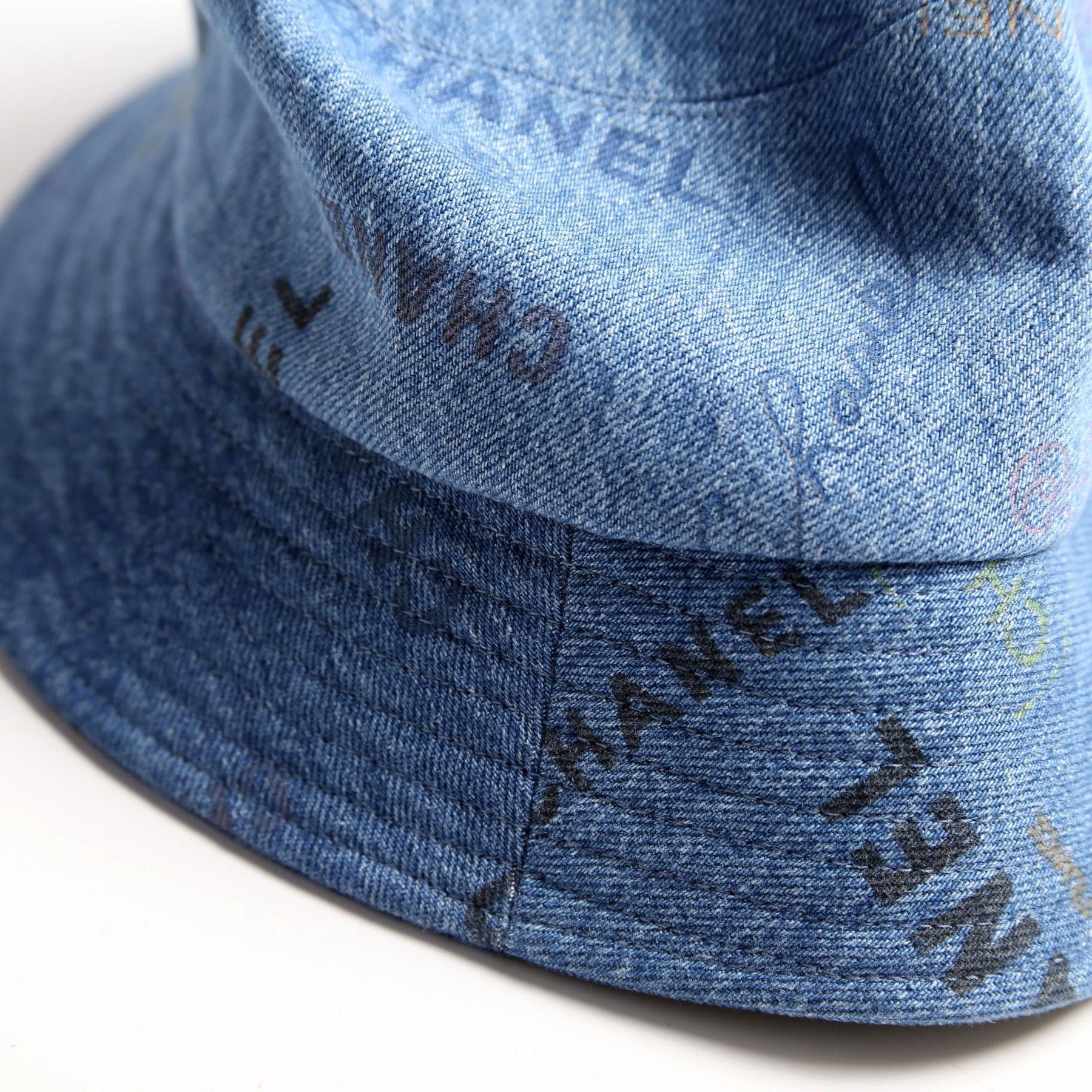 This pre-owned Chanel Denim Mood Logo Print Bucket Hat is guaranteed 100% authentic.