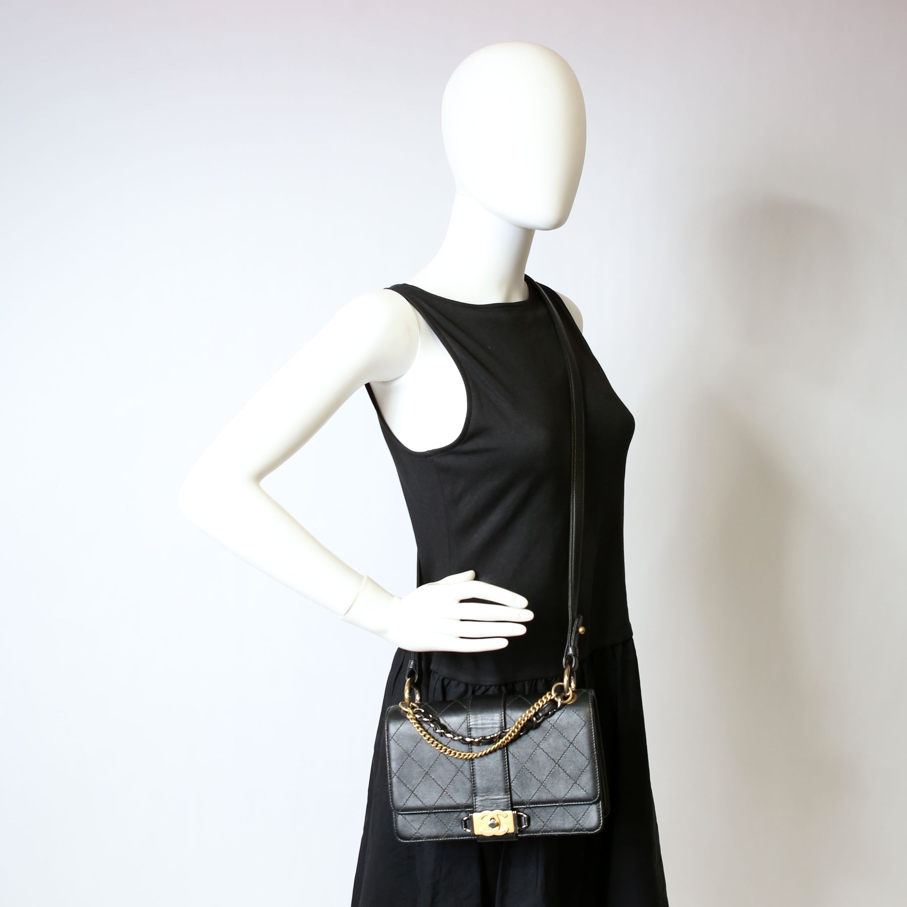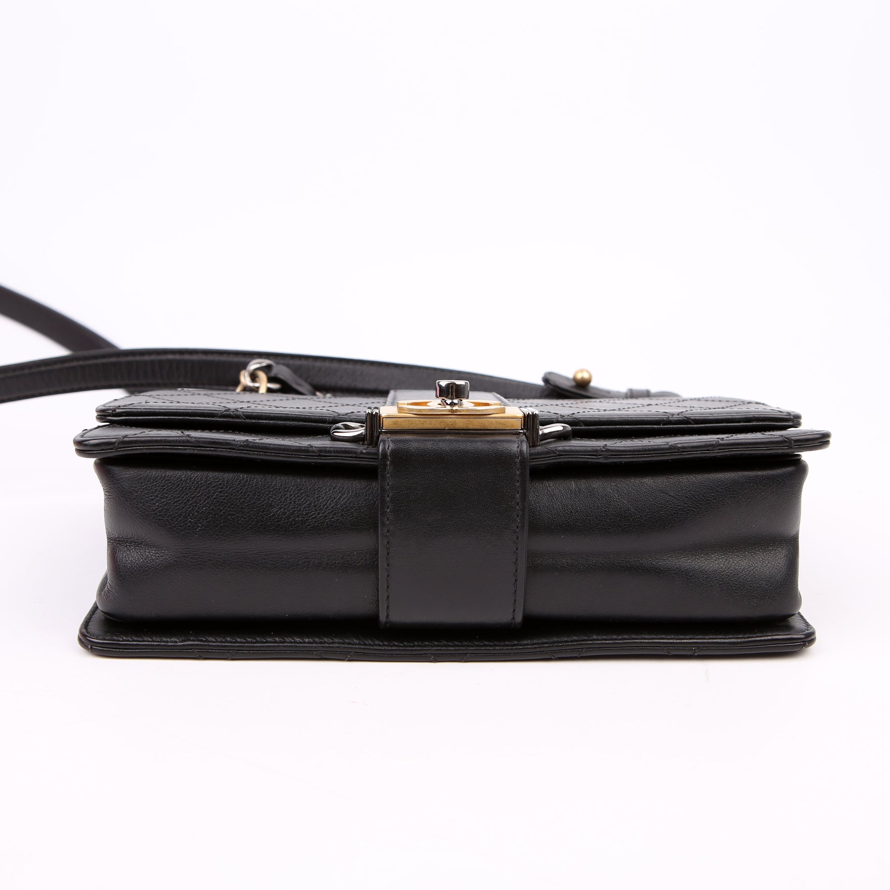 Double Chain Top Handle Flap Calfskin 26M Black