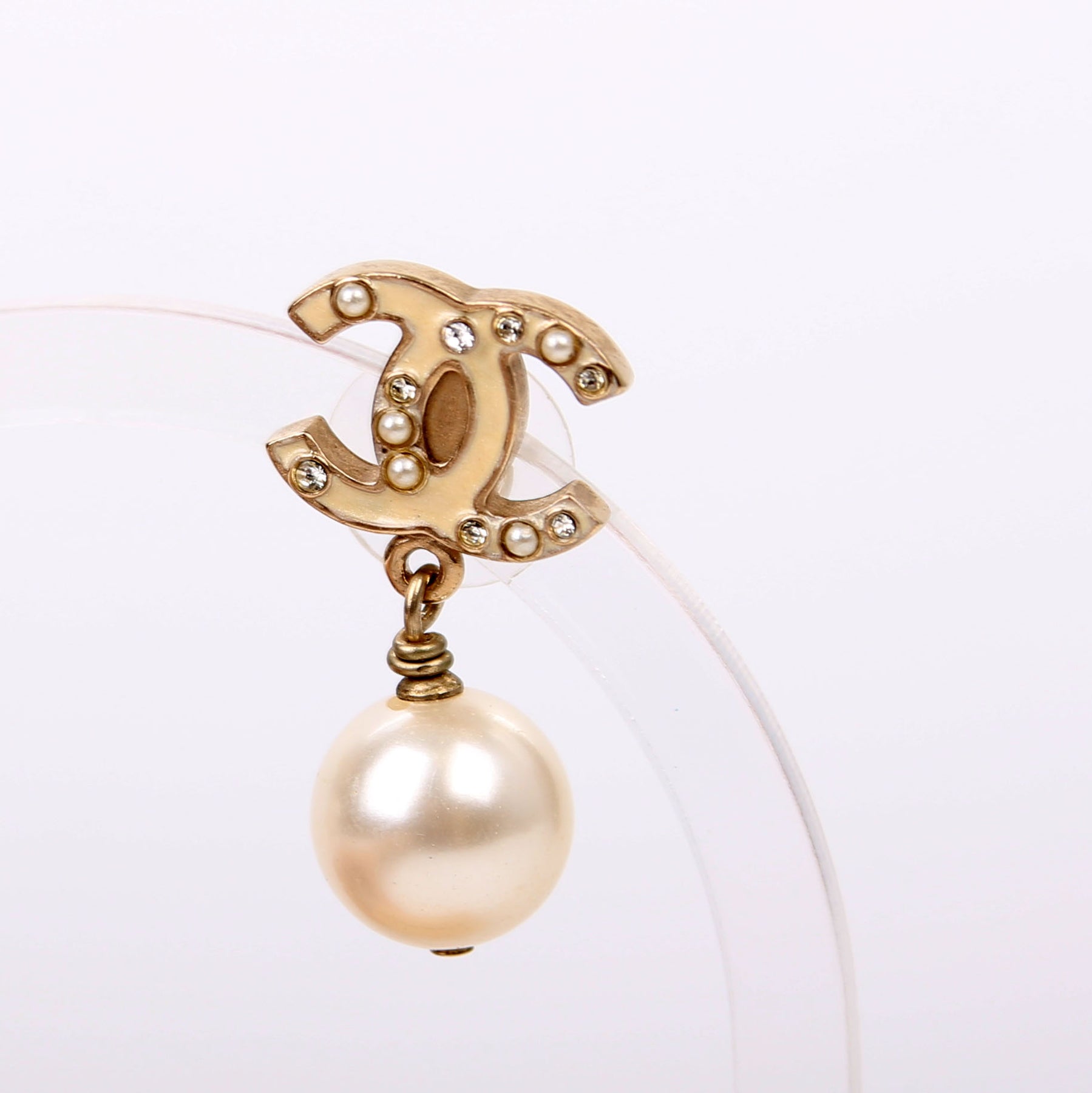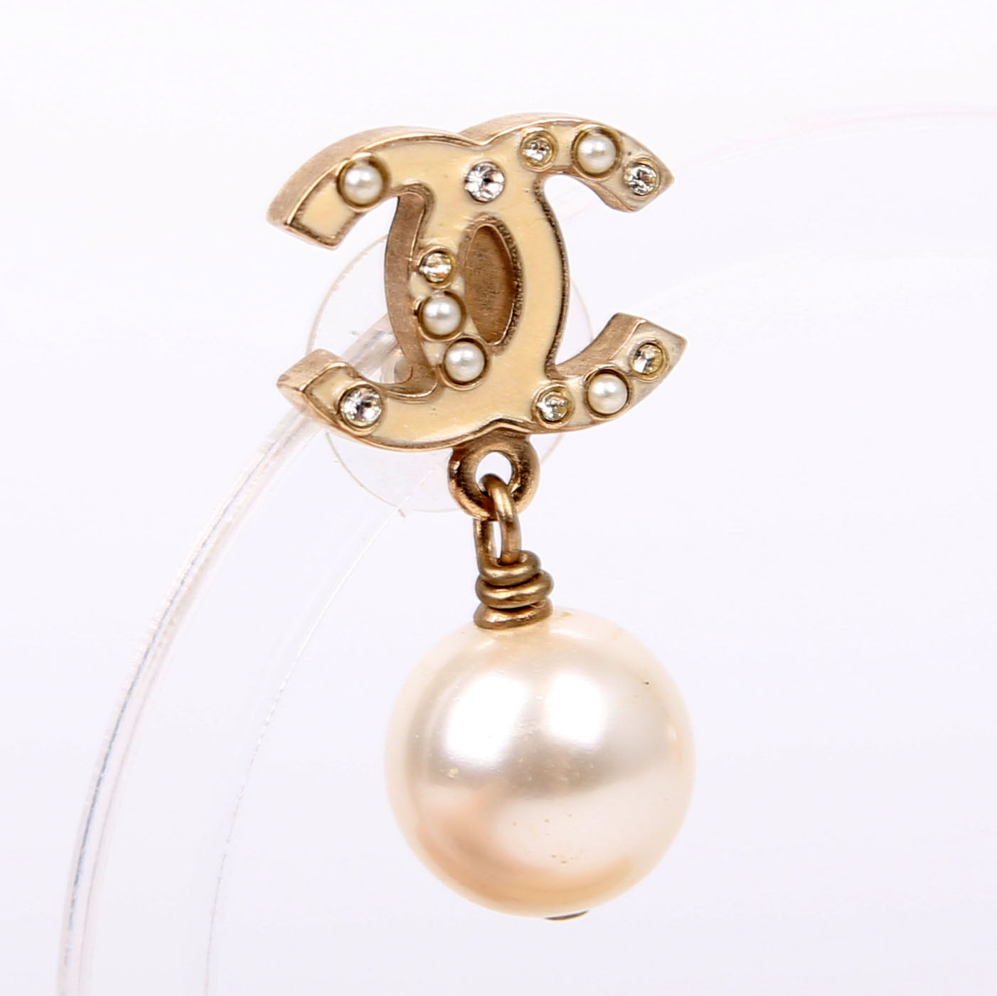 These pre-owned Chanel Enamel CC Pearl Drop Earrings are guaranteed 100% authentic.