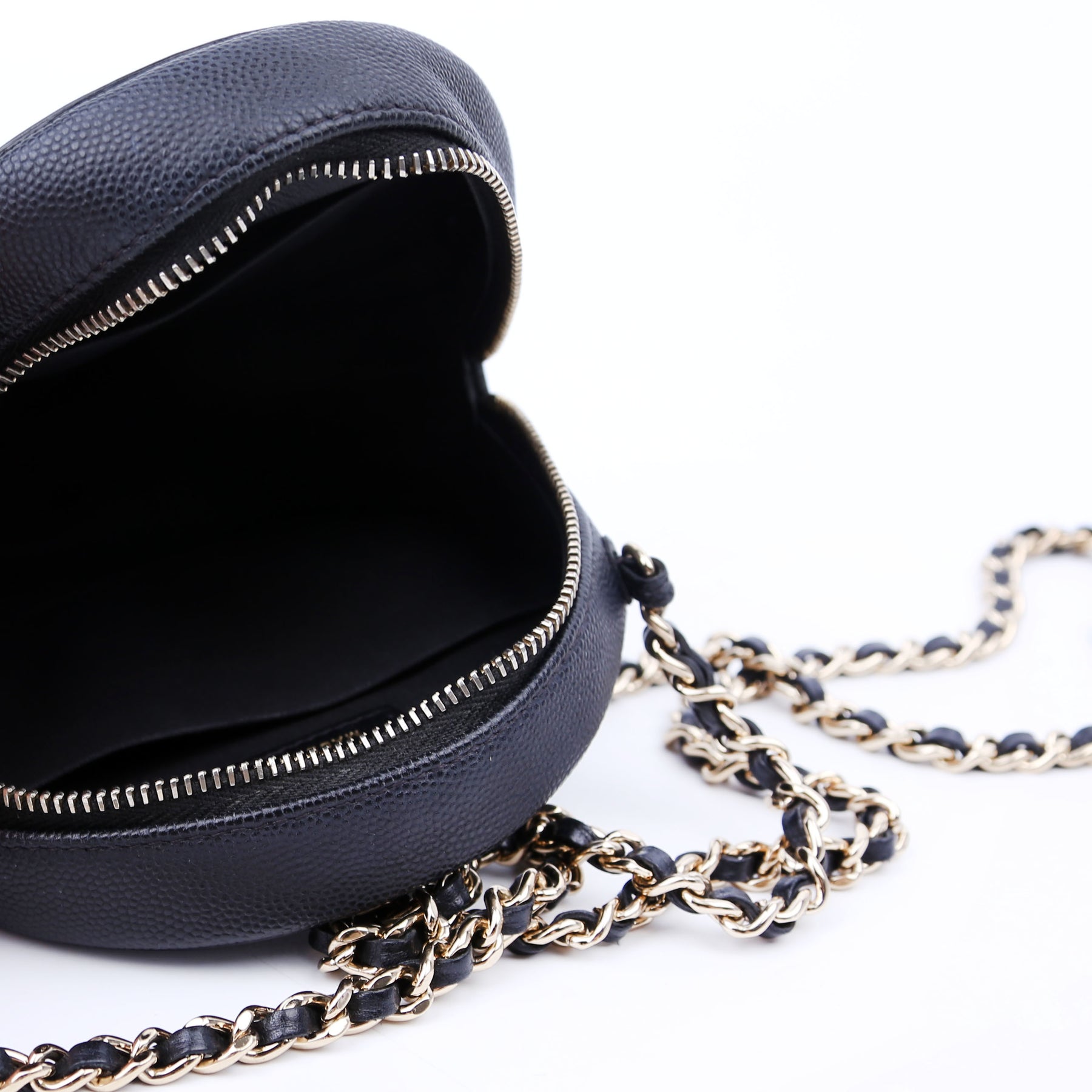 This pre-owned Chanel Filigree Round Crossbody Caviar is guaranteed 100% authentic.
