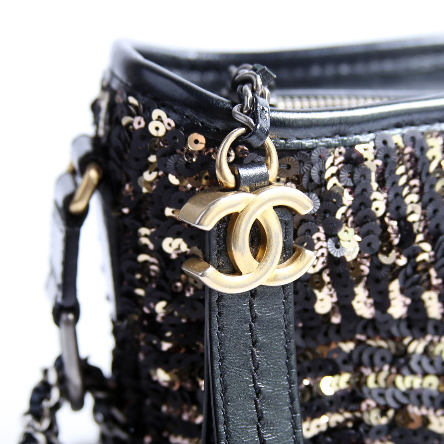 This pre-owned Chanel Gabrielle Hobo Small Sequin 28M is guaranteed 100% authentic.