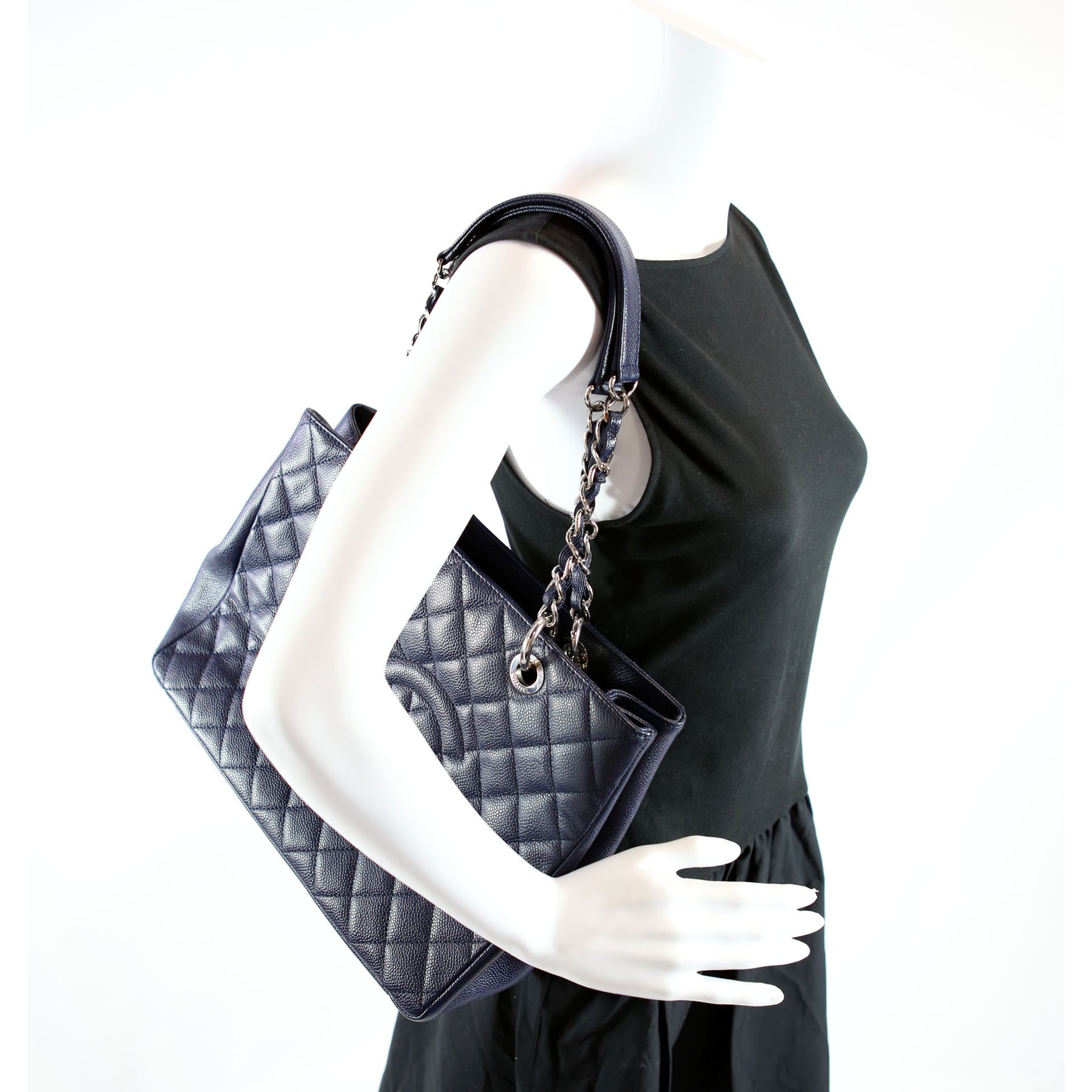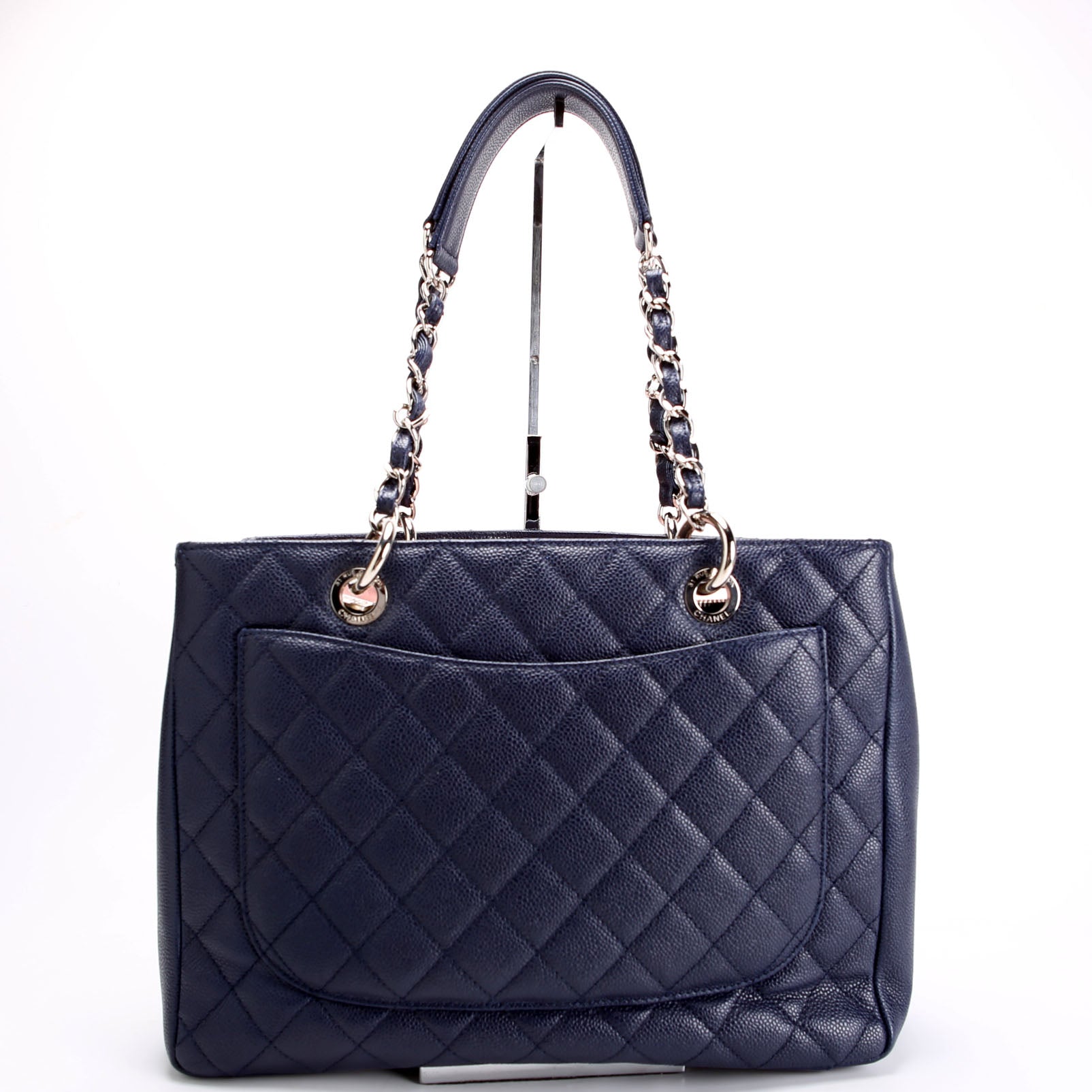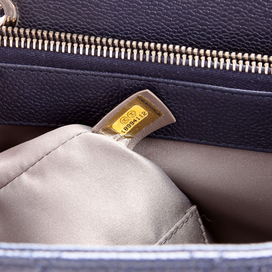 Grand Shopping Tote Caviar 18M Navy/Silver