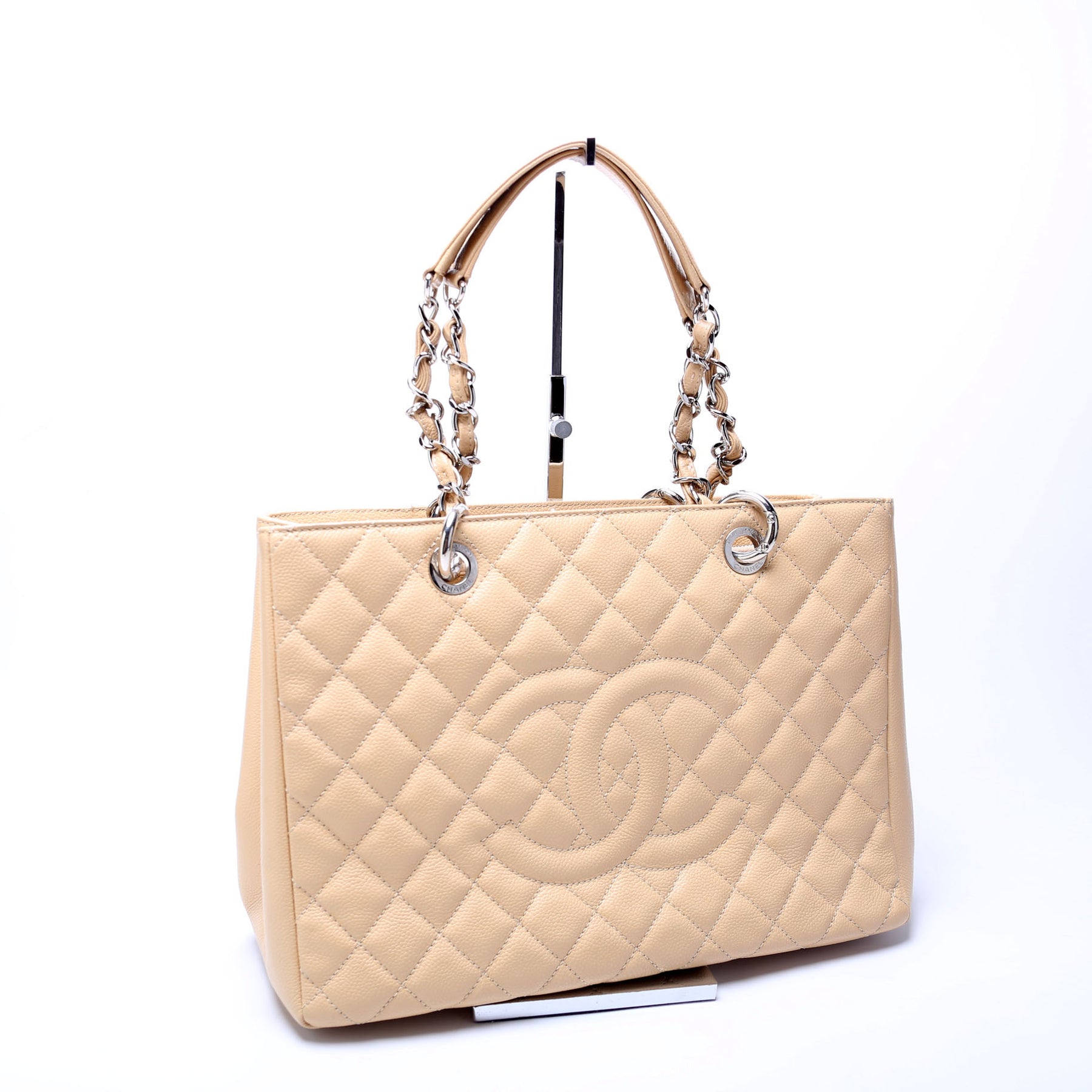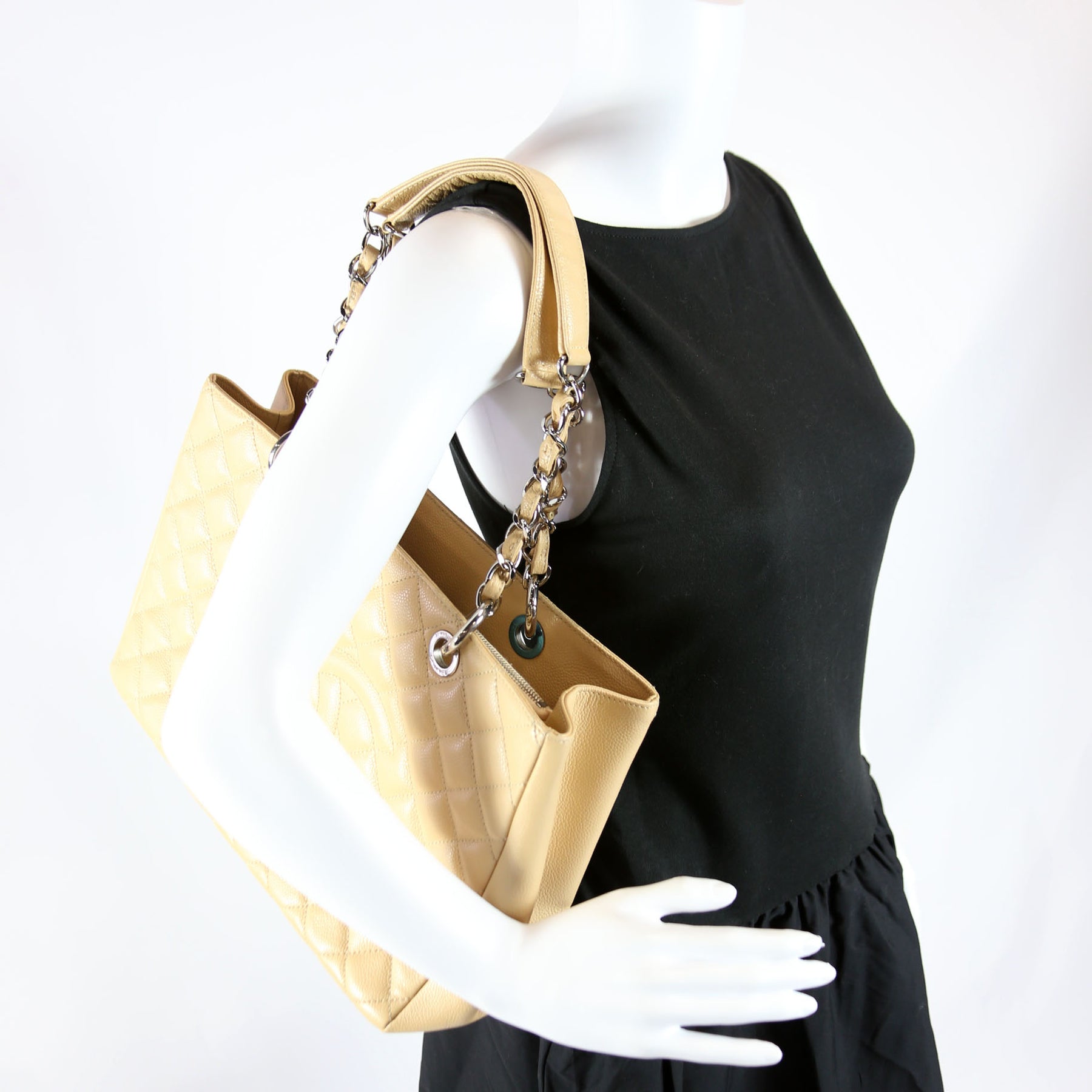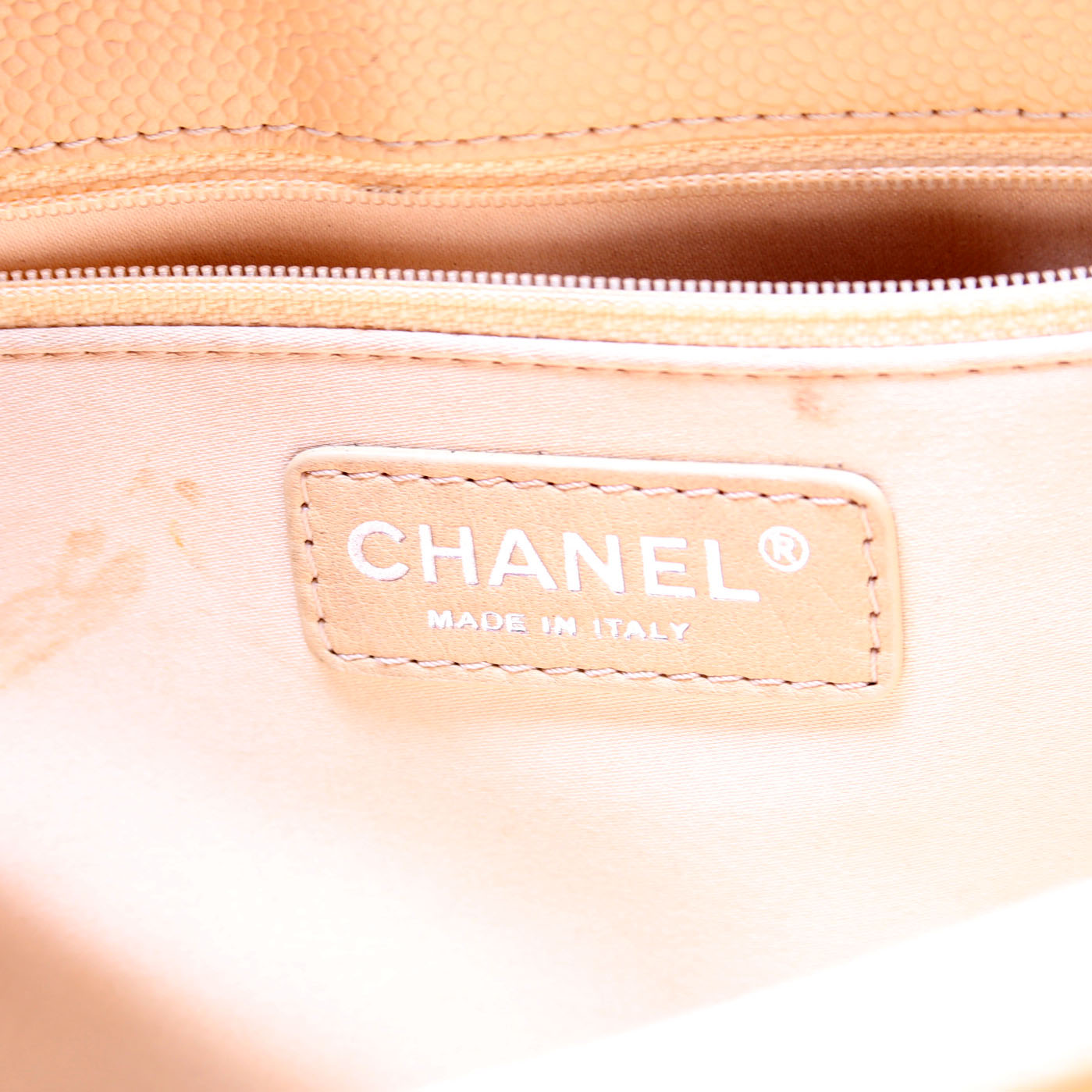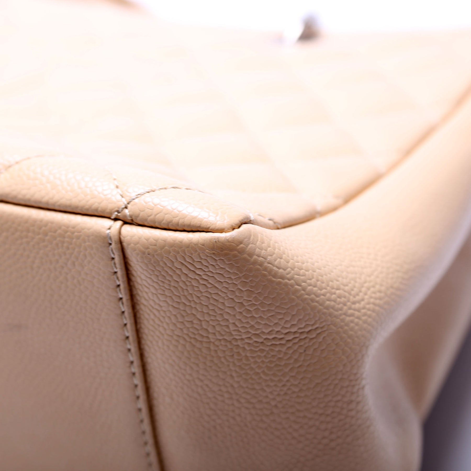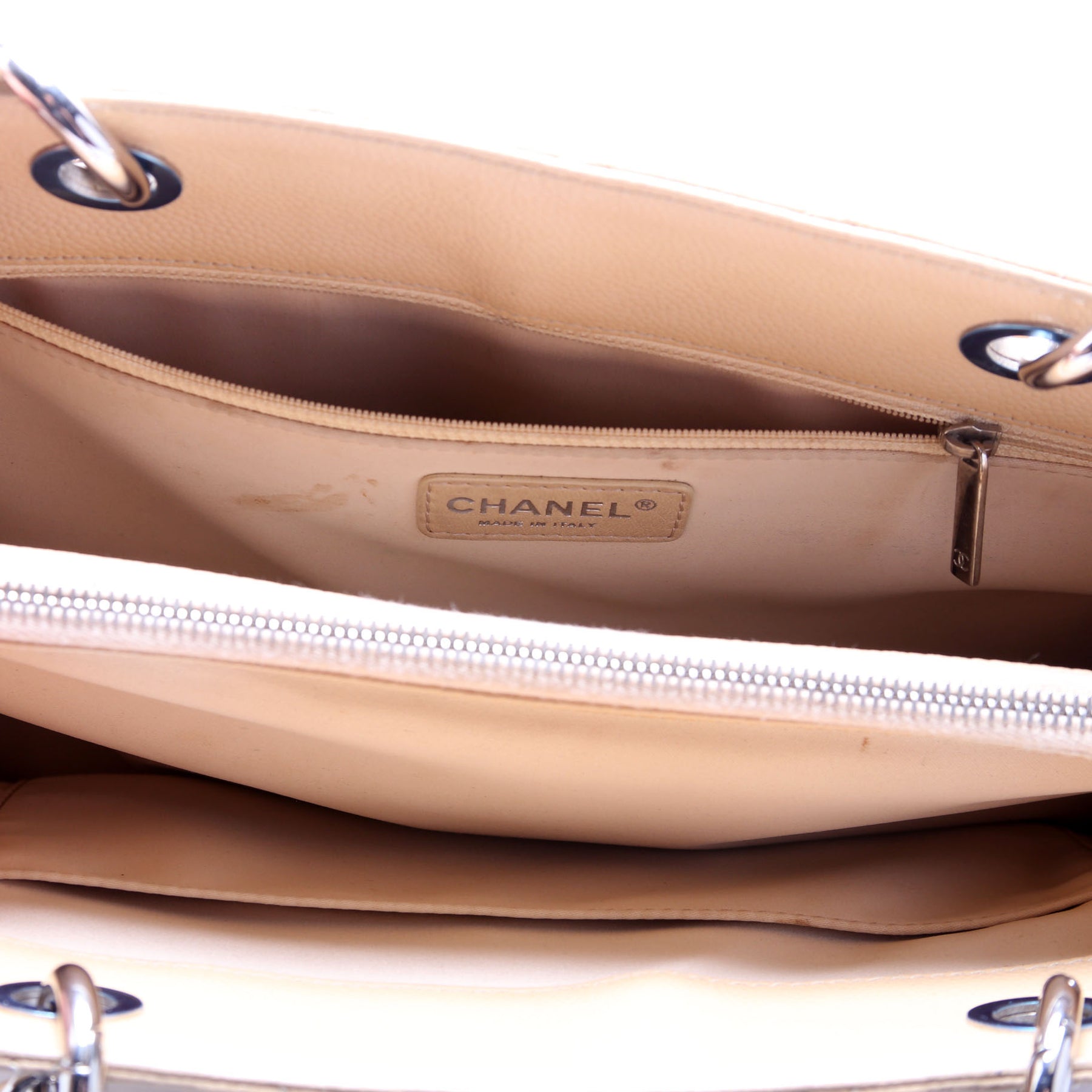 This pre-owned Chanel Grand Shopping Tote is guaranteed 100% authentic. The exterior is in the classic Chanel Caviar leather.