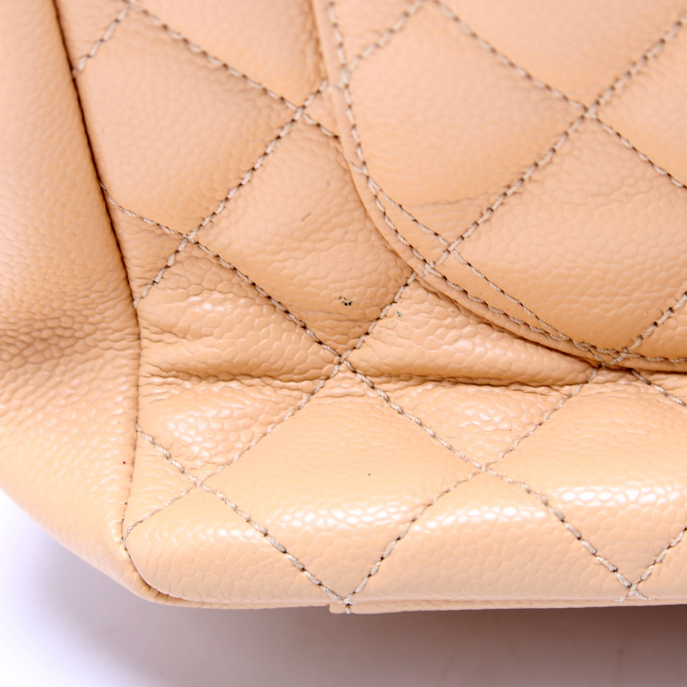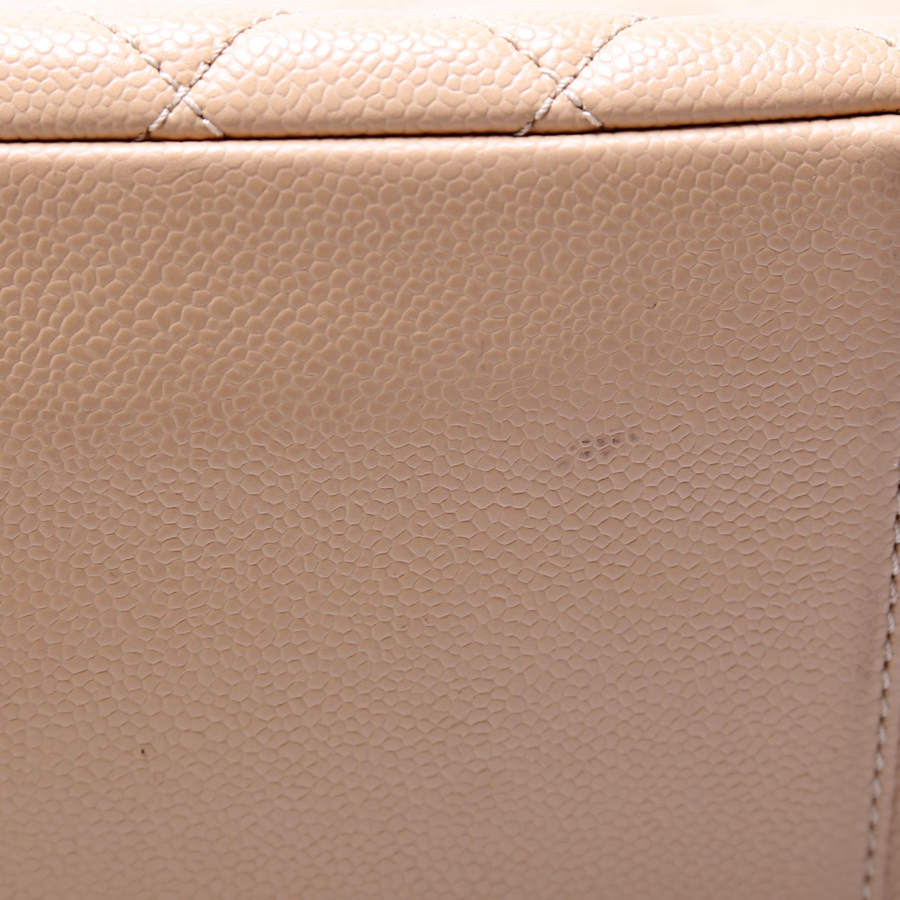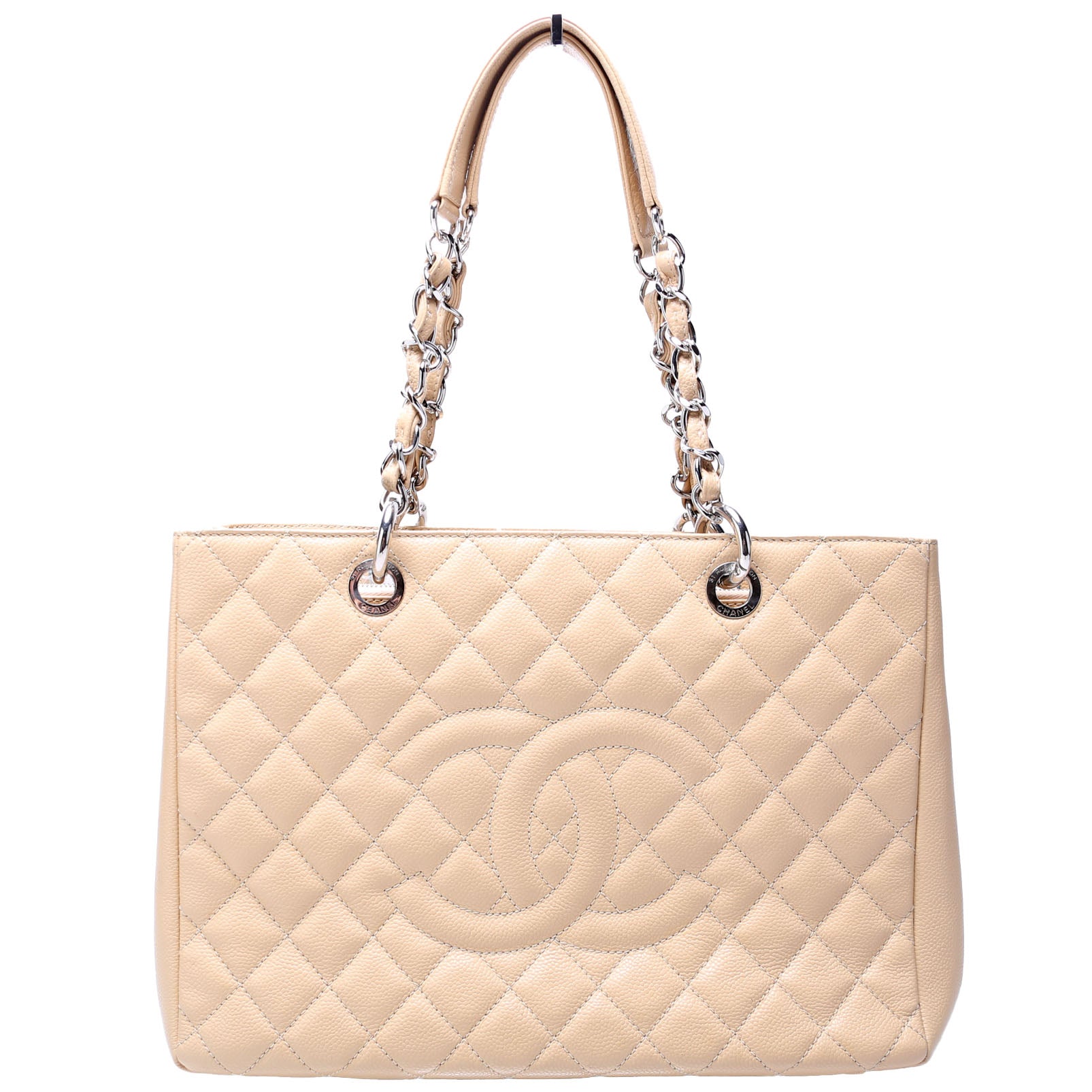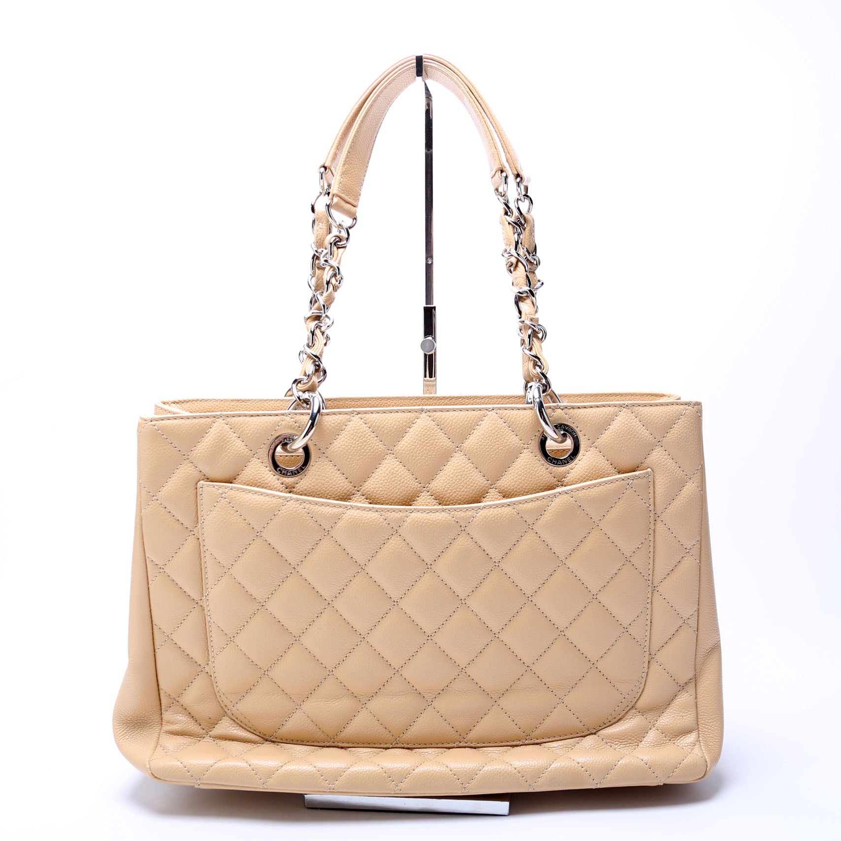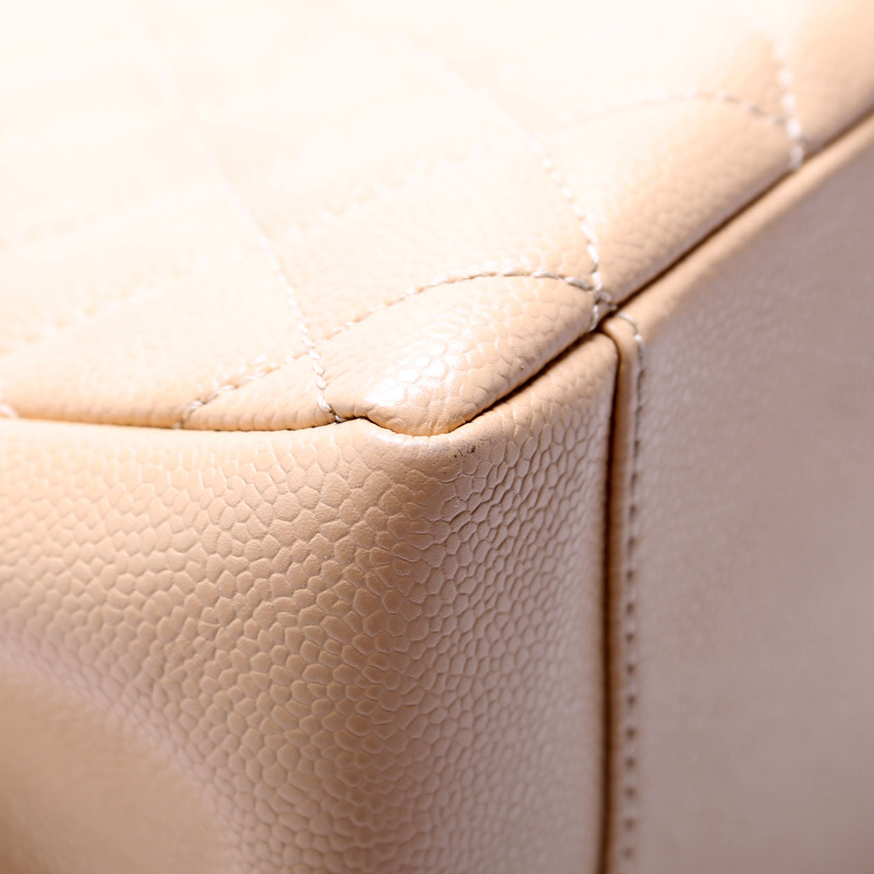 This pre-owned Chanel Grand Shopping Tote is guaranteed 100% authentic. The exterior is in the classic Chanel Caviar leather.