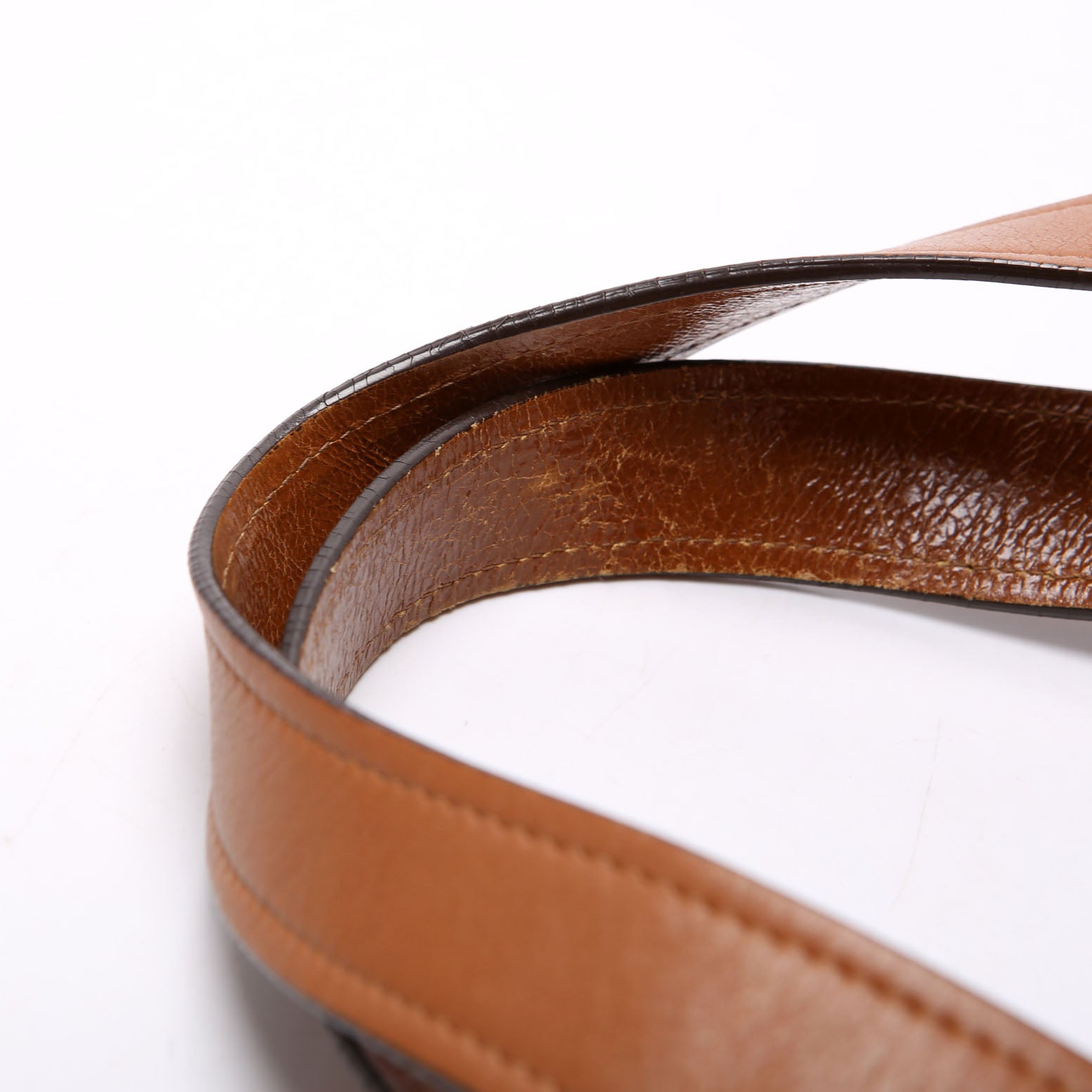 Handle: The leather handles show wear and rubbing.
