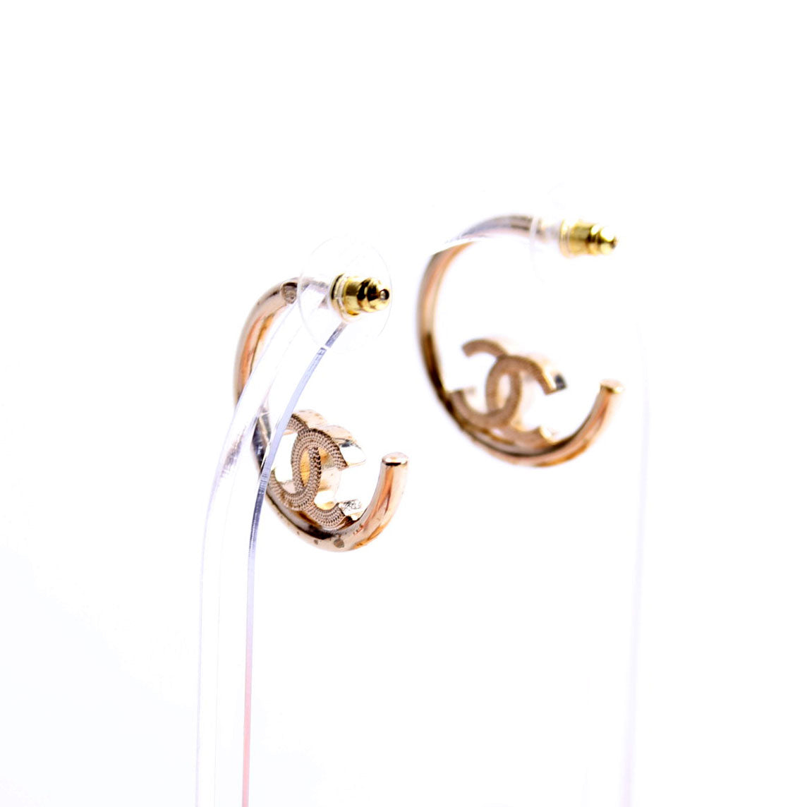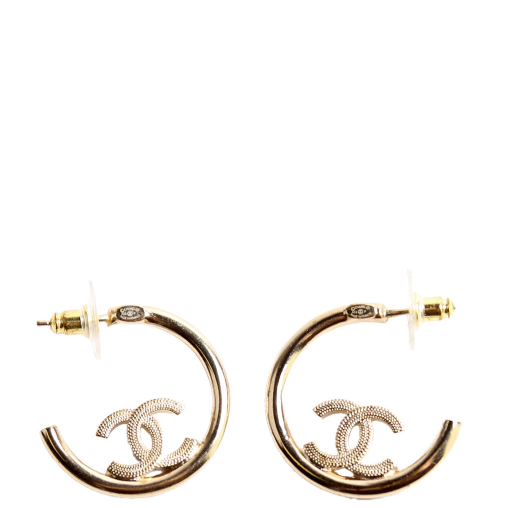 These pre-owned Chanel Metal Textured CC Hoops are guaranteed 100% authentic.