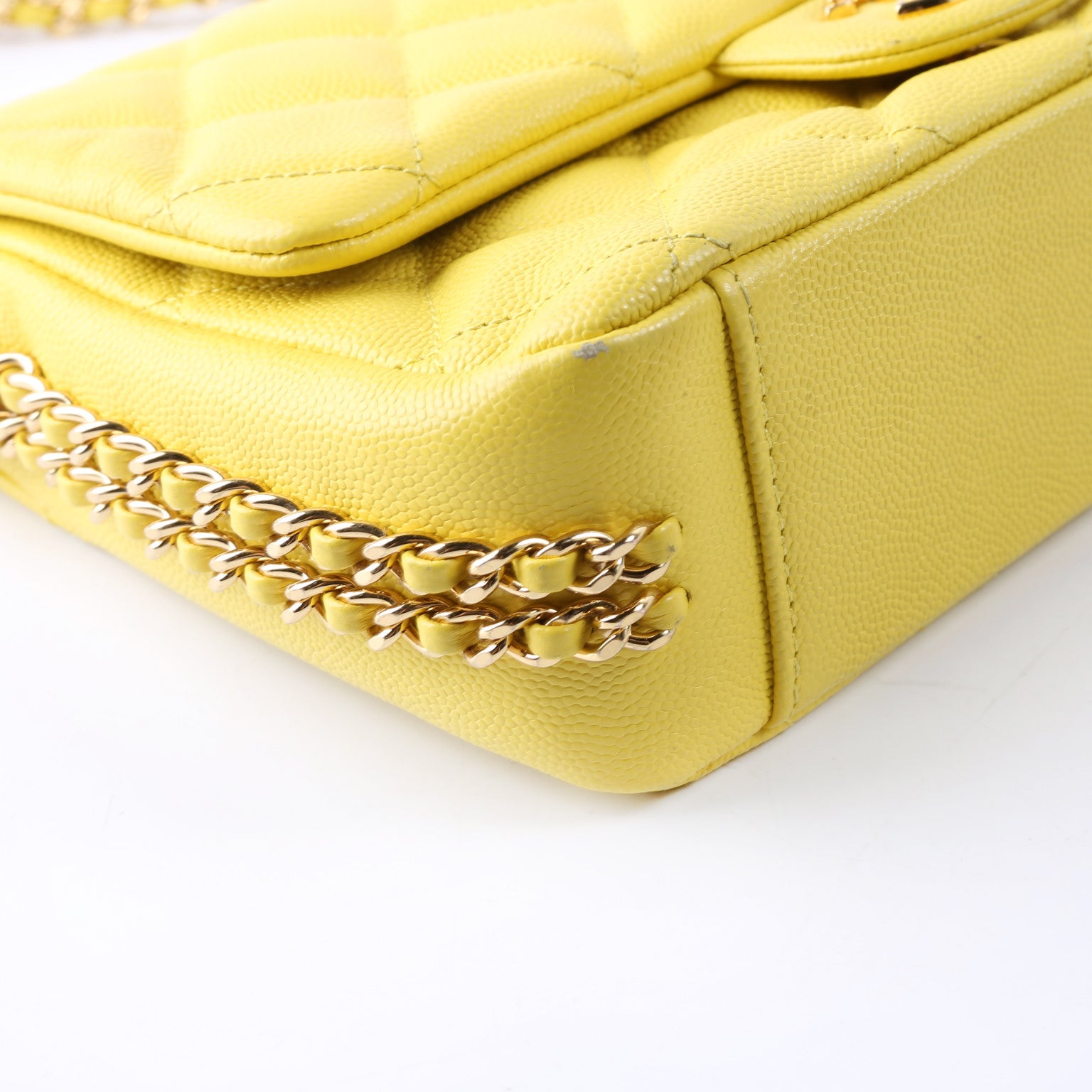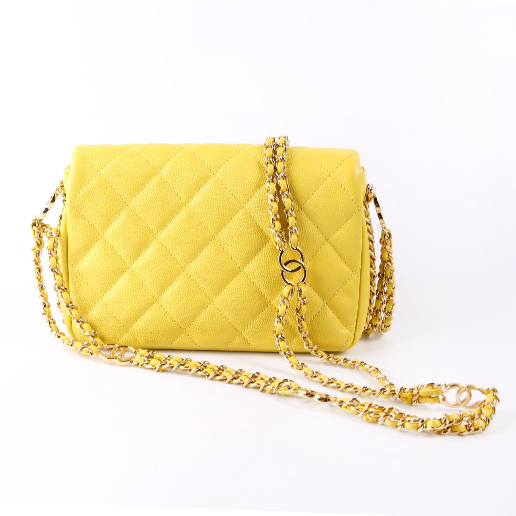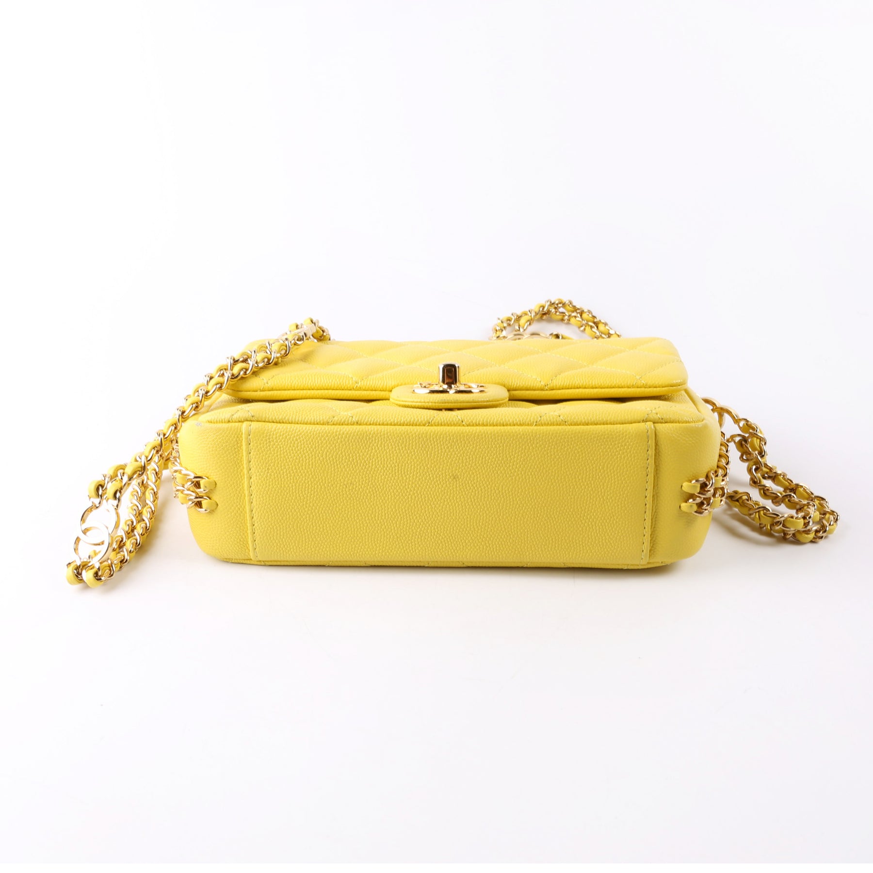 This pre-owned Chanel Mini CC You Flap is guaranteed 100% authentic. The exterior is in the classic Caviar leather.