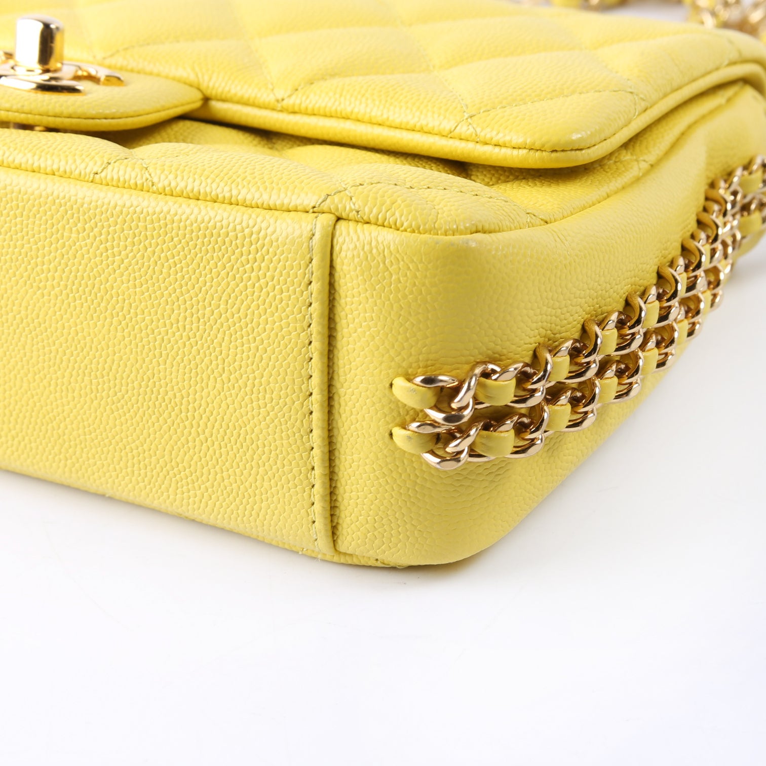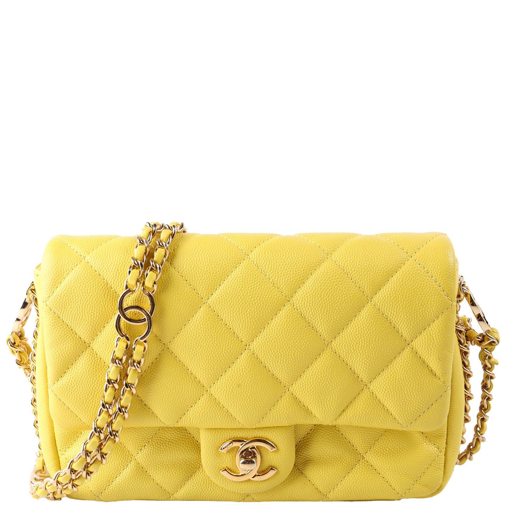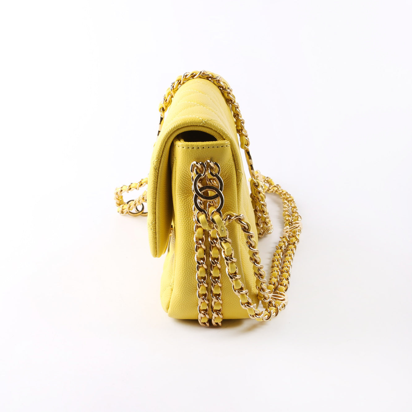 This pre-owned Chanel Mini CC You Flap is guaranteed 100% authentic. The exterior is in the classic Caviar leather.