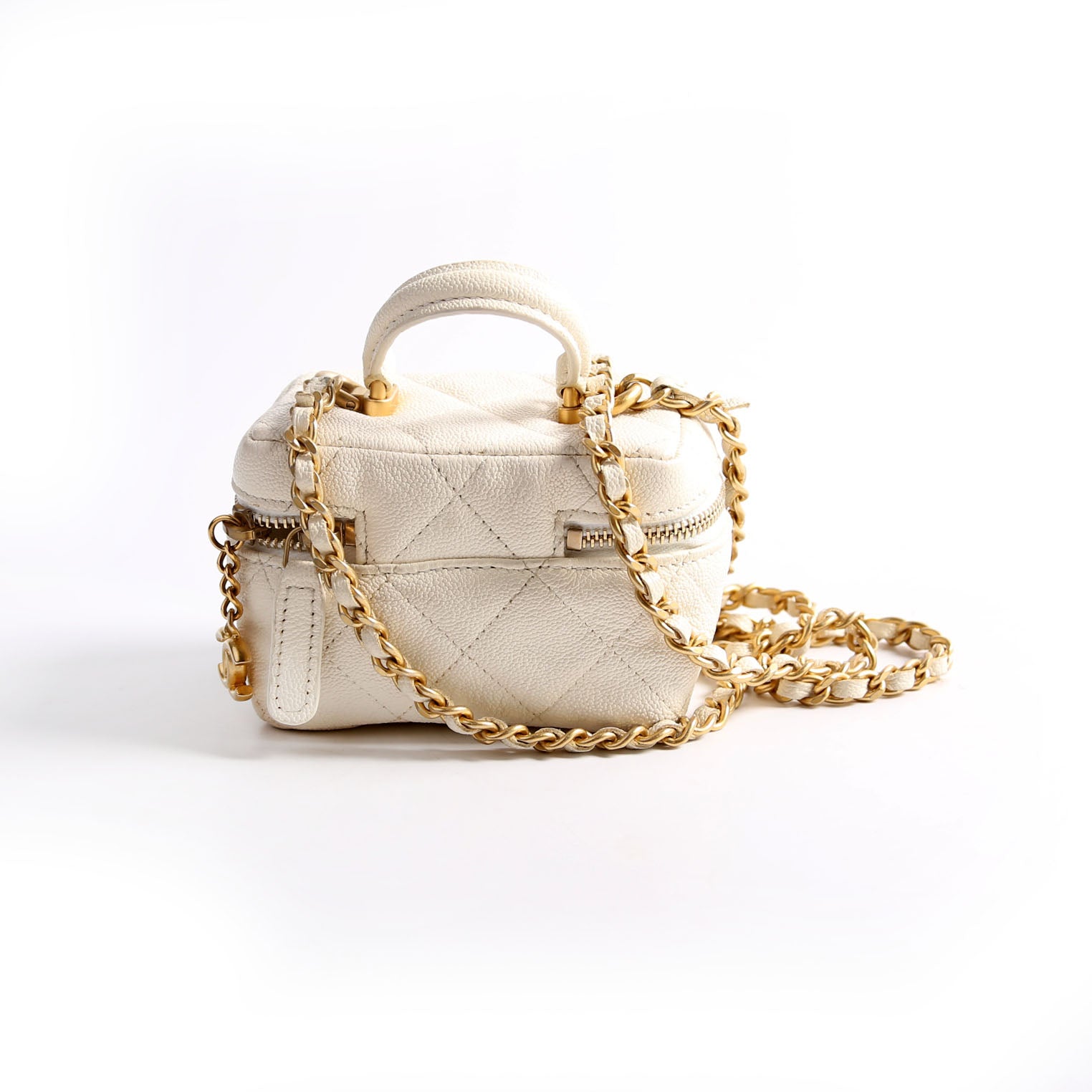 Mini Top Handle Vanity With Chain Caviar 30M White