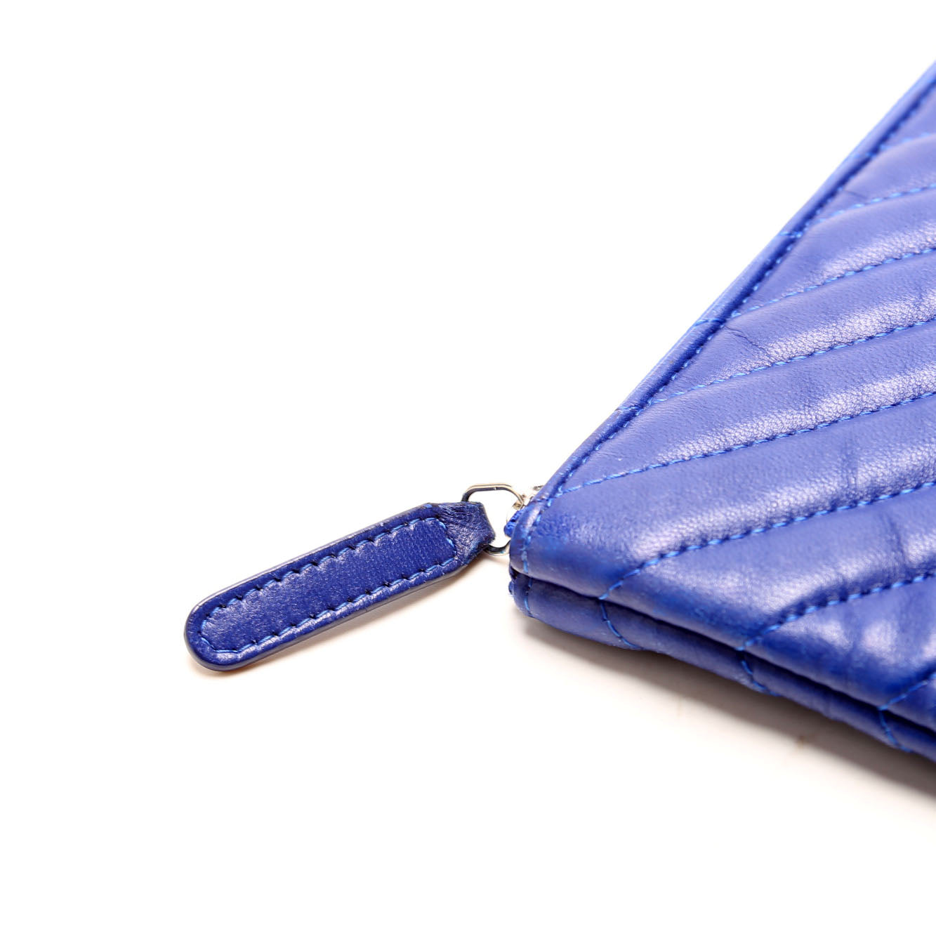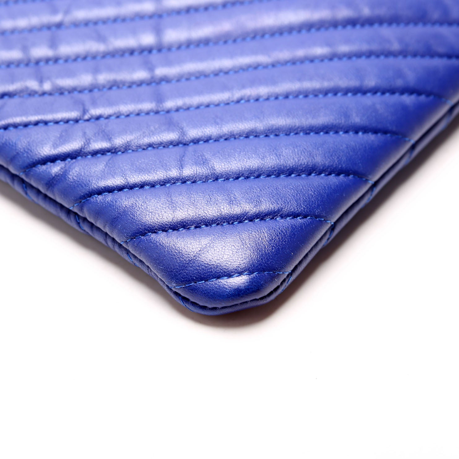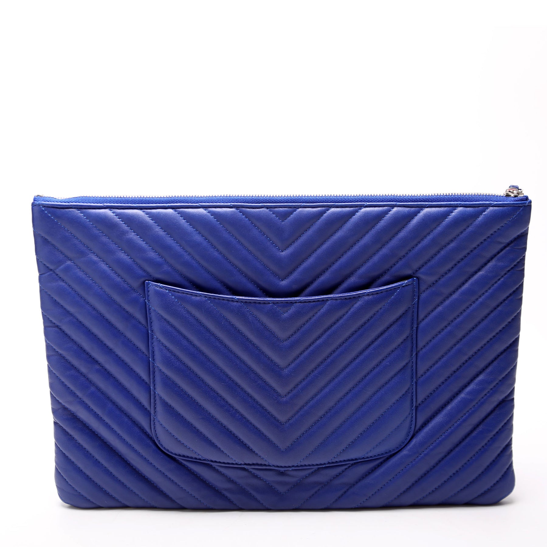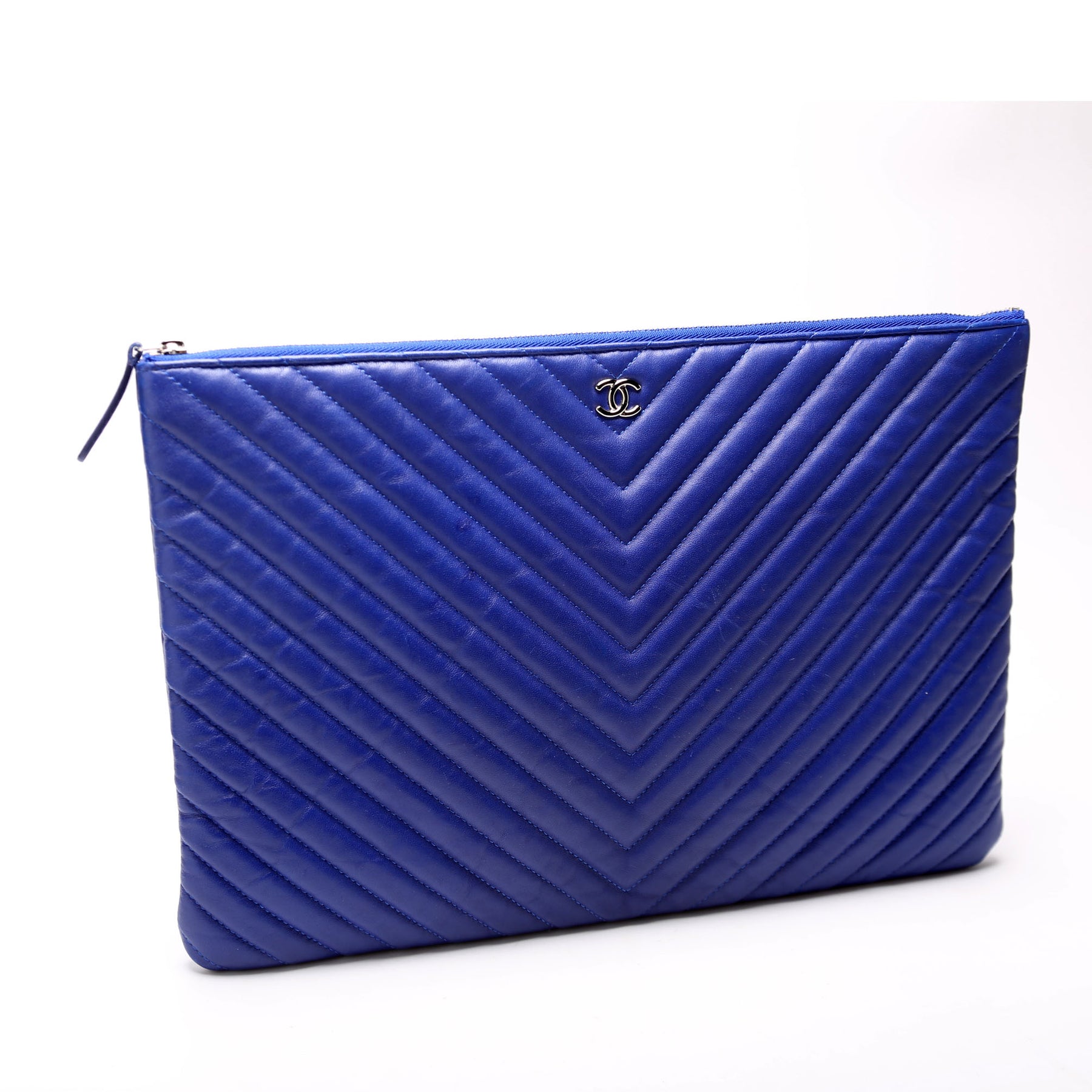 This pre-owned Chanel O Case Large is guaranteed 100% authentic. The exterior is in the classic Chanel lambskin leather.