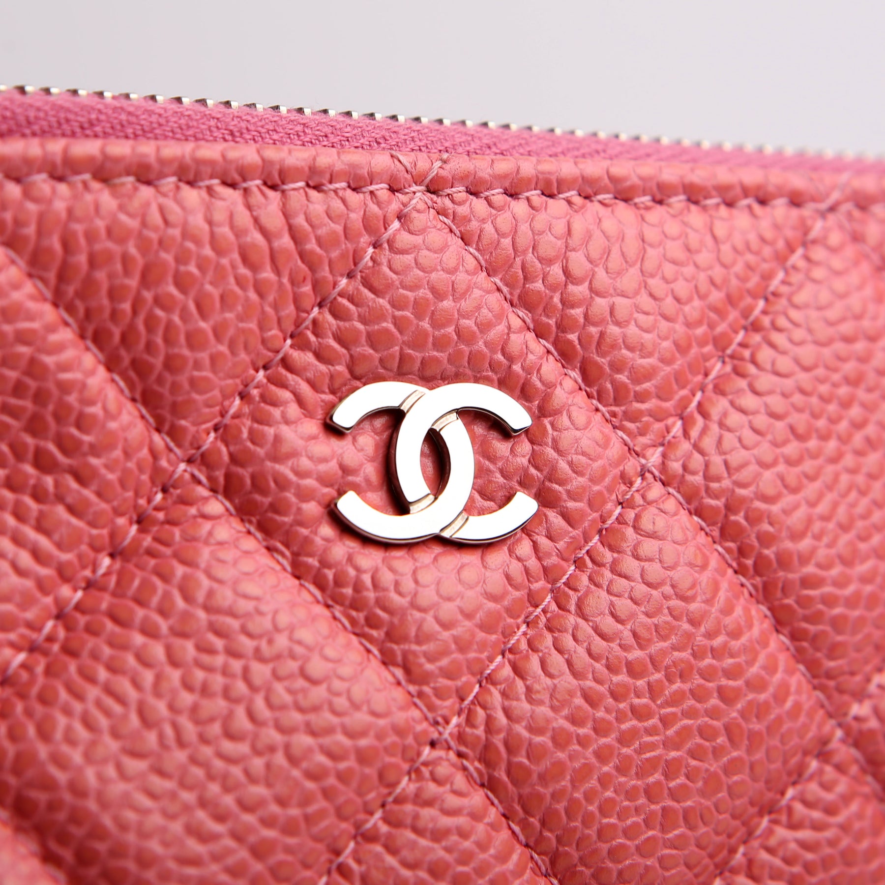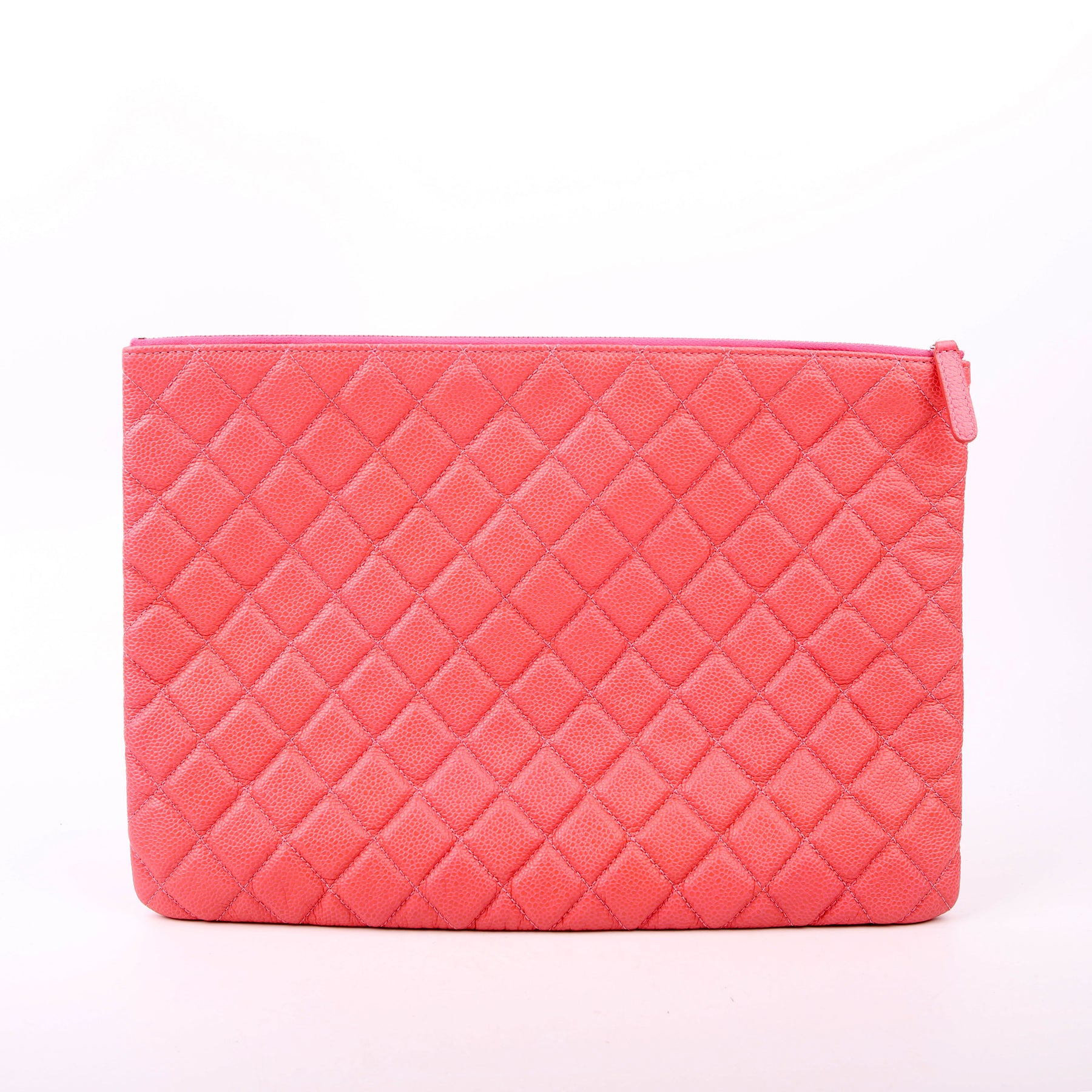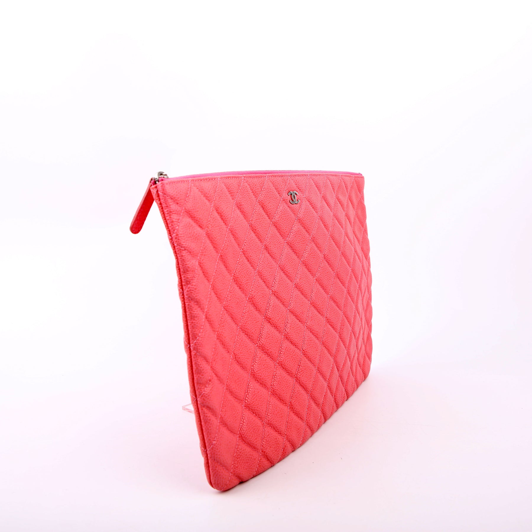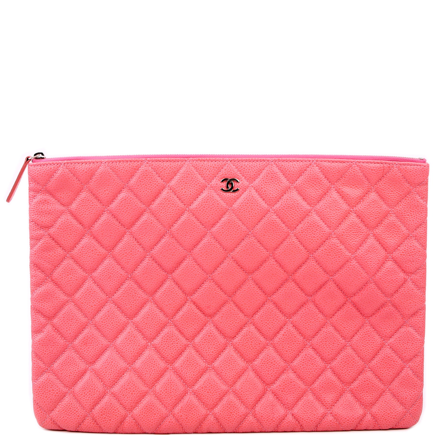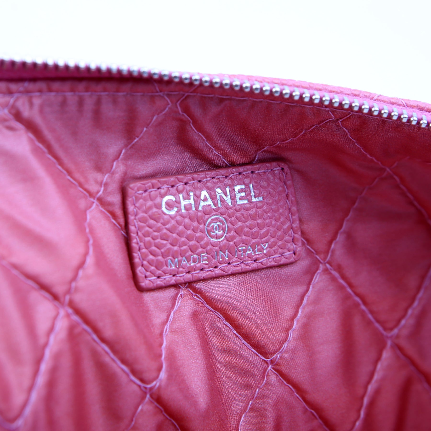 This pre-owned Chanel O Case Large is guaranteed 100% authentic. The exterior is in the classic Chanel lambskin leather.