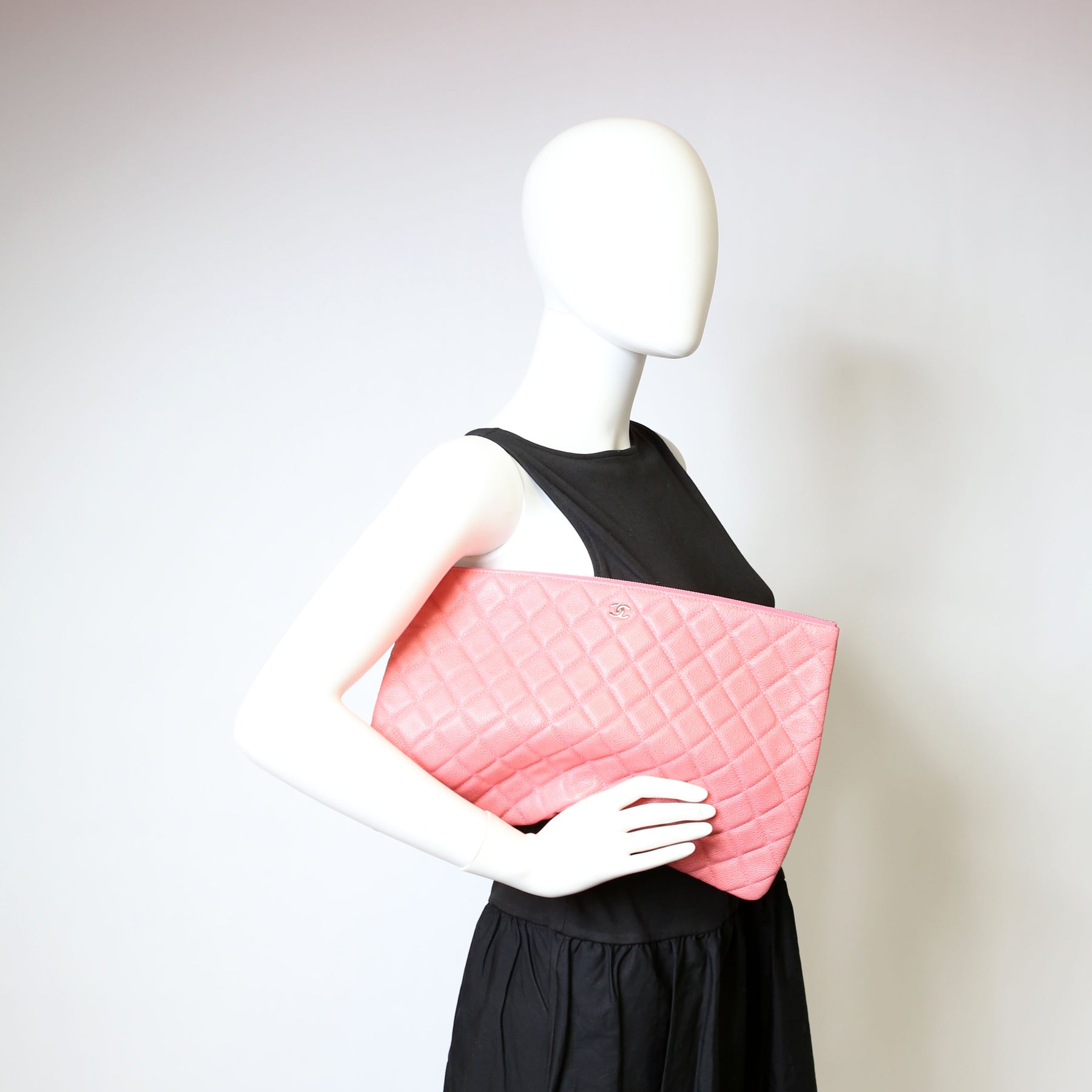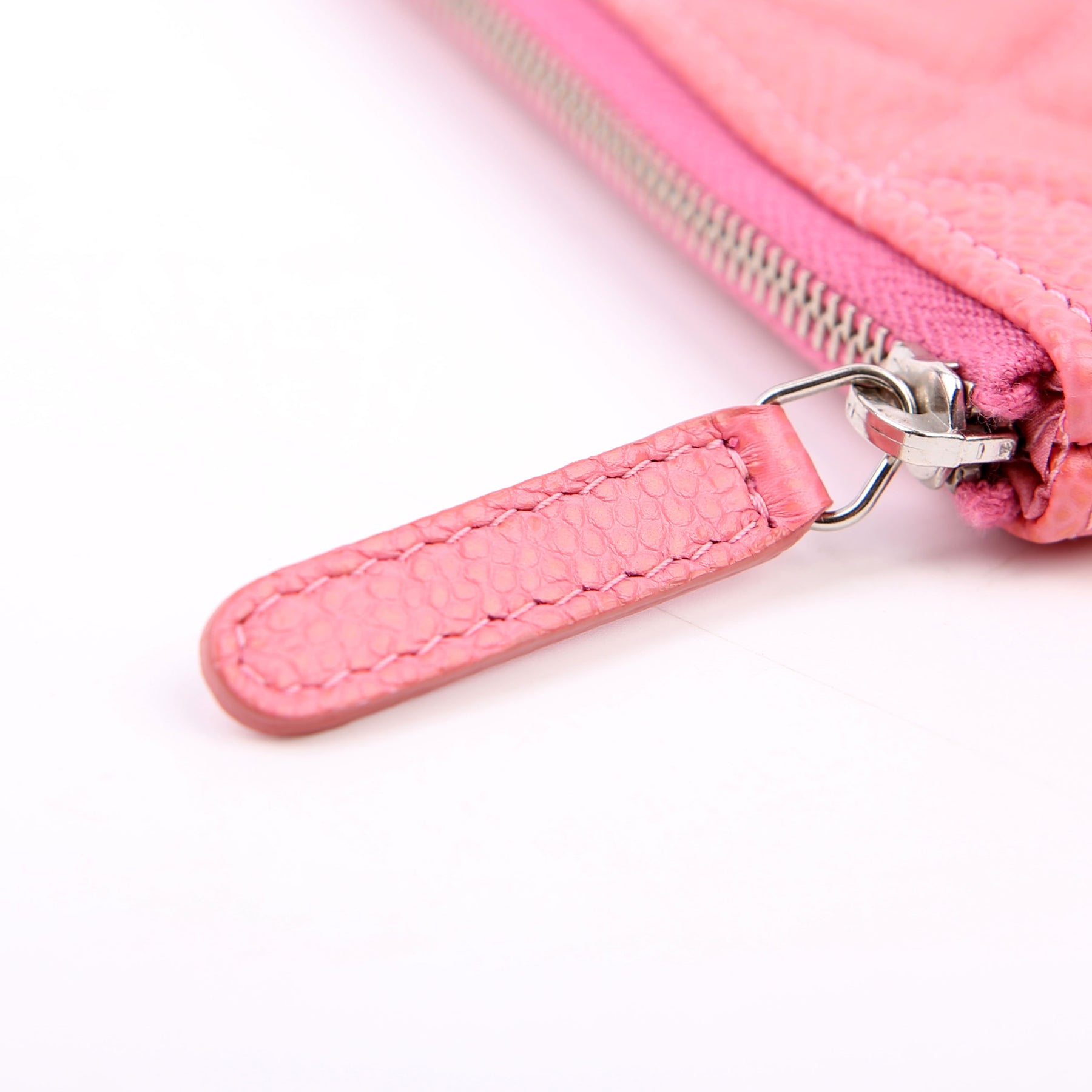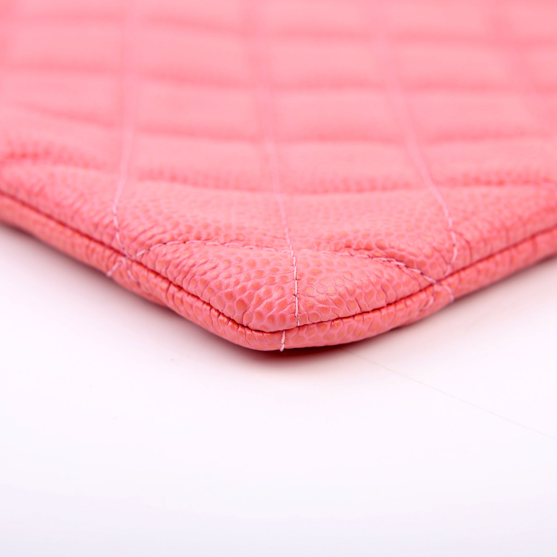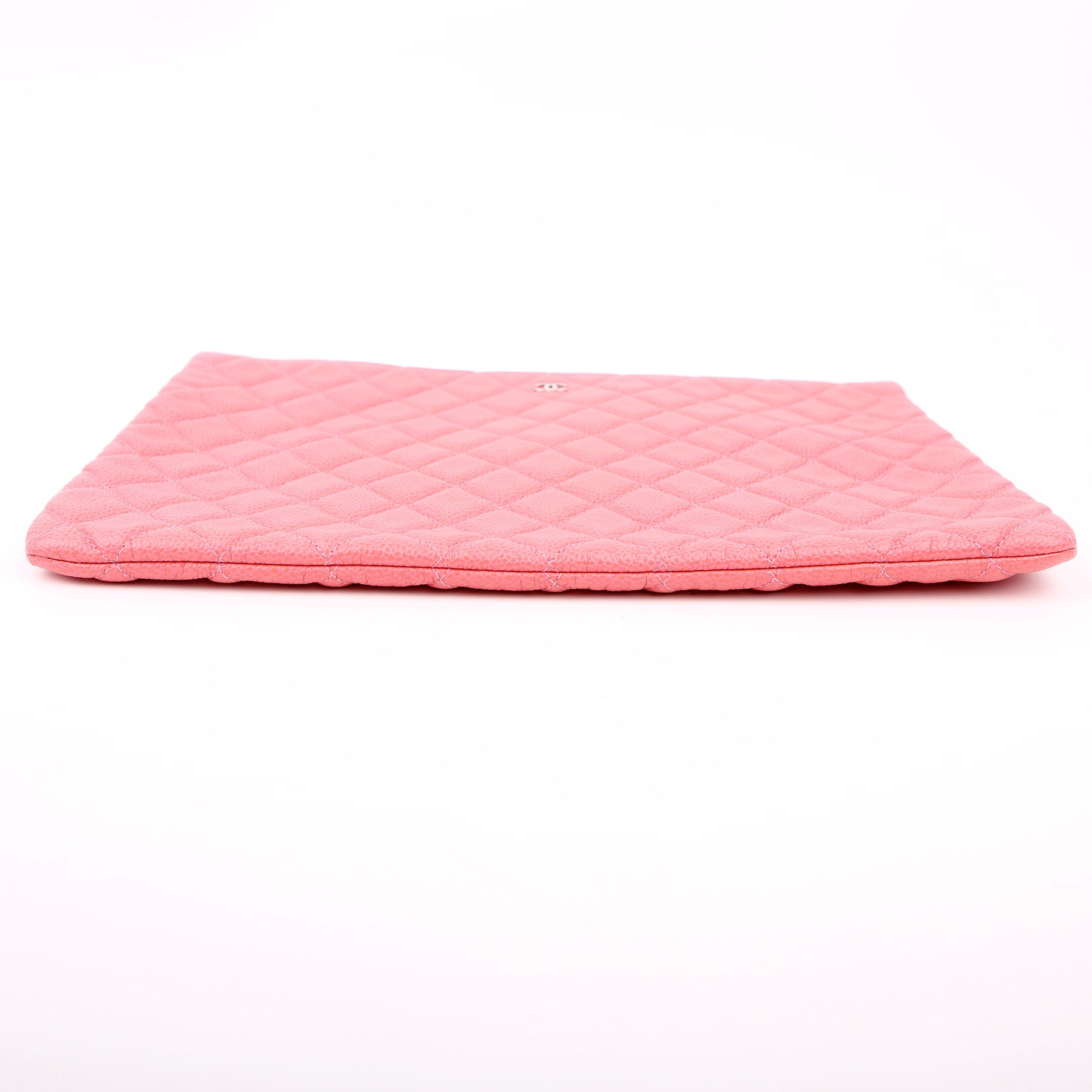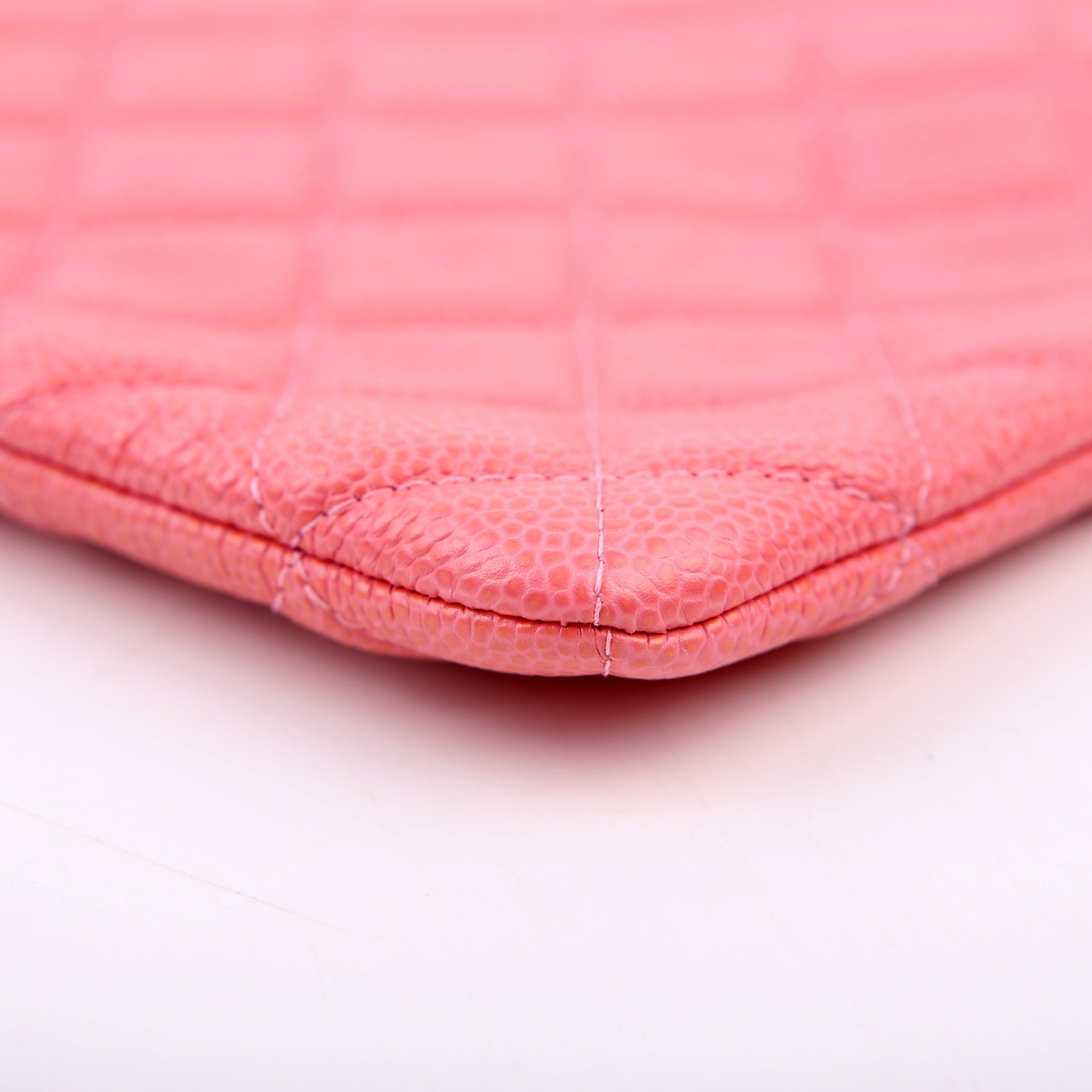 This pre-owned Chanel O Case Large is guaranteed 100% authentic. The exterior is in the classic Chanel lambskin leather.