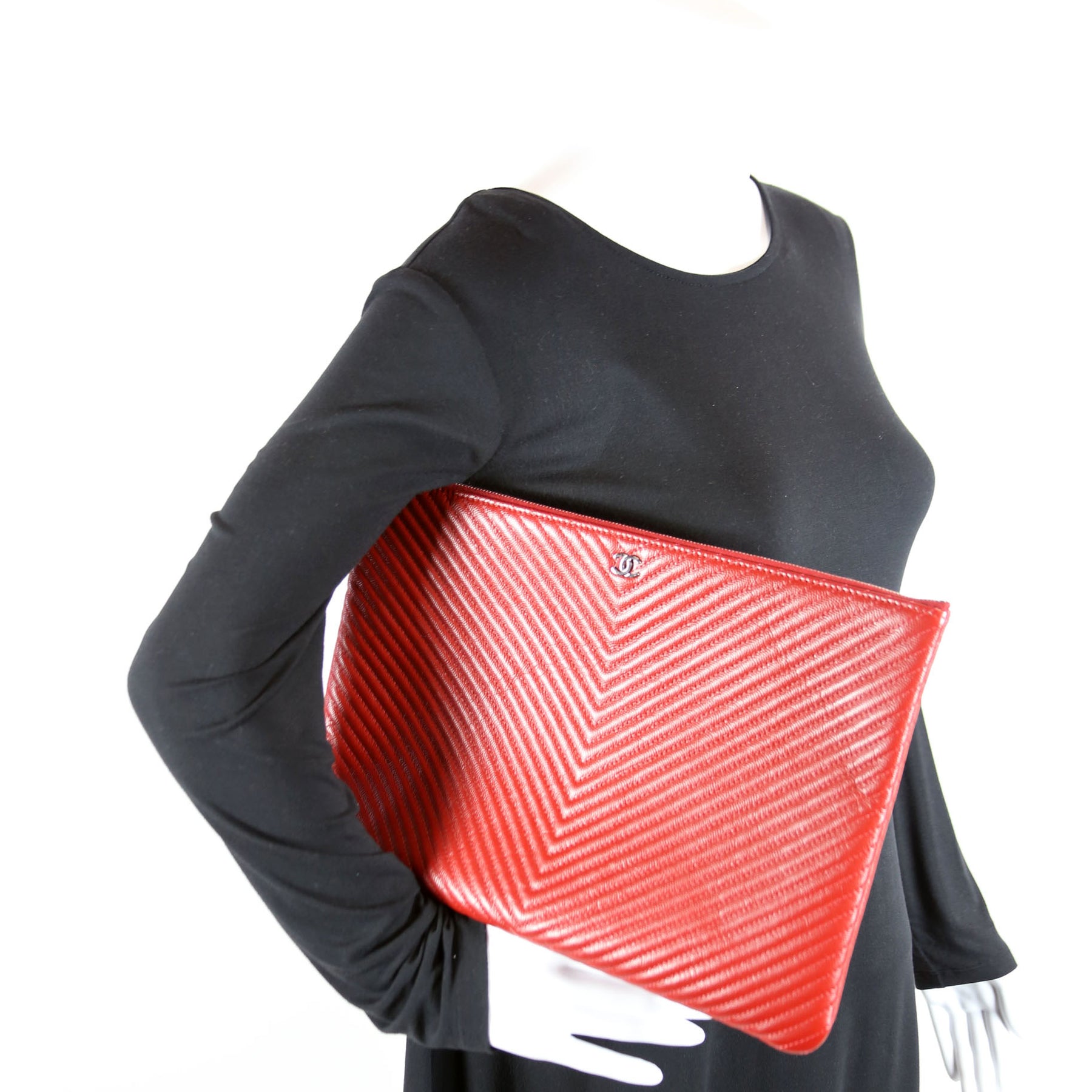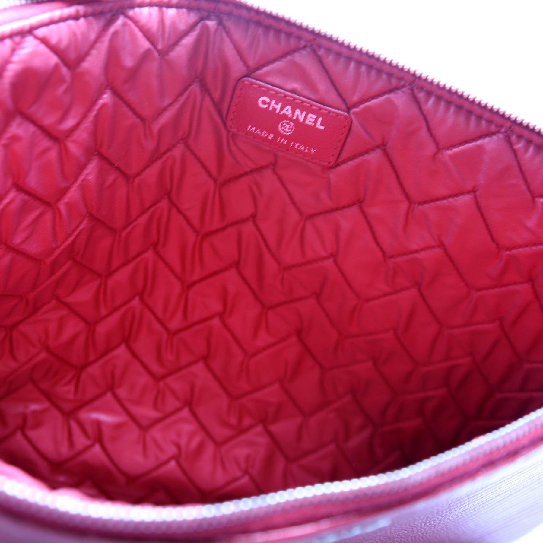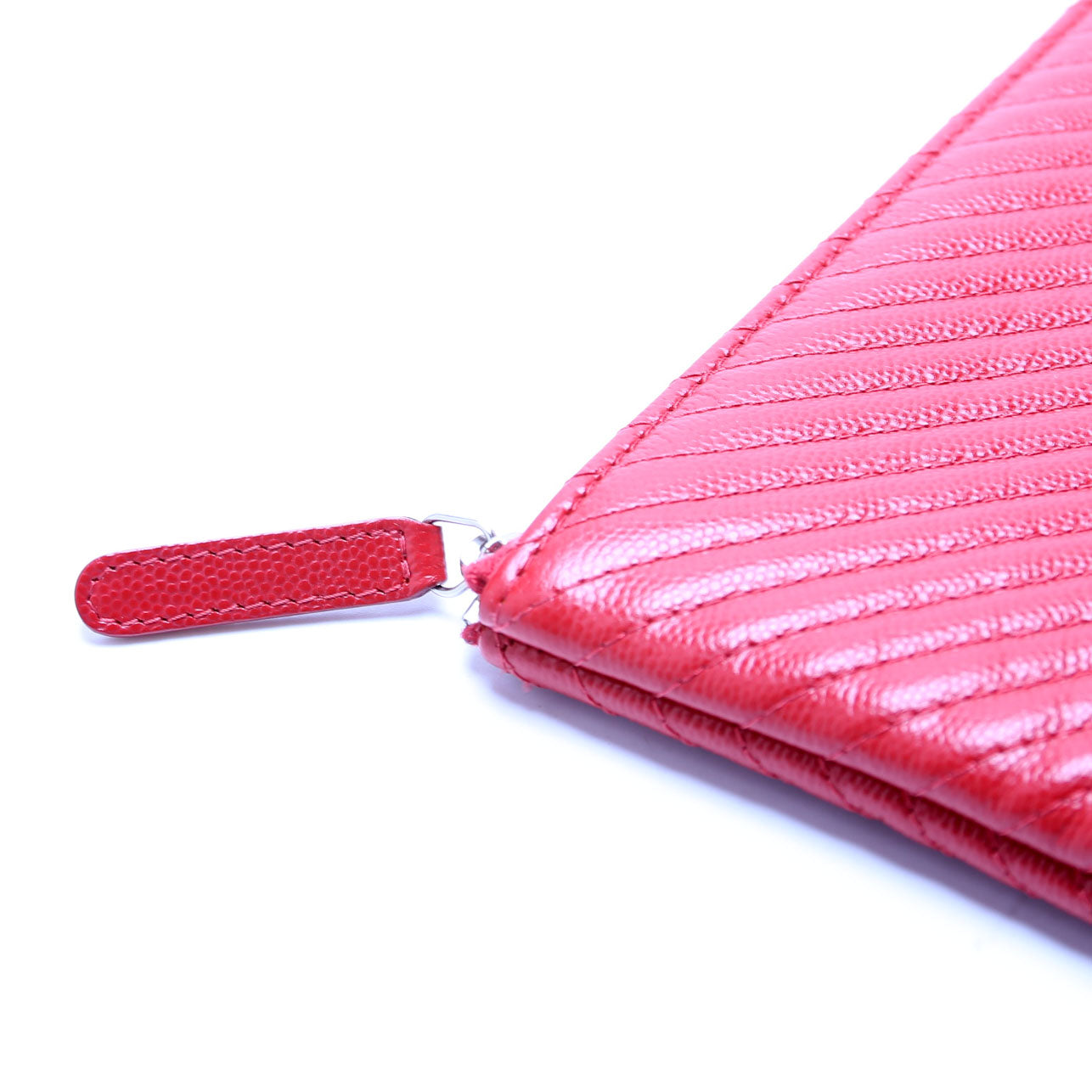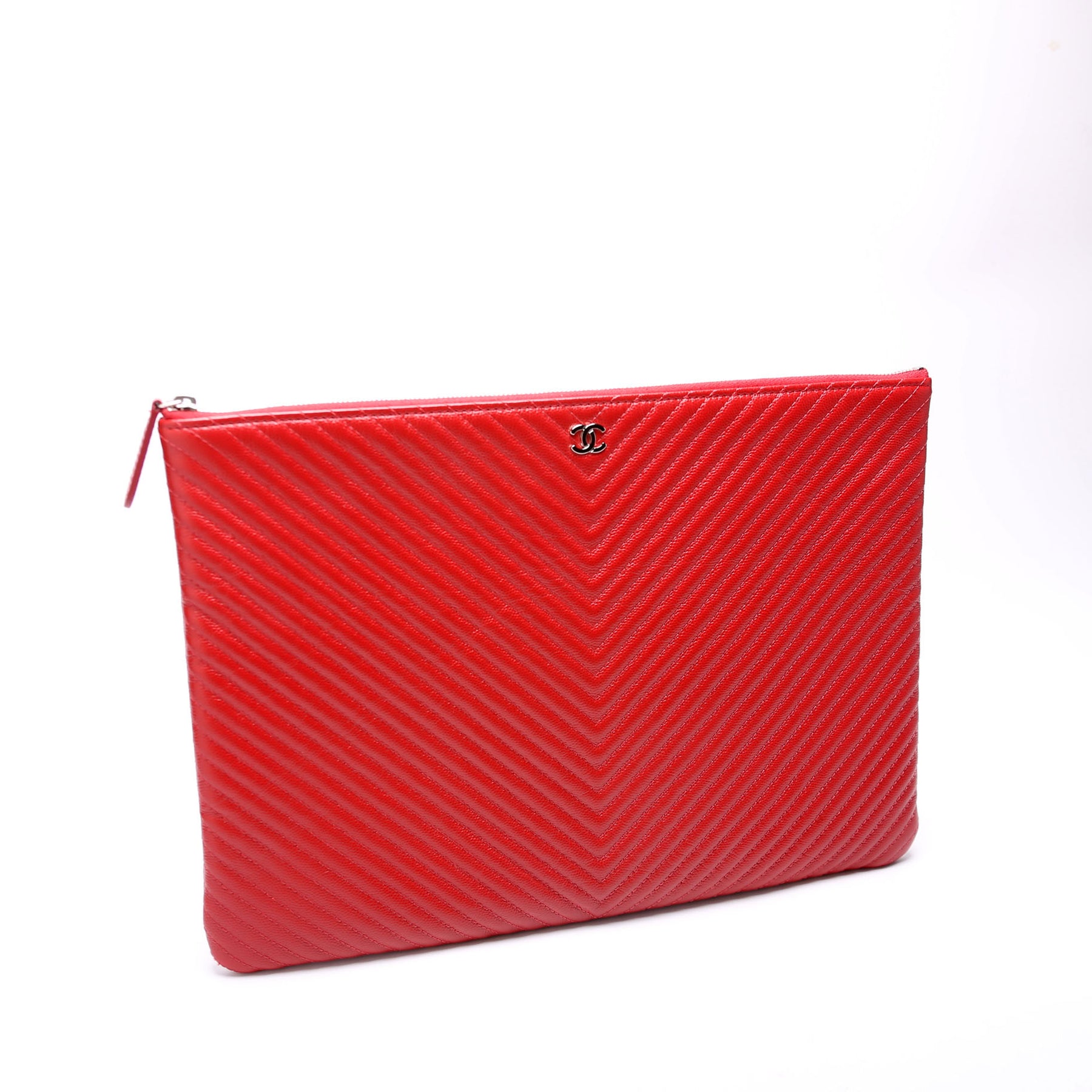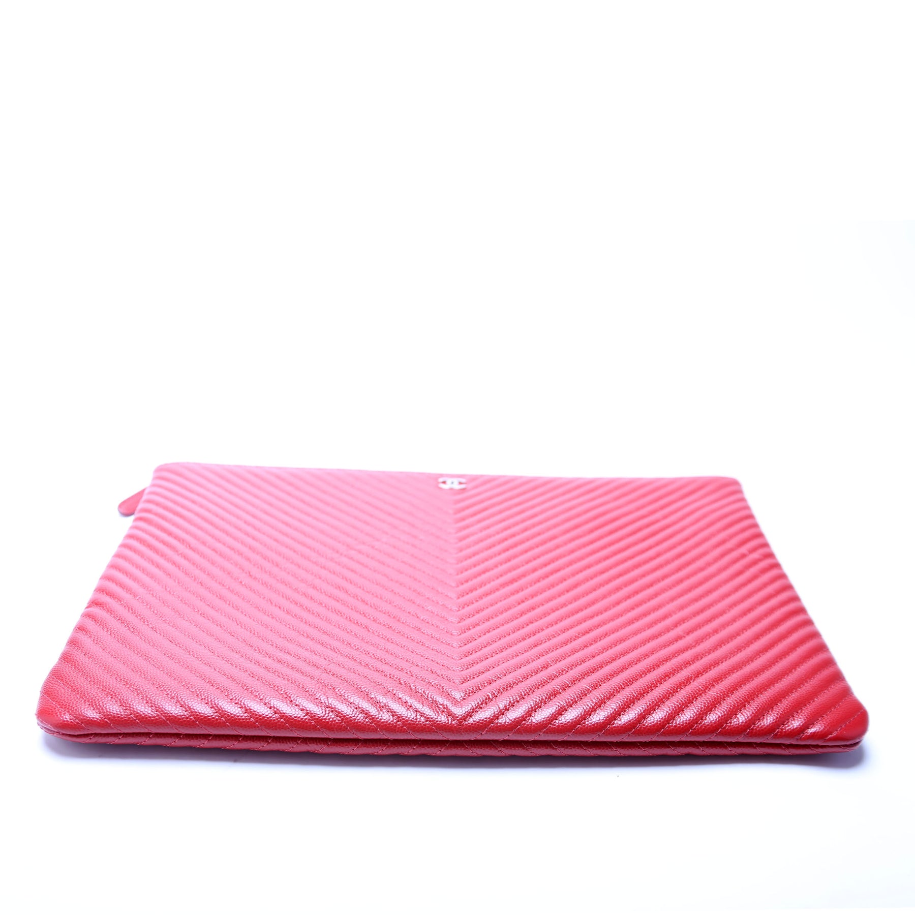 This pre-owned Chanel O Case Large is guaranteed 100% authentic. The exterior is in the classic Chanel Caviar leather.