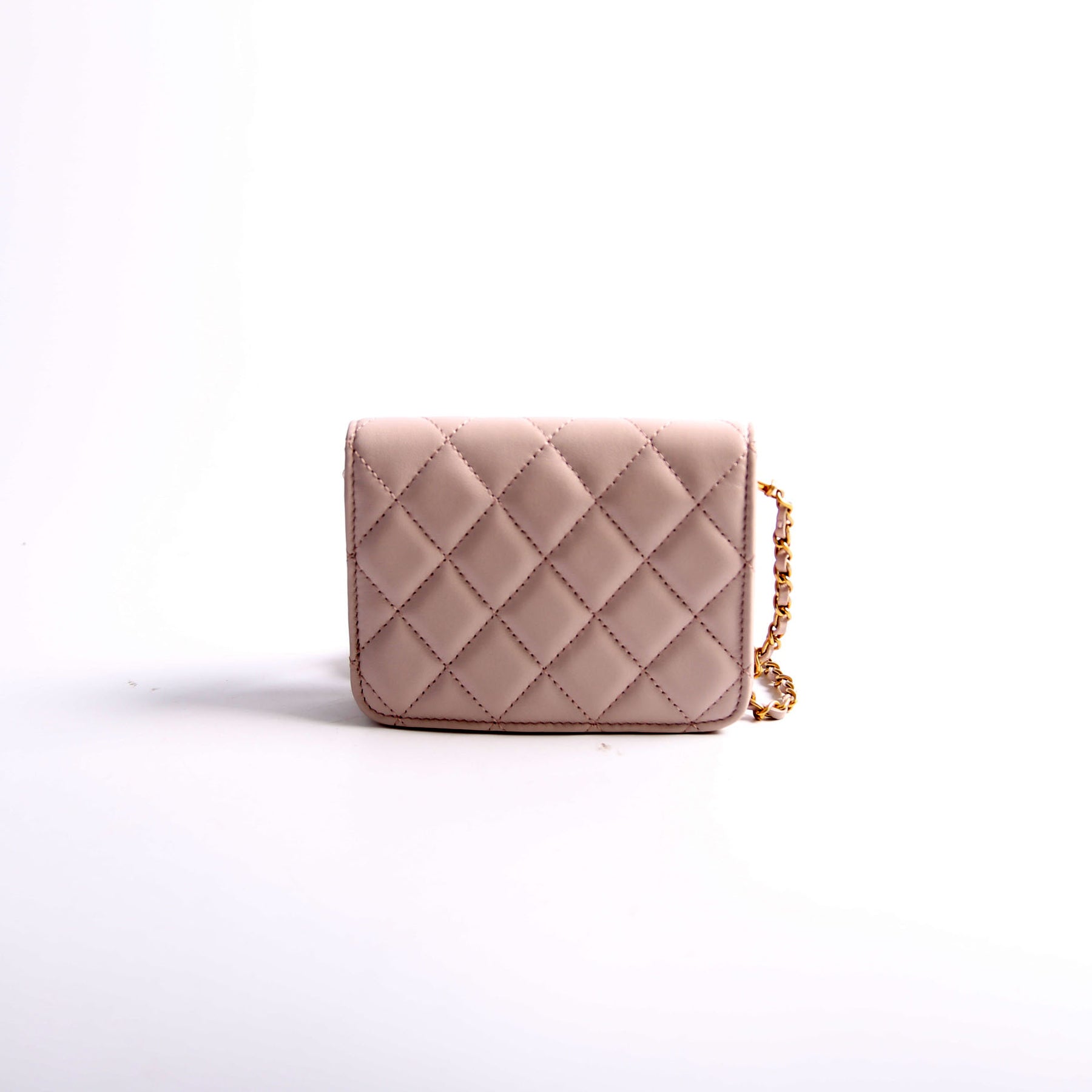 Pearl Crush Flap Clutch With Chain Lambskin 31M Pink