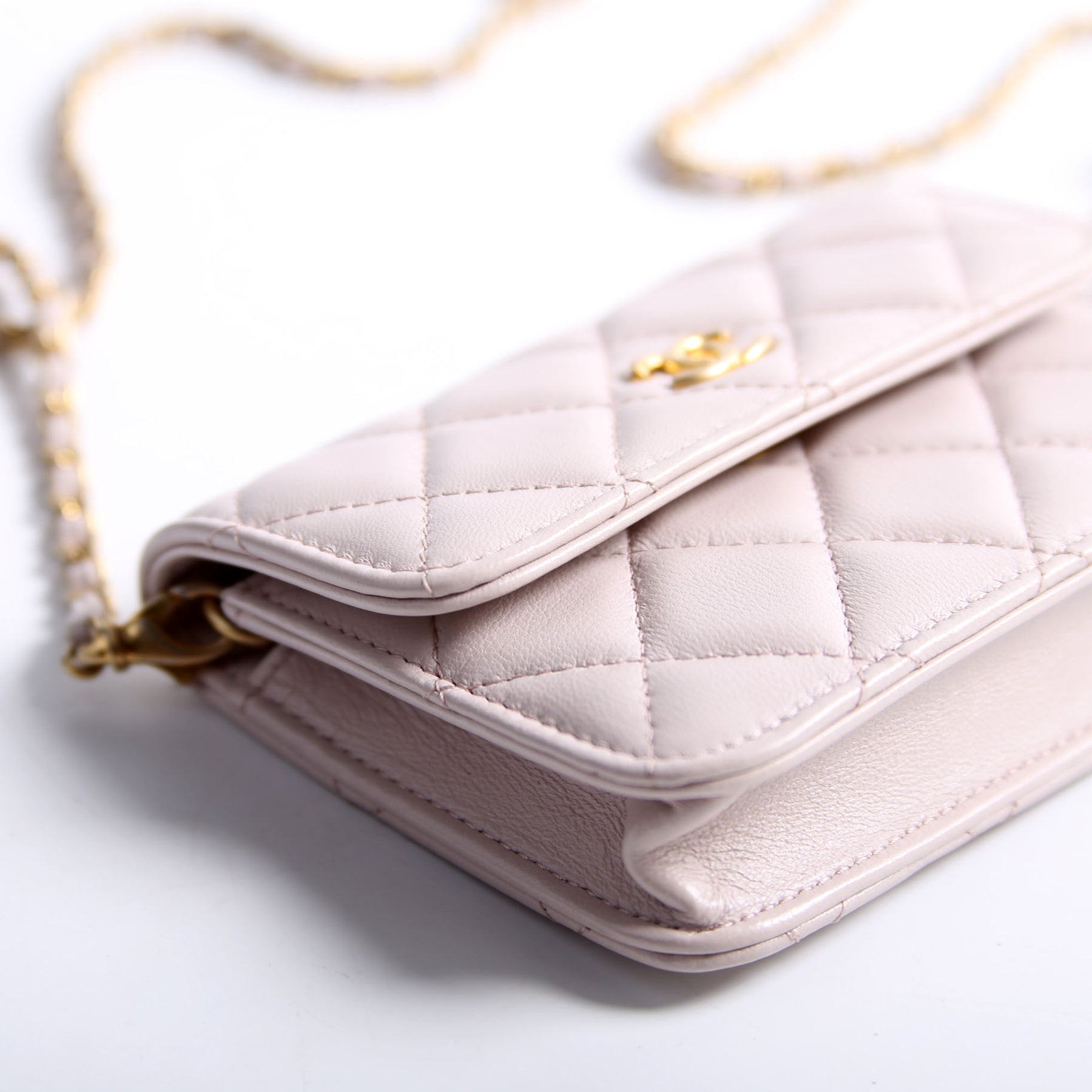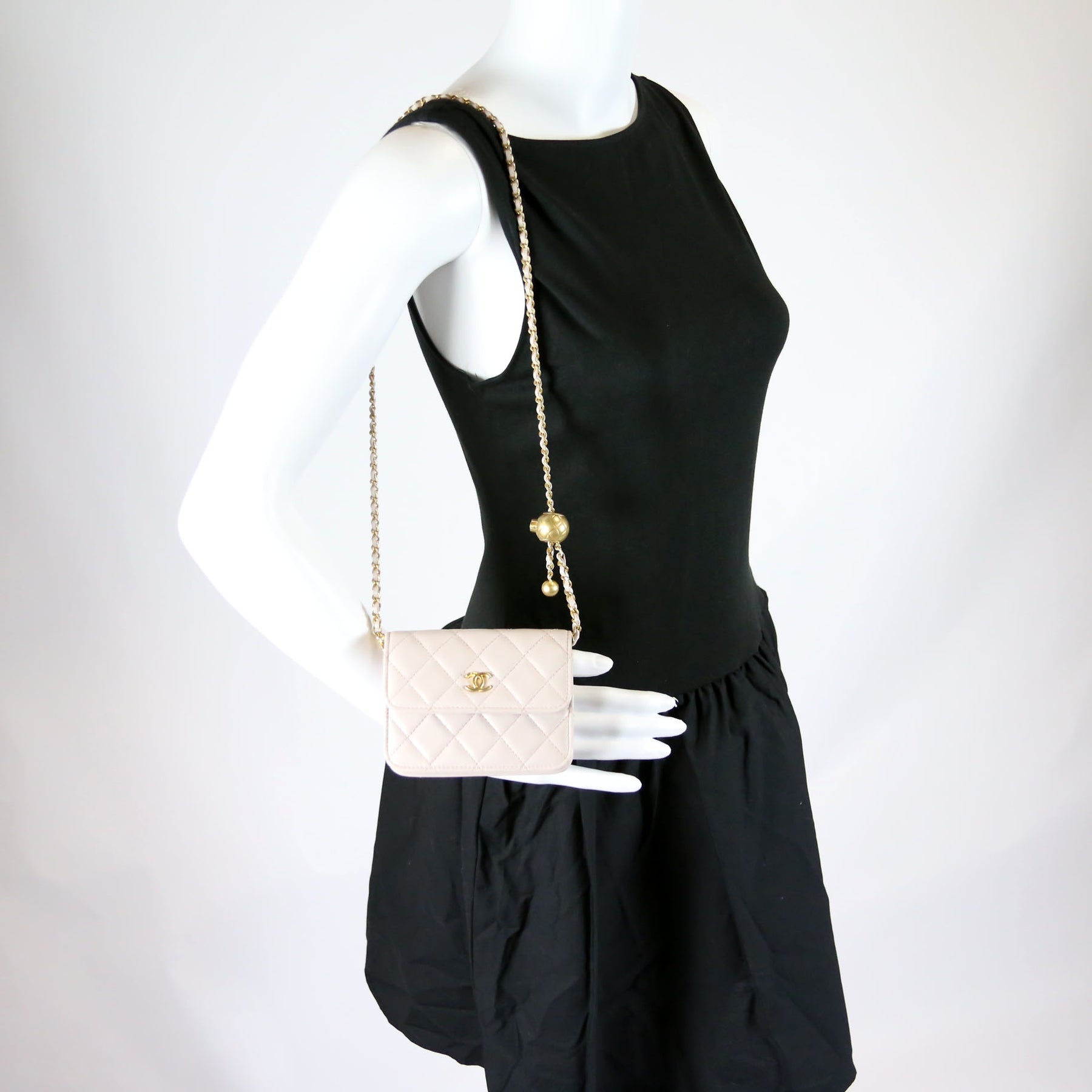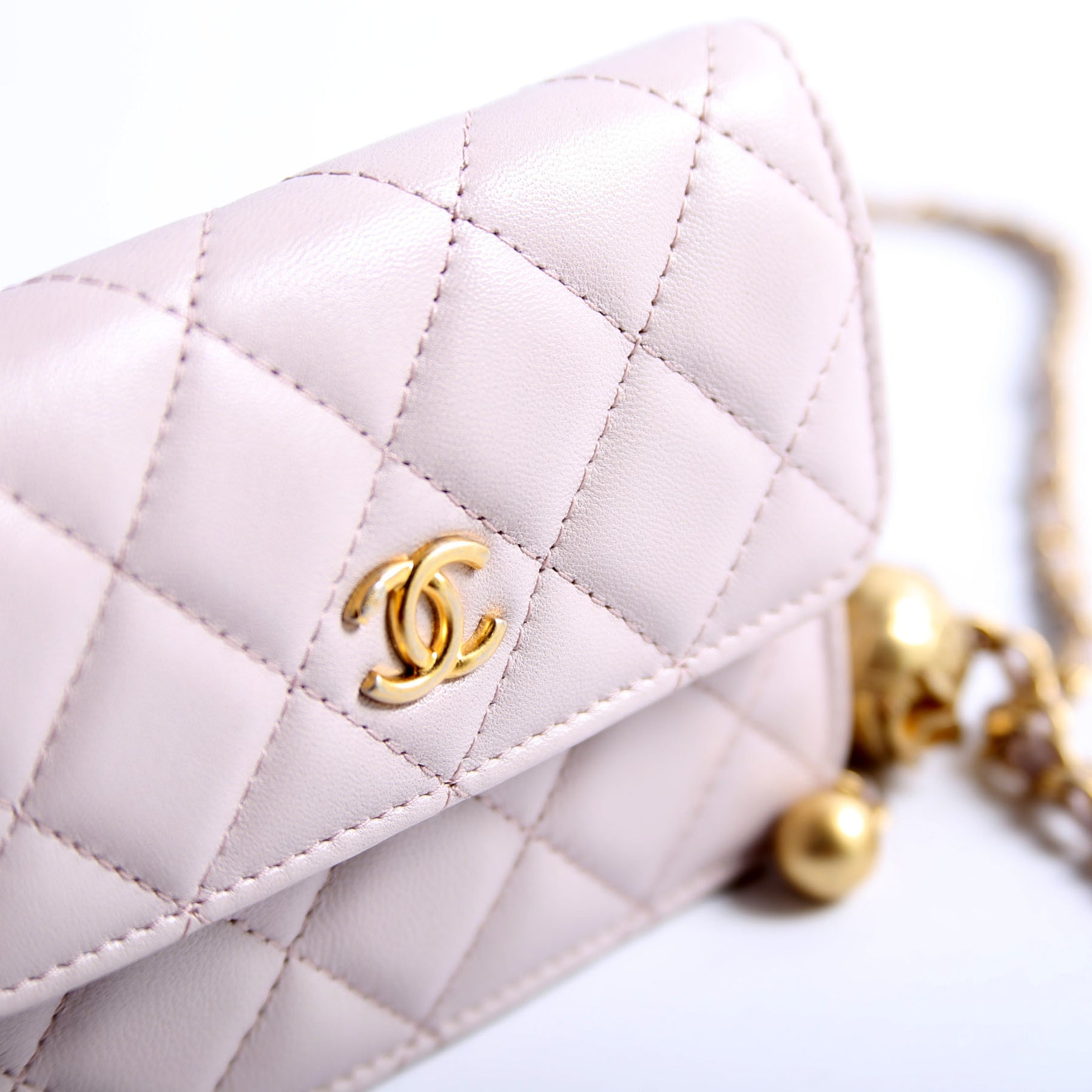 This pre-owned Chanel Pearl Crush Flap Clutch With Chain Lambskin 31M is guaranteed 100% authentic.