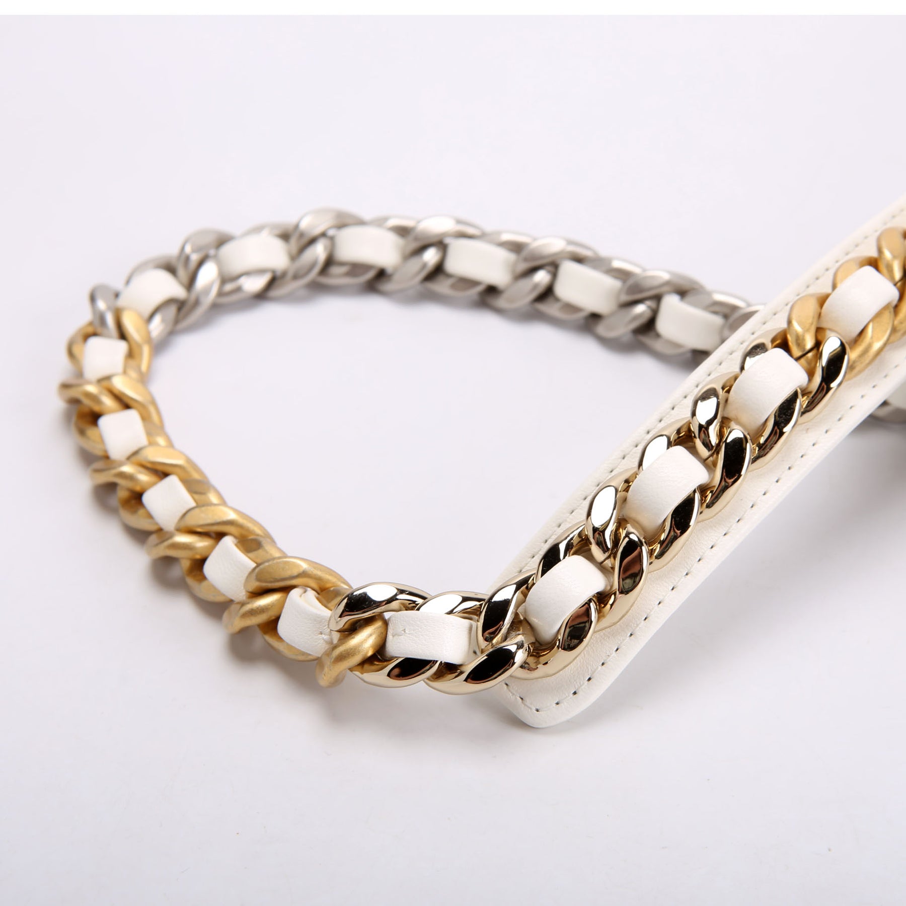 Strap: The chain shows light scratches. The leather shows light wear and indentions.