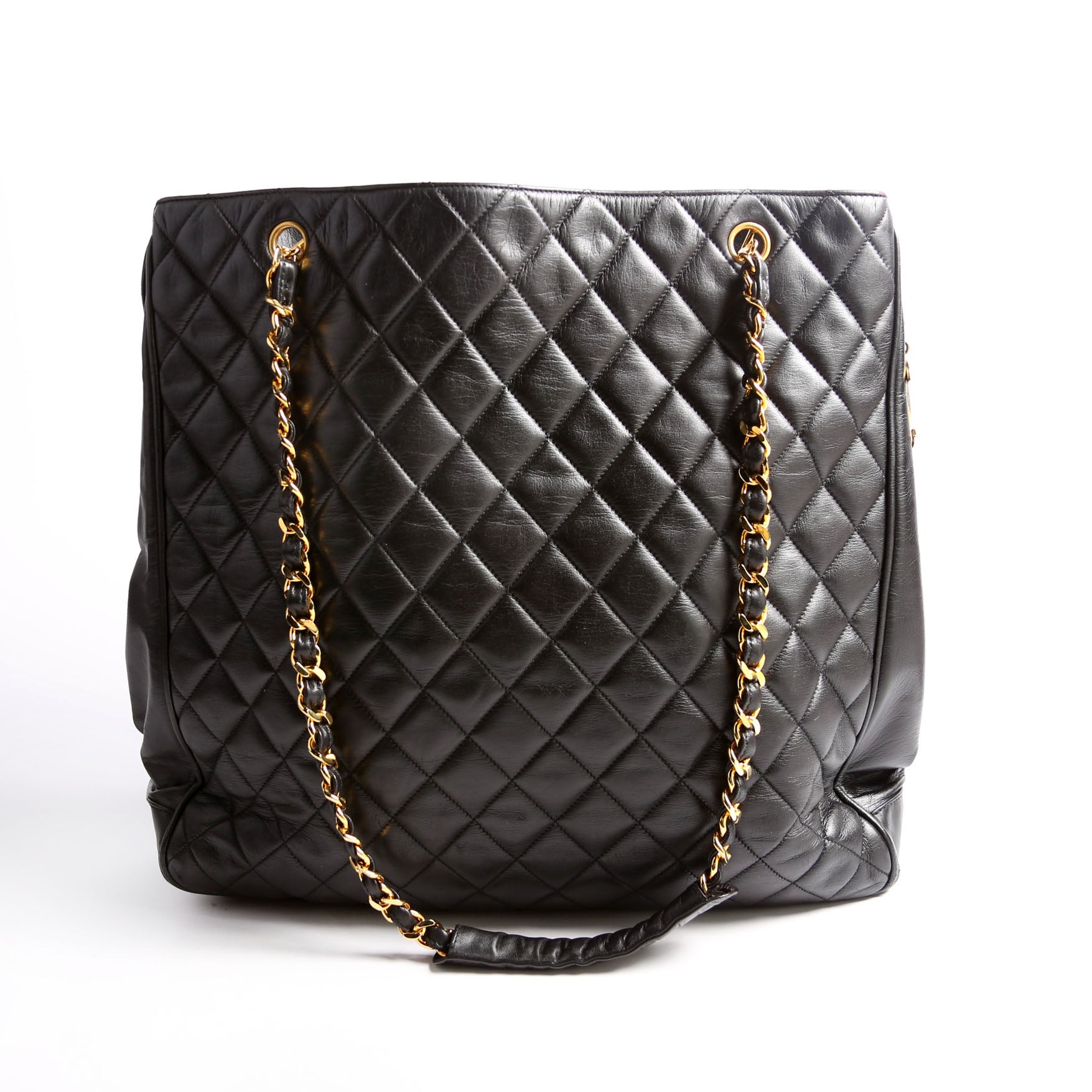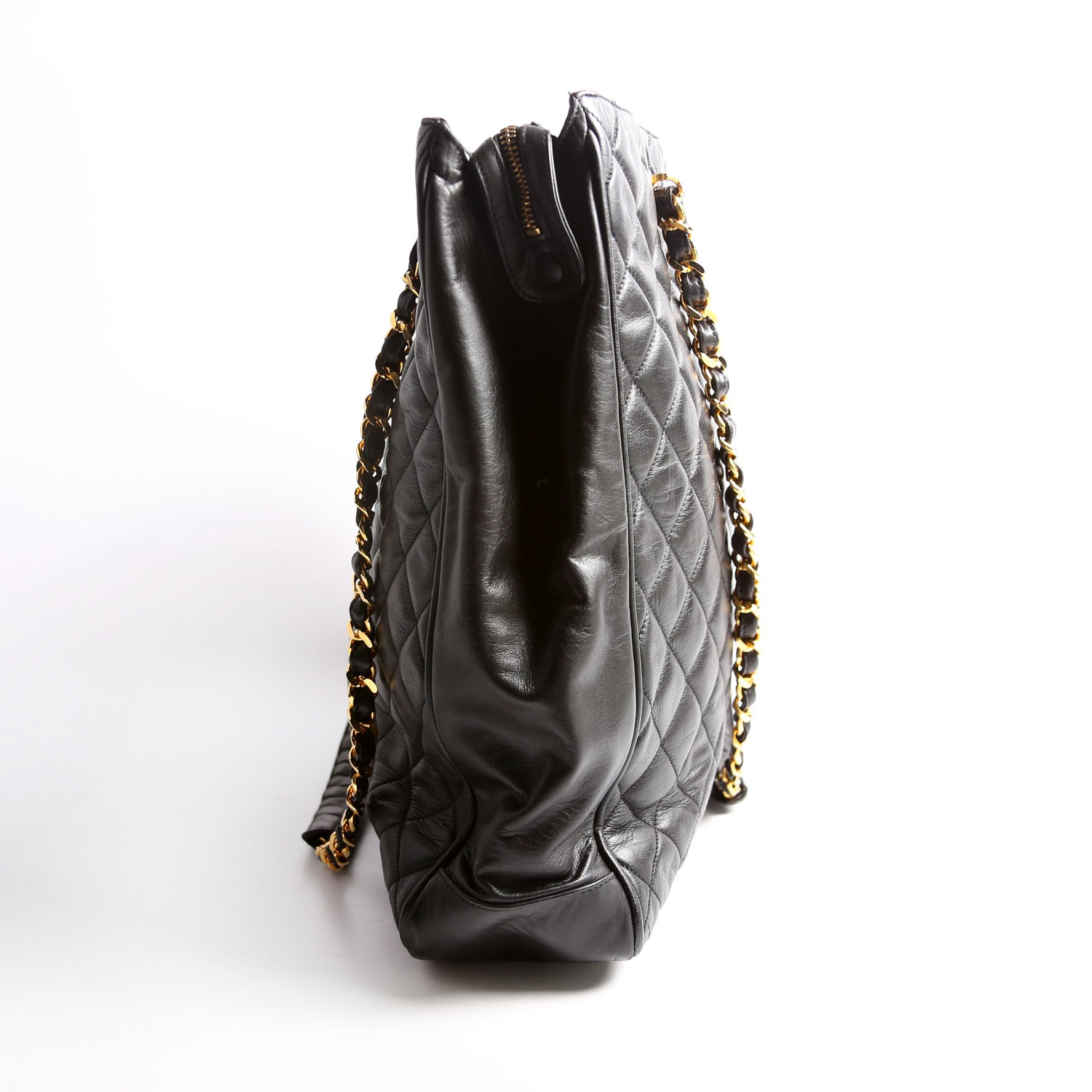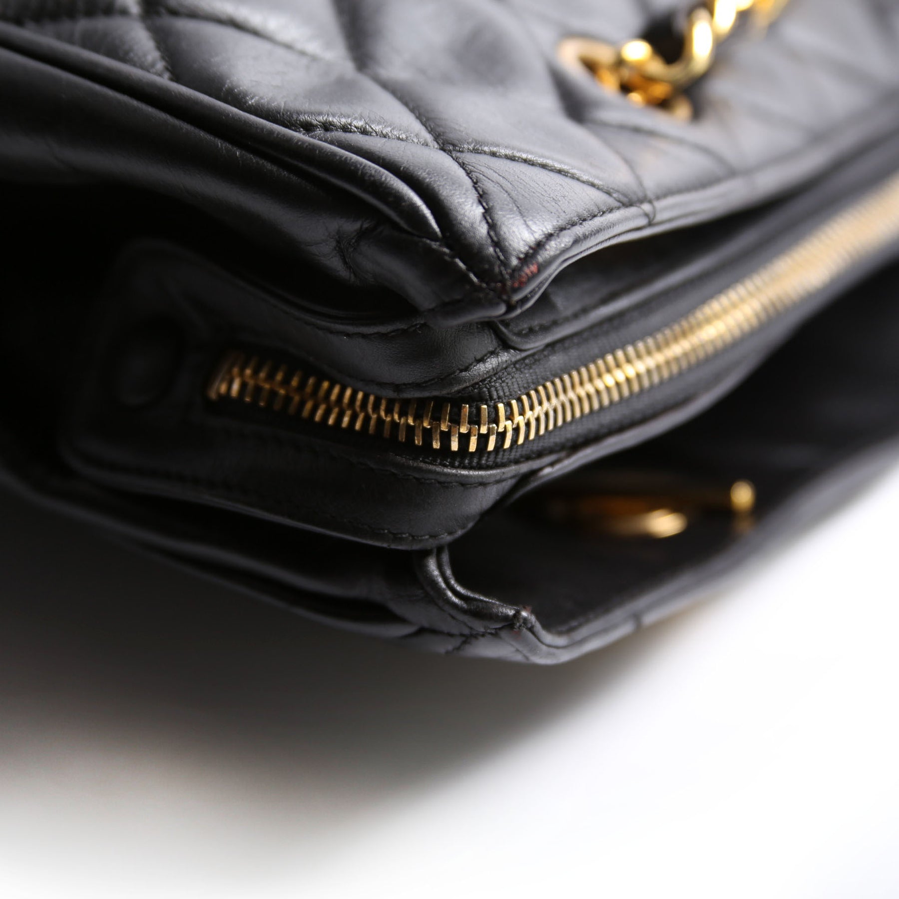 Quilted Lambskin Chain Shoulder Tote 1M Black