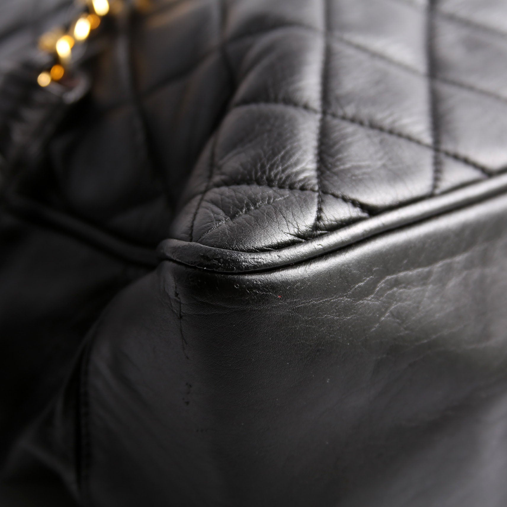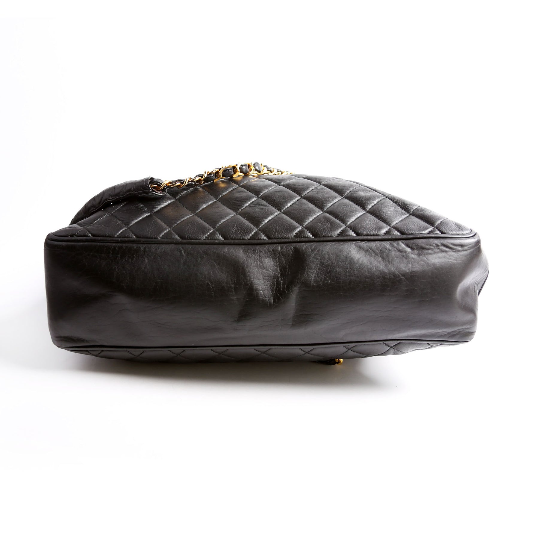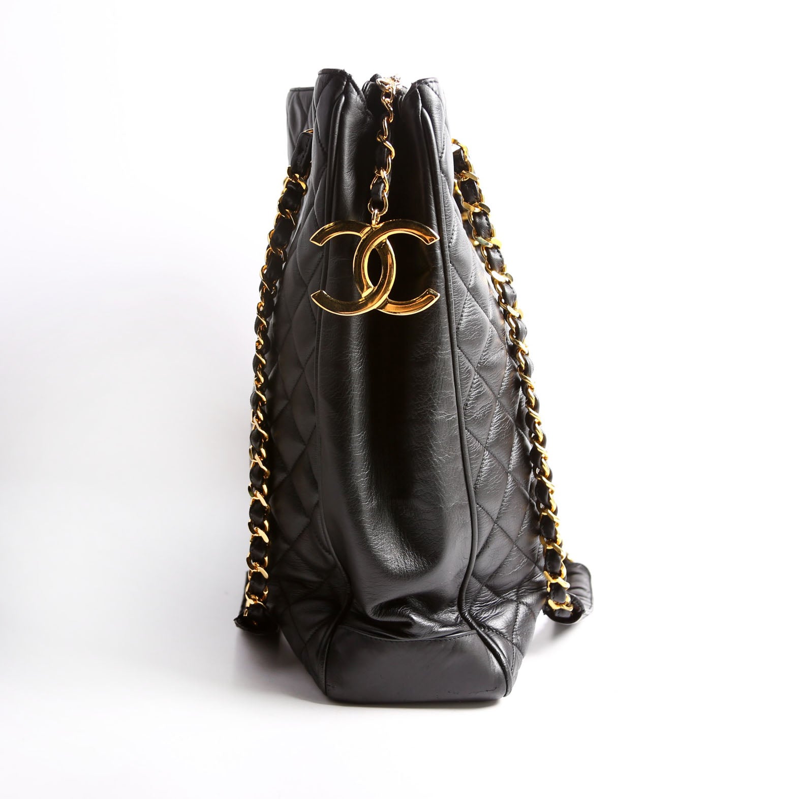 This pre-owned Chanel Chain Shoulder Tote is guaranteed 100% authentic. The exterior is in the classic Chanel Quilted Lambskin leather.