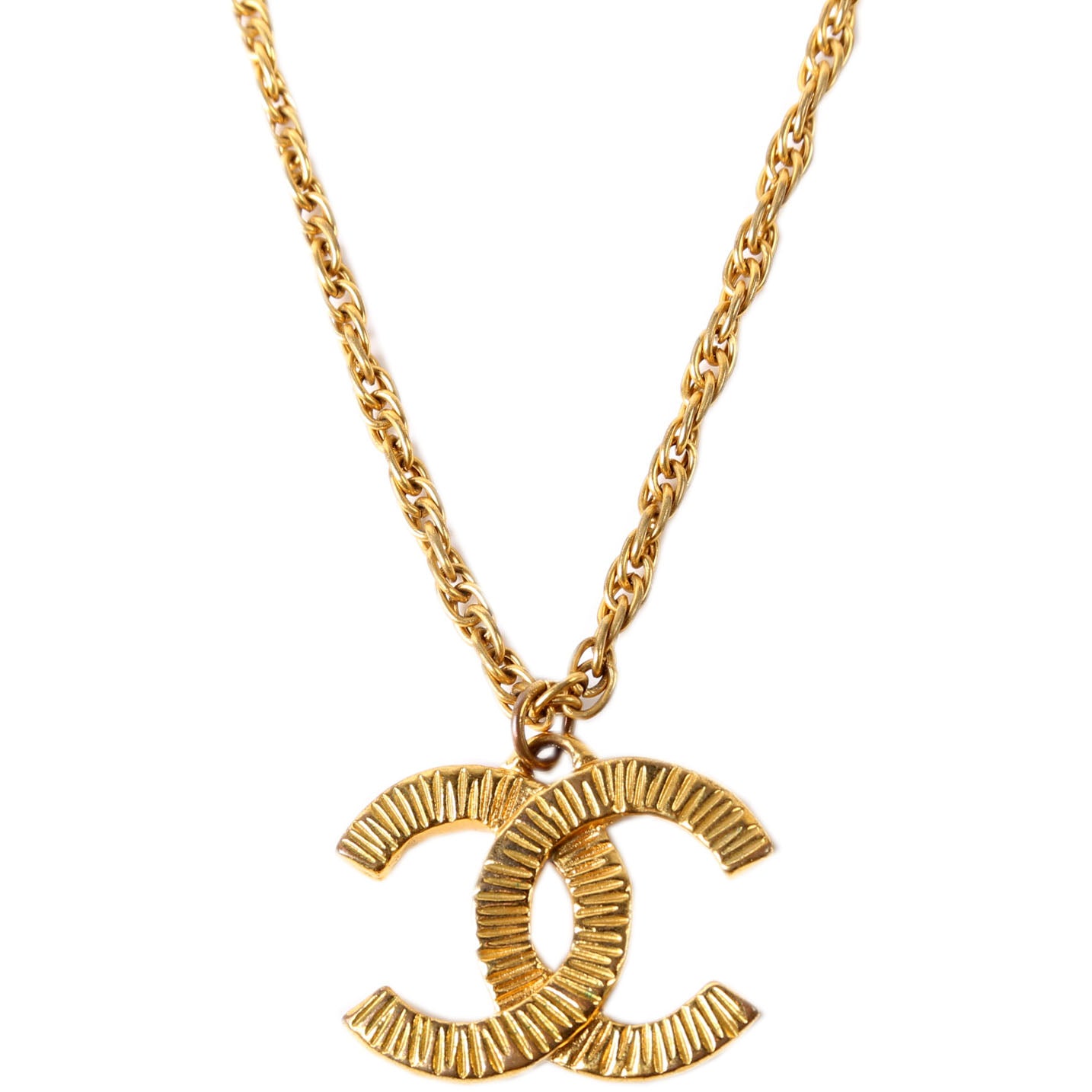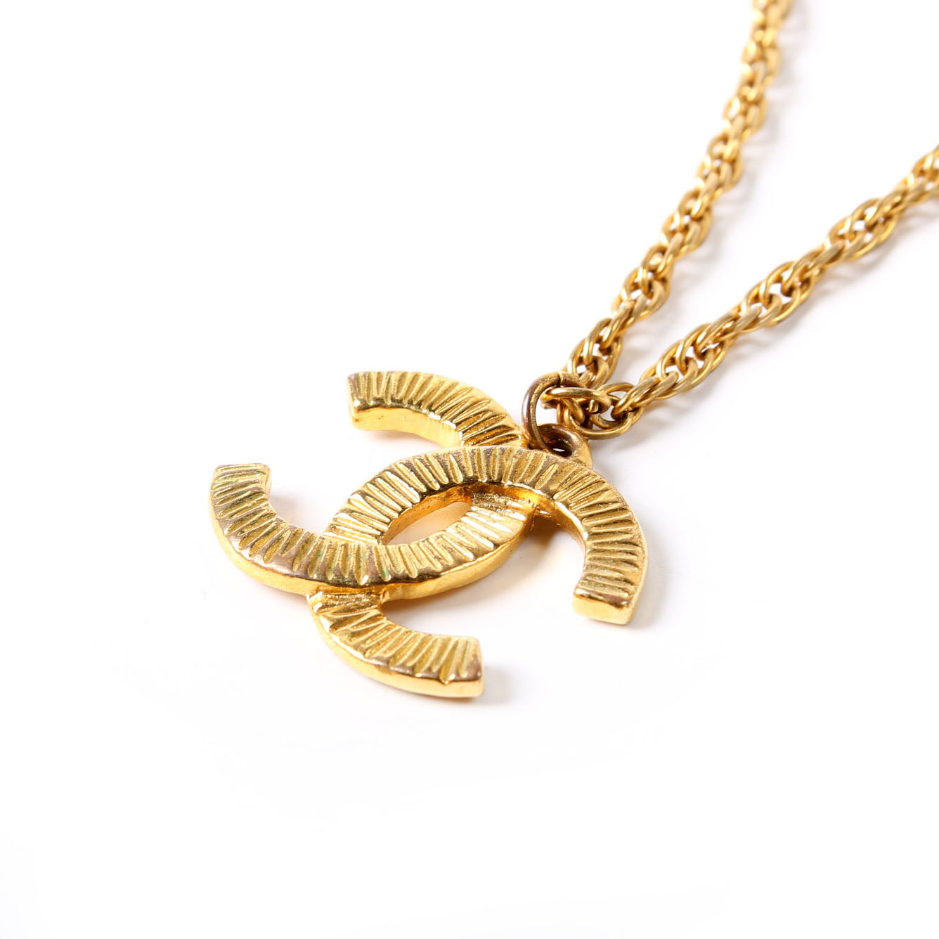 This pre-owned Chanel Ribbed CC Vintage Necklace is guaranteed 100% authentic.
