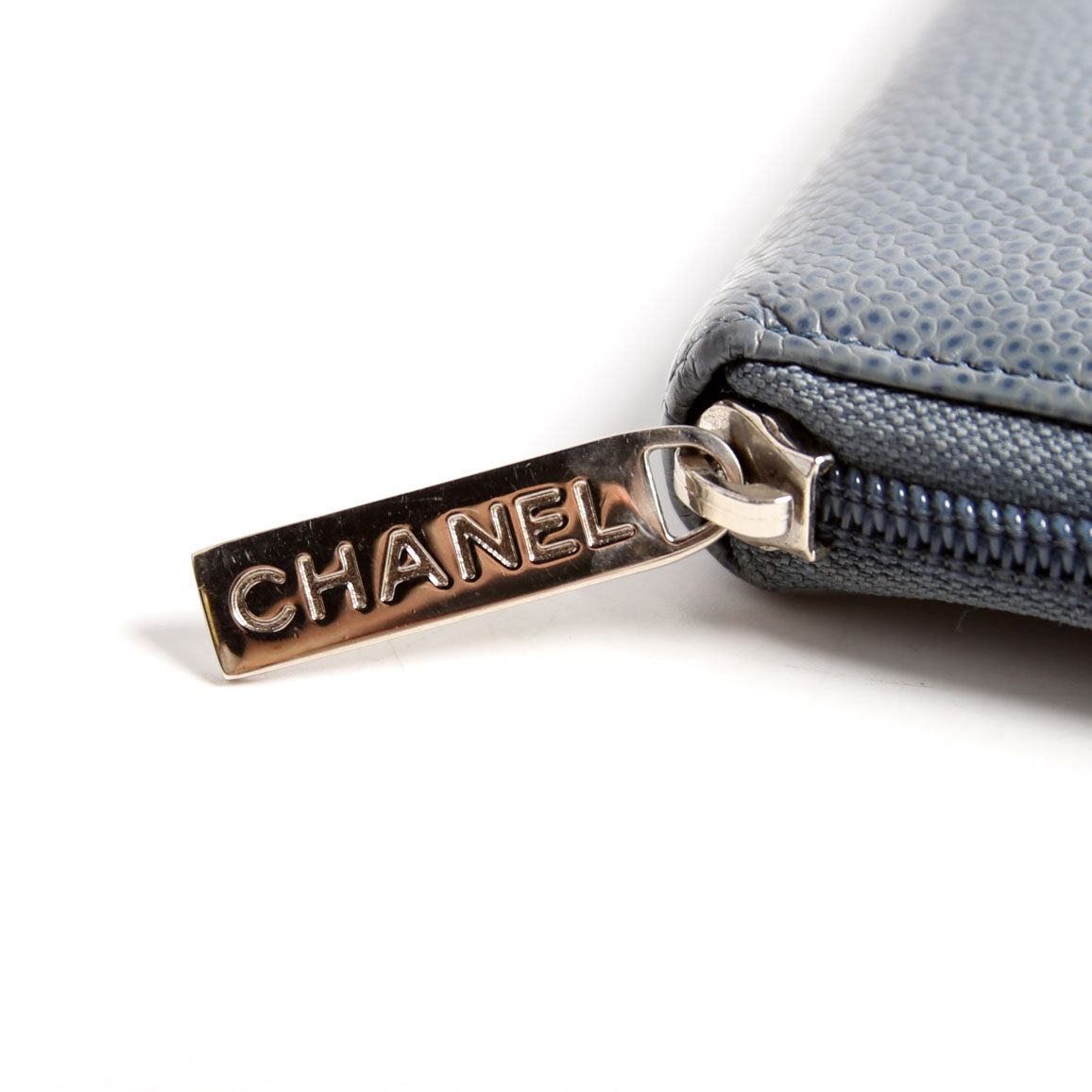 This pre-owned Chanel CC Timeless Zip Around Organizer Wallet is guaranteed 100% authentic.