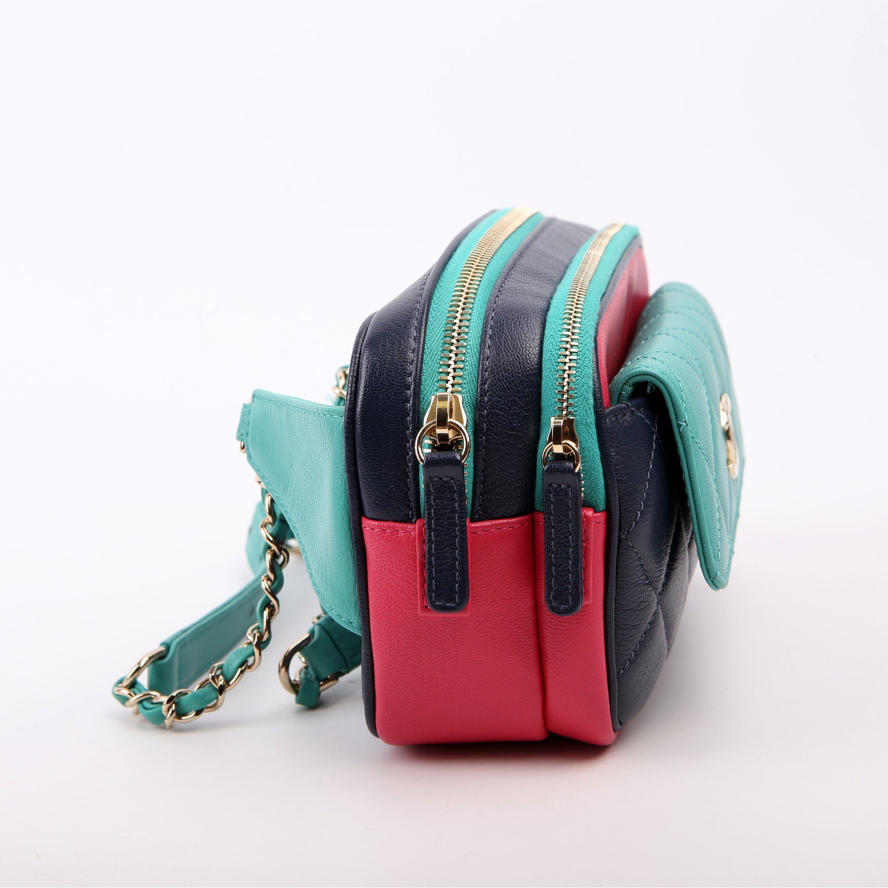 Tri-color In & Out Waist Bag Quilted Goatskin 29M