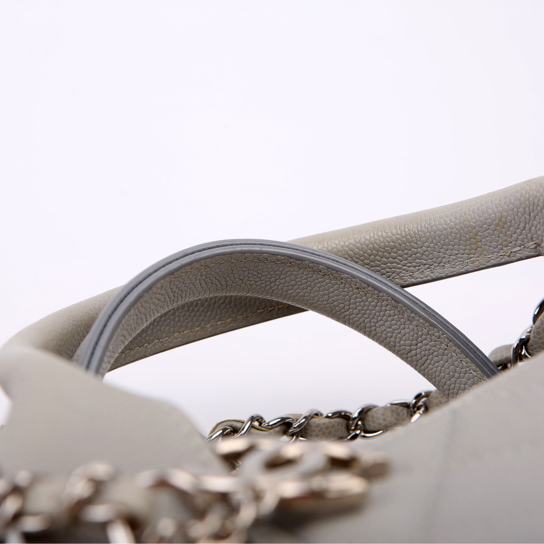 This pre-owned Chanel Urban Companion Top Handle Shopper is guaranteed 100% authentic. The exterior is in the classic Chanel Caviar leather.