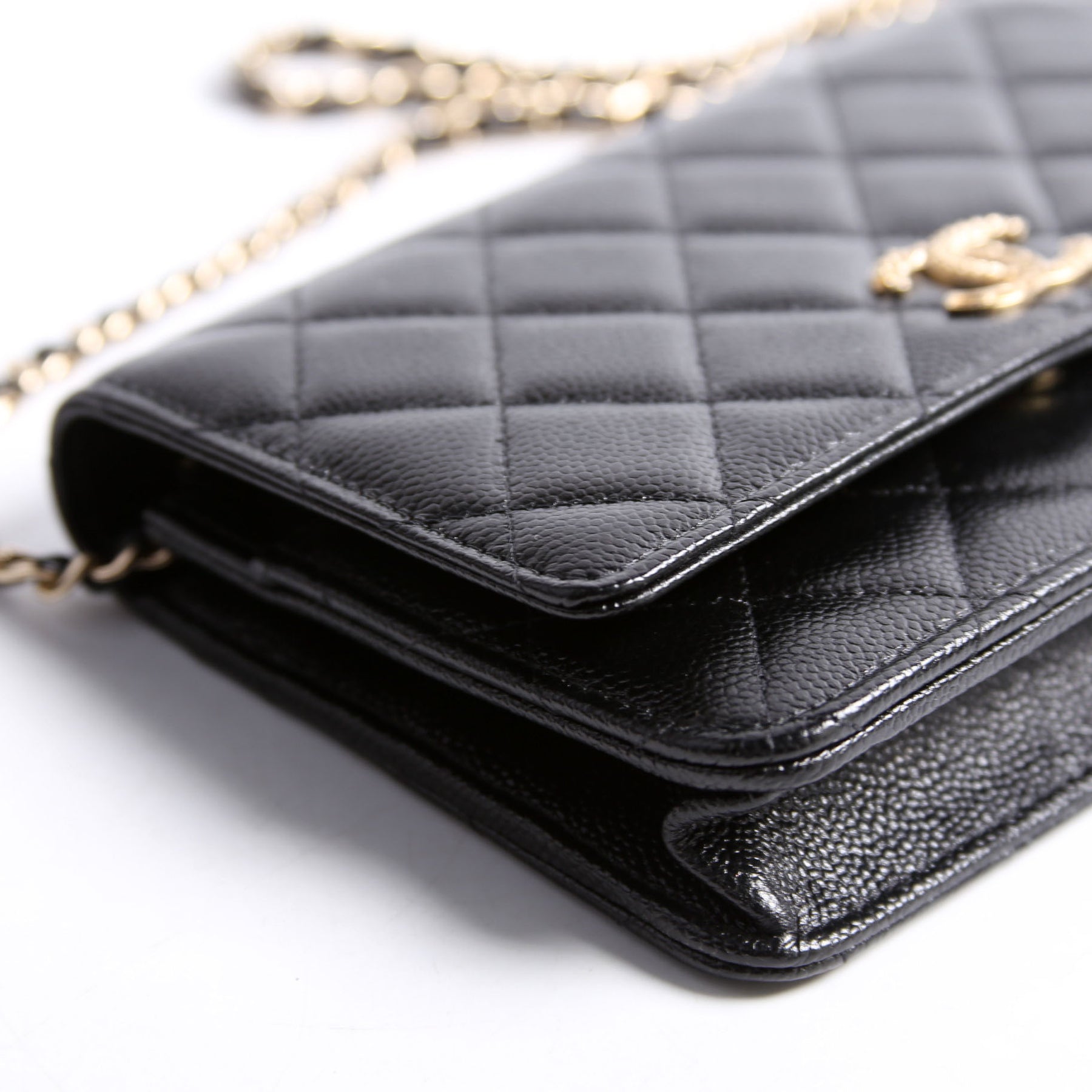 This pre-owned Chanel WOC Classic Quilted is guaranteed 100% authentic. The exterior is in the classic Chanel Caviar leather.