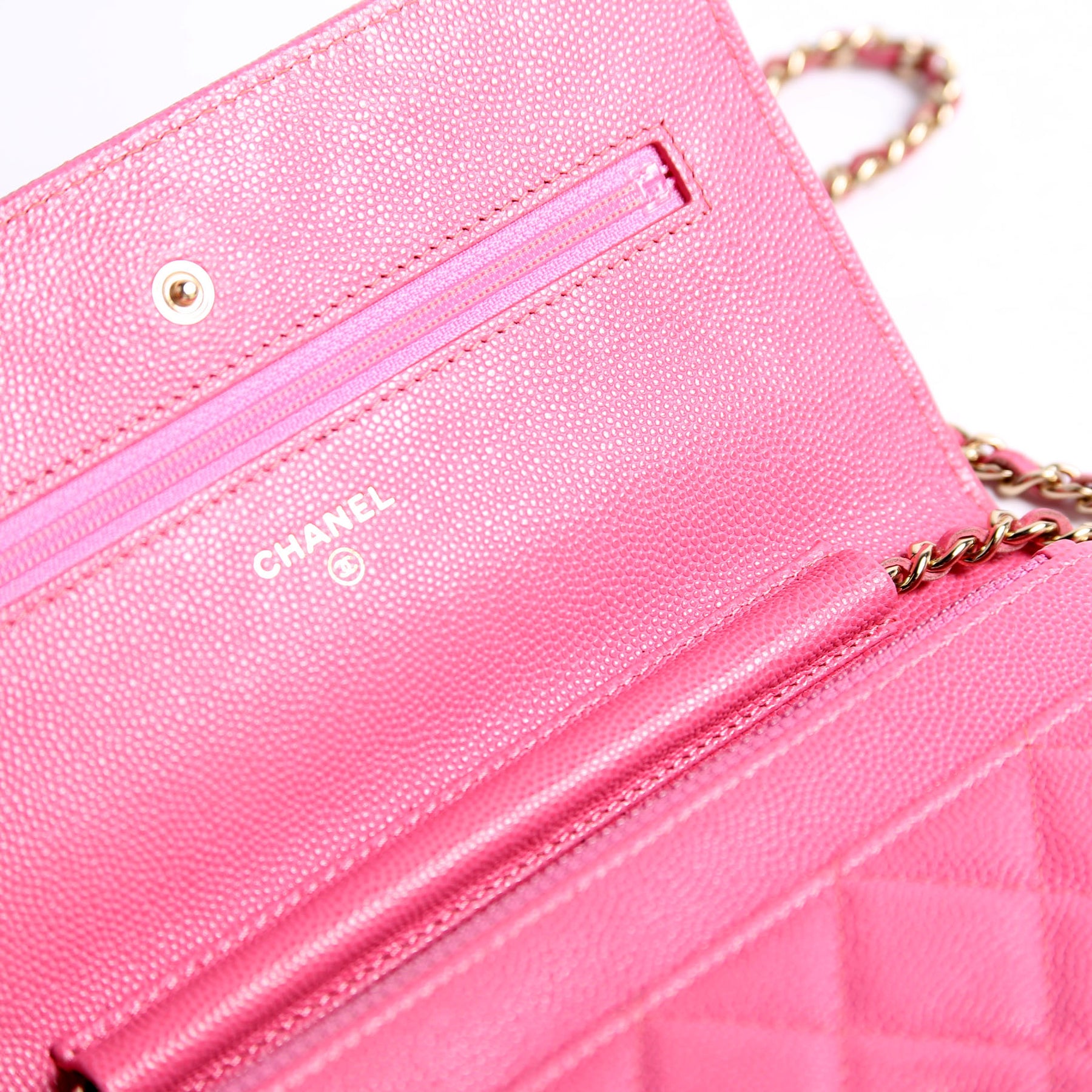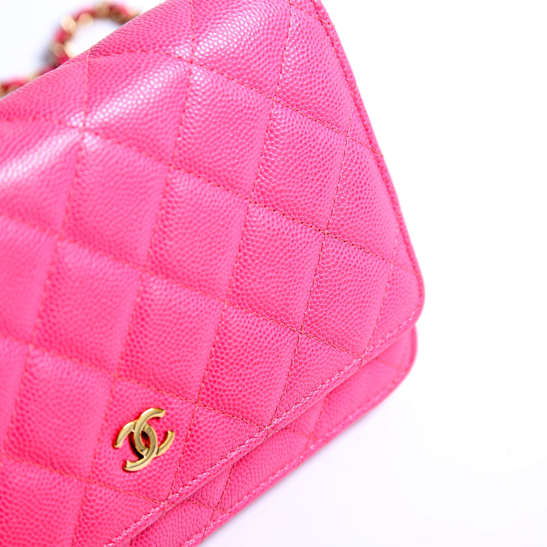 Wallet On Chain Classic Quilted Caviar Pink