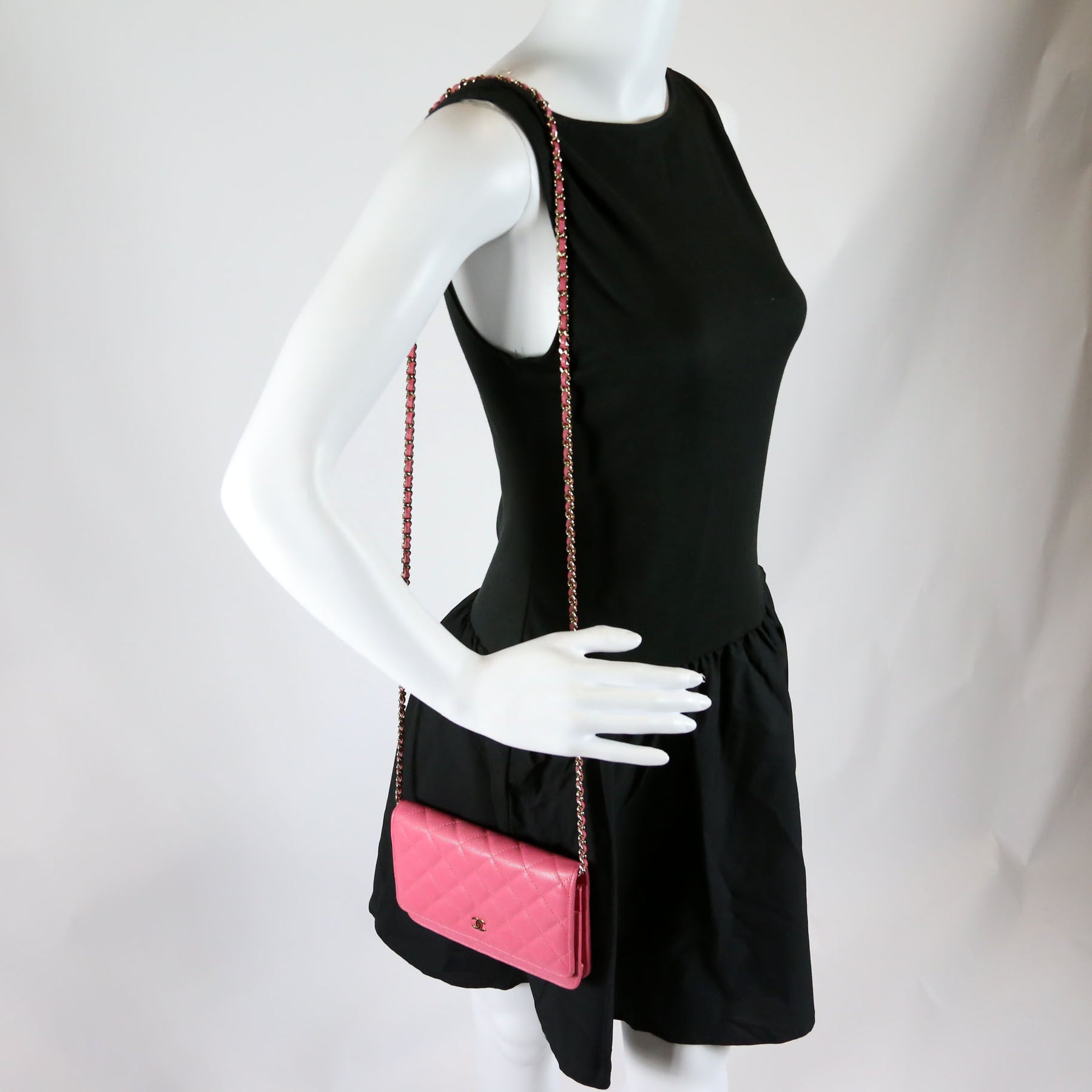 This pre-owned Chanel Wallet On Chain Classic Quilted is guaranteed 100% authentic. The exterior is in the classic Chanel Caviar leather.