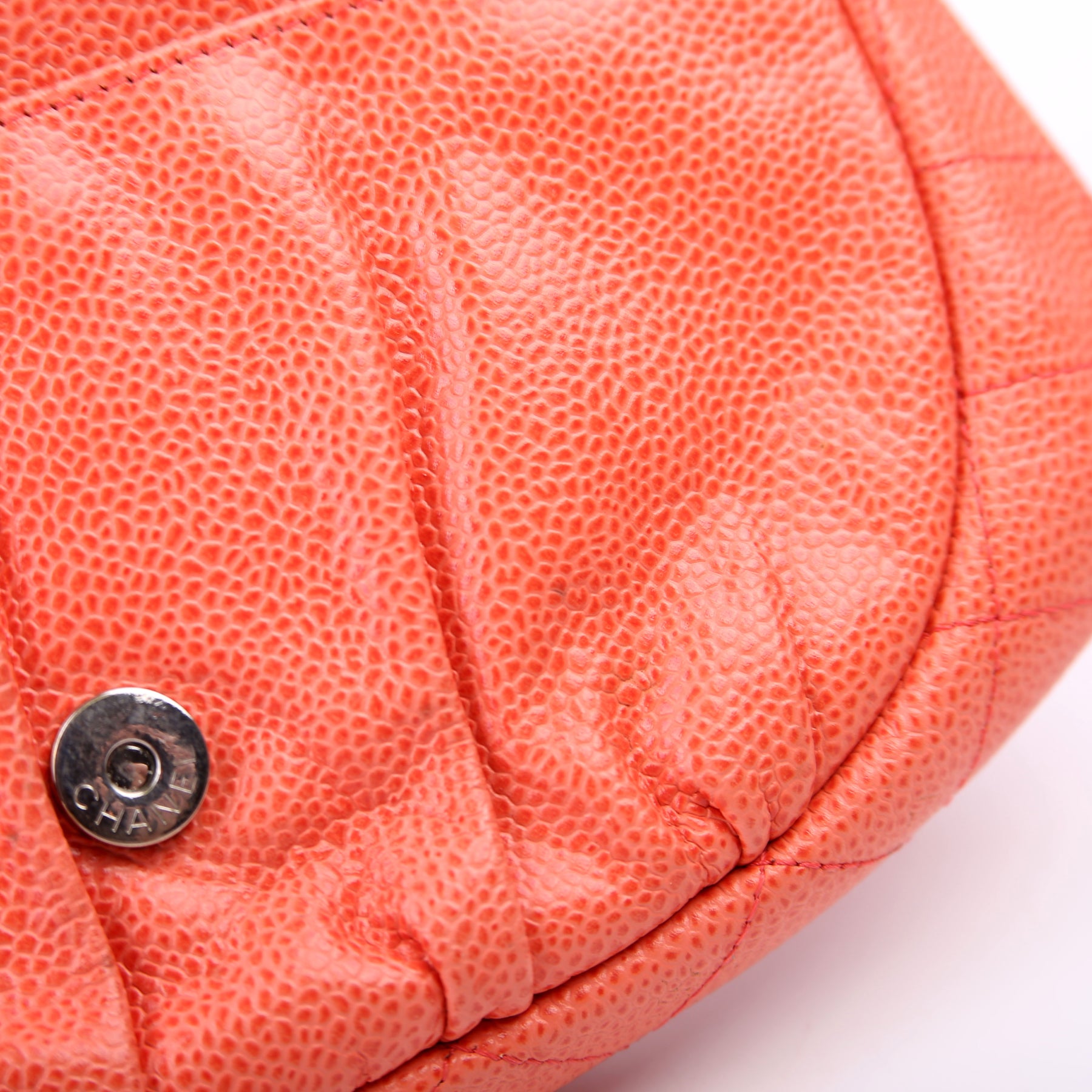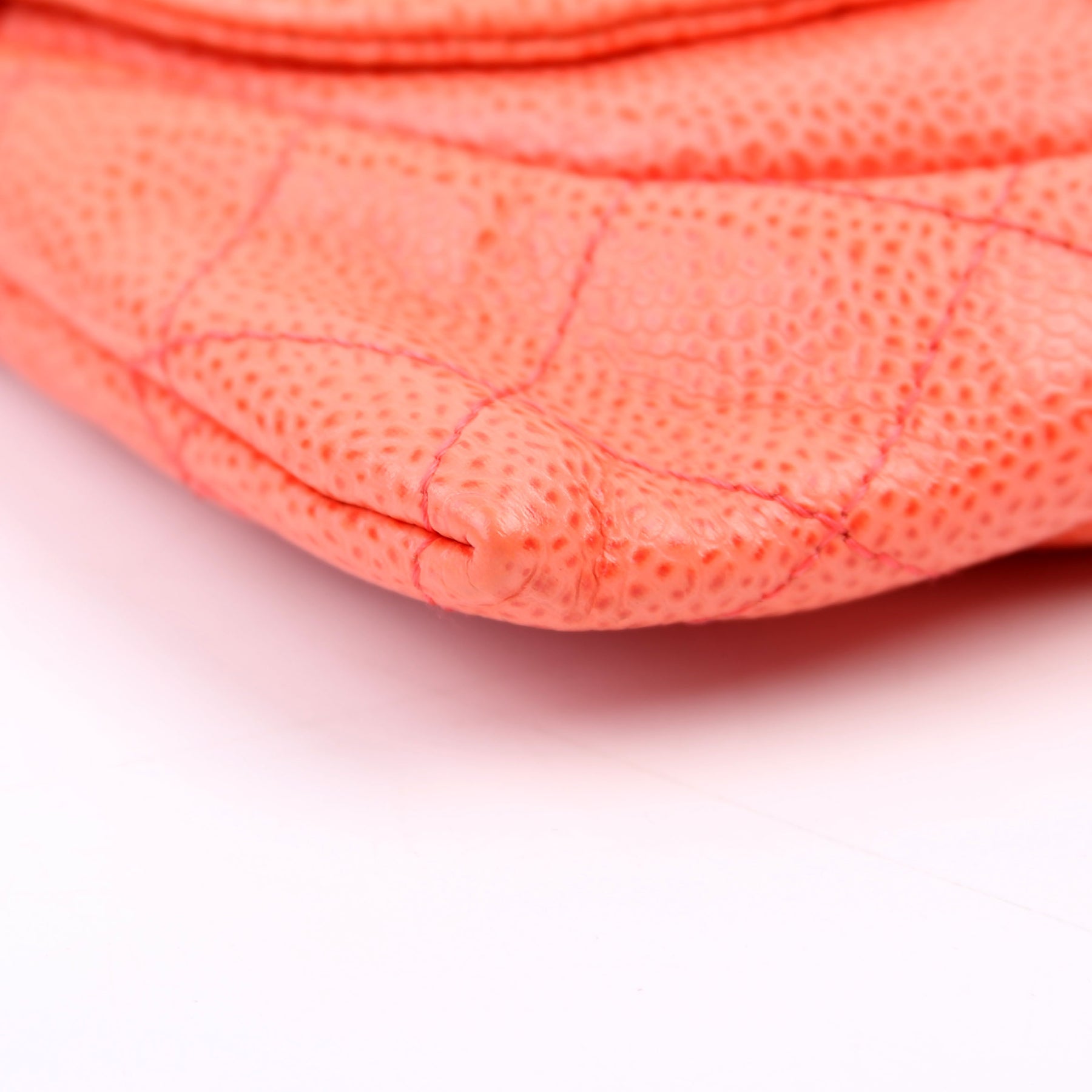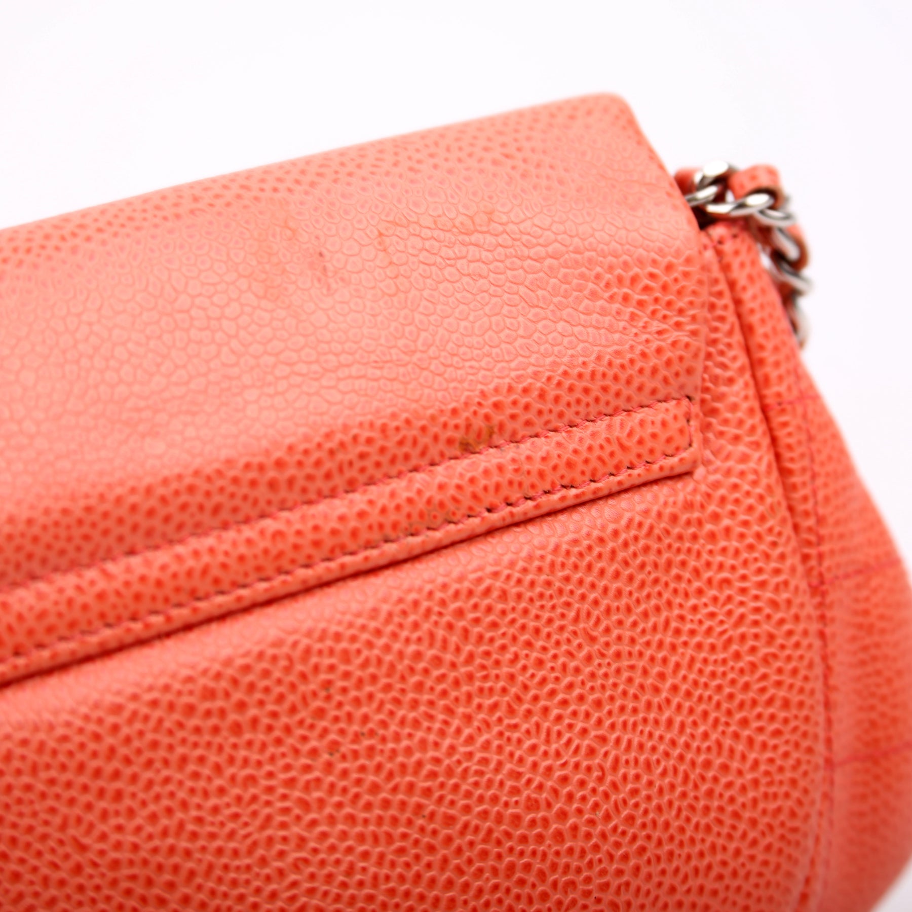 This pre-owned Chanel WOC Half Moon is guaranteed 100% authentic. The exterior is in Caviar leather.