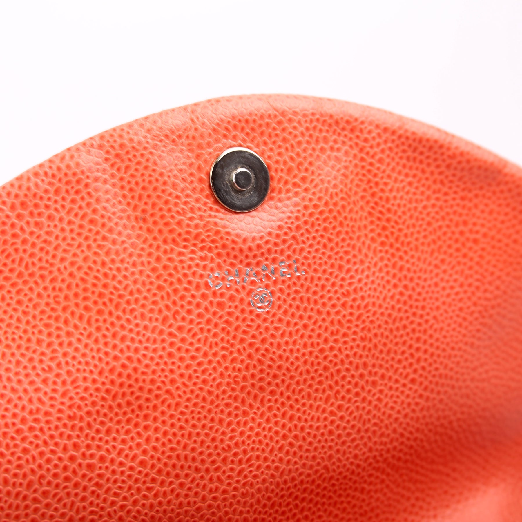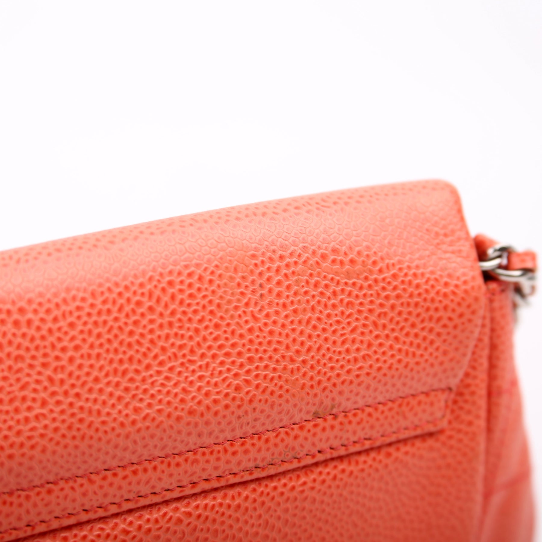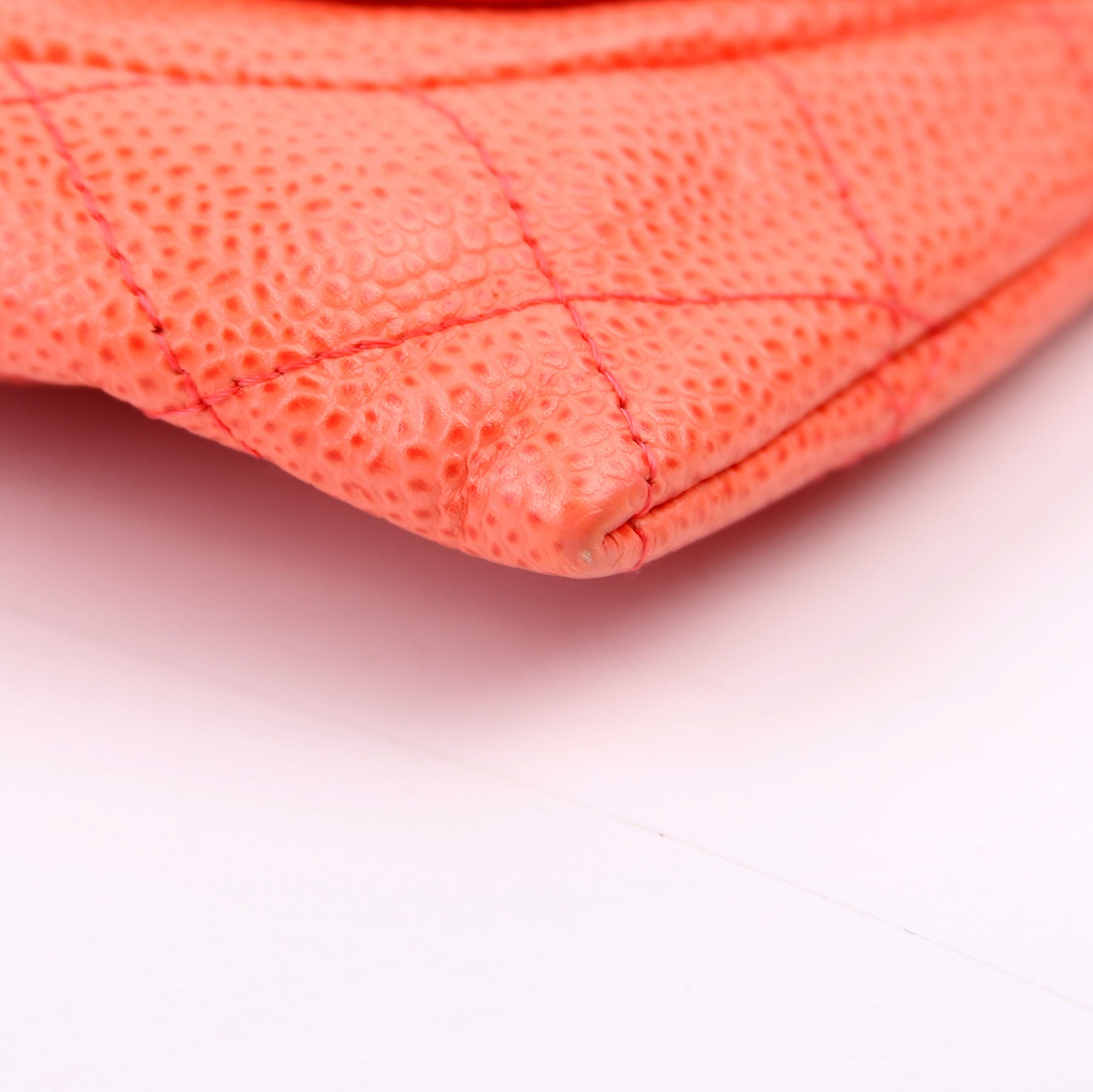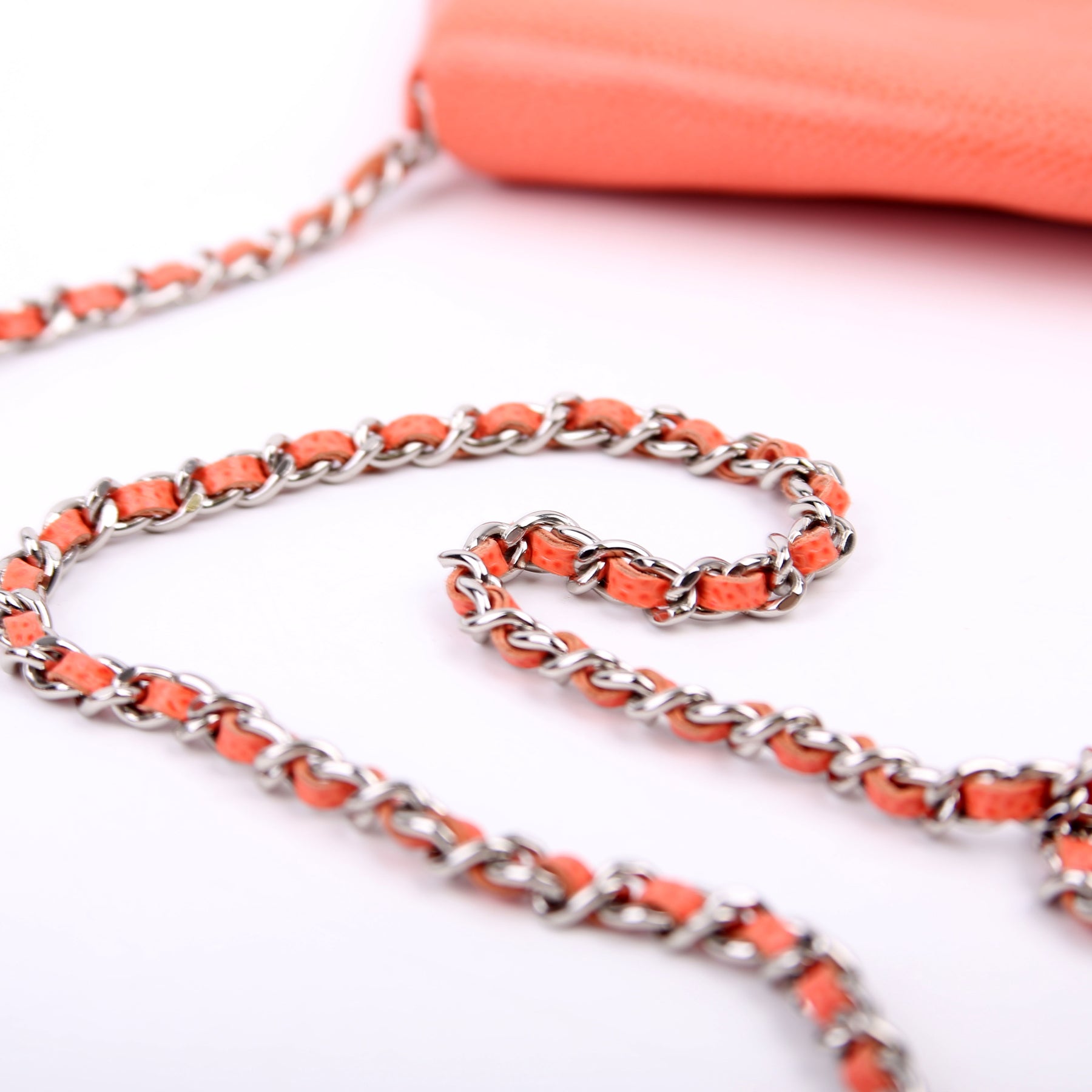 This pre-owned Chanel WOC Half Moon is guaranteed 100% authentic. The exterior is in Caviar leather.