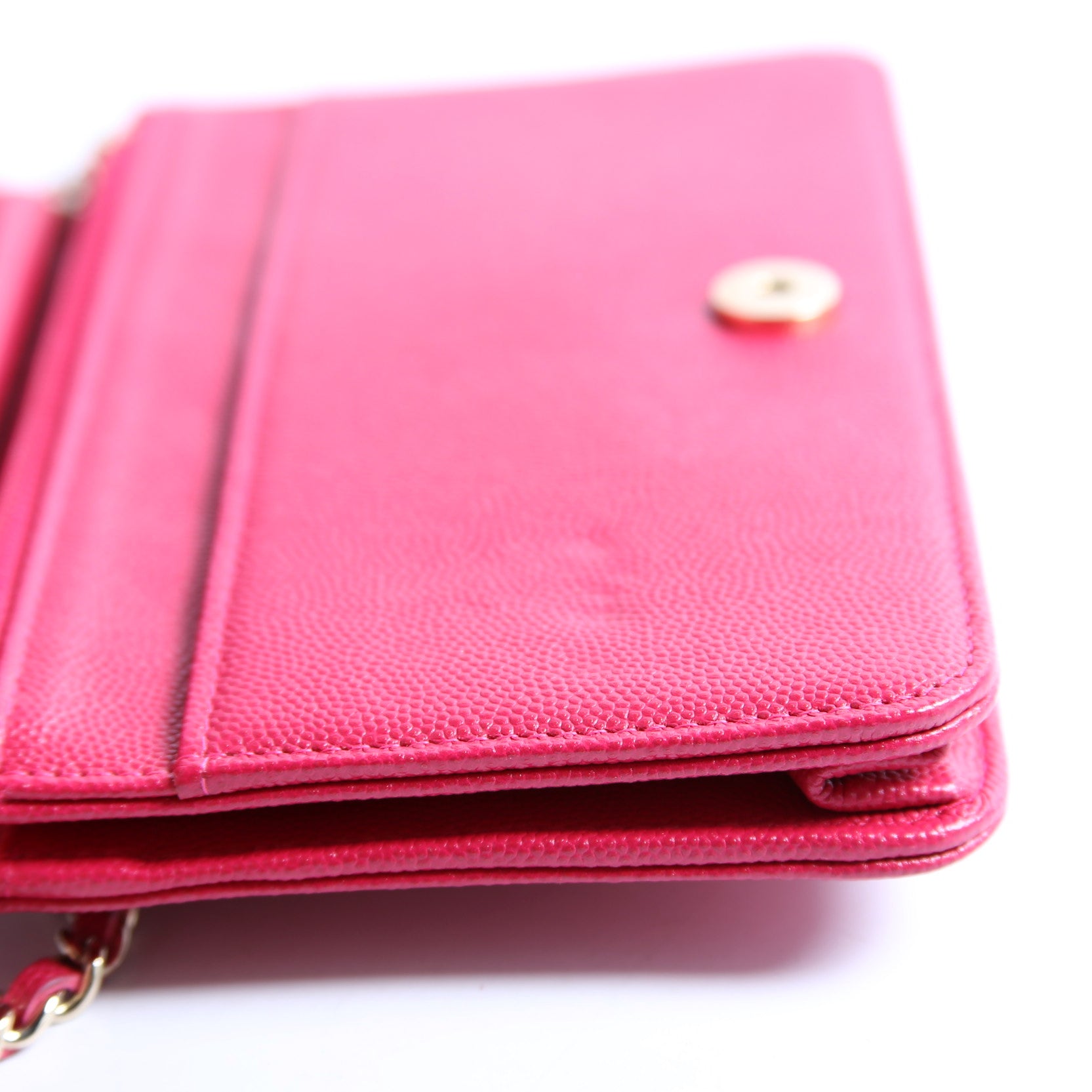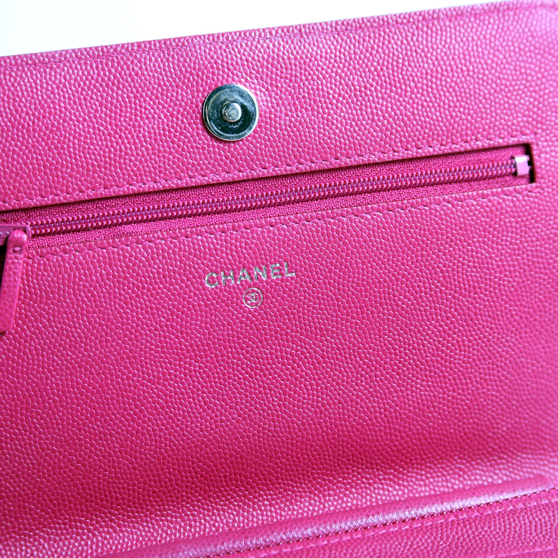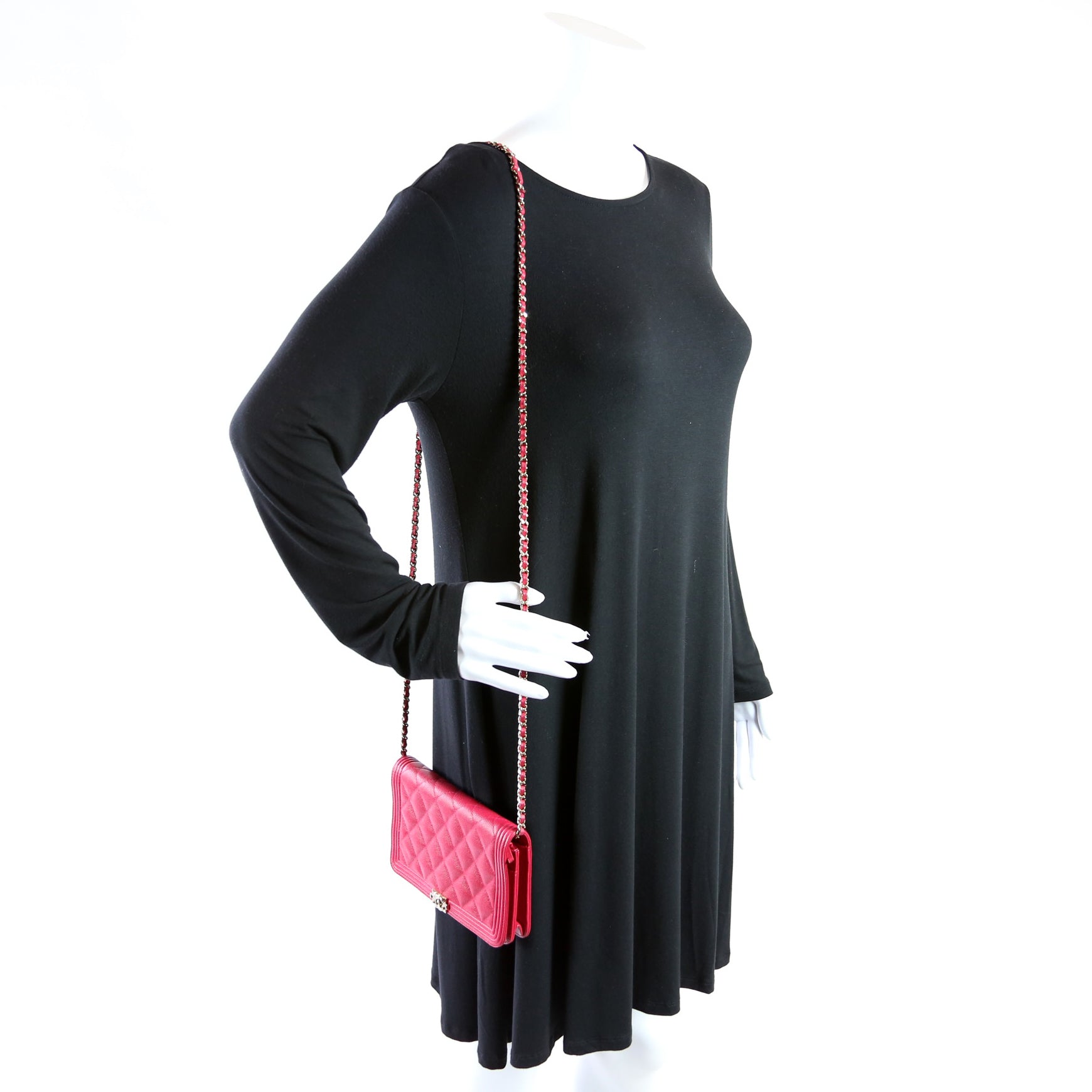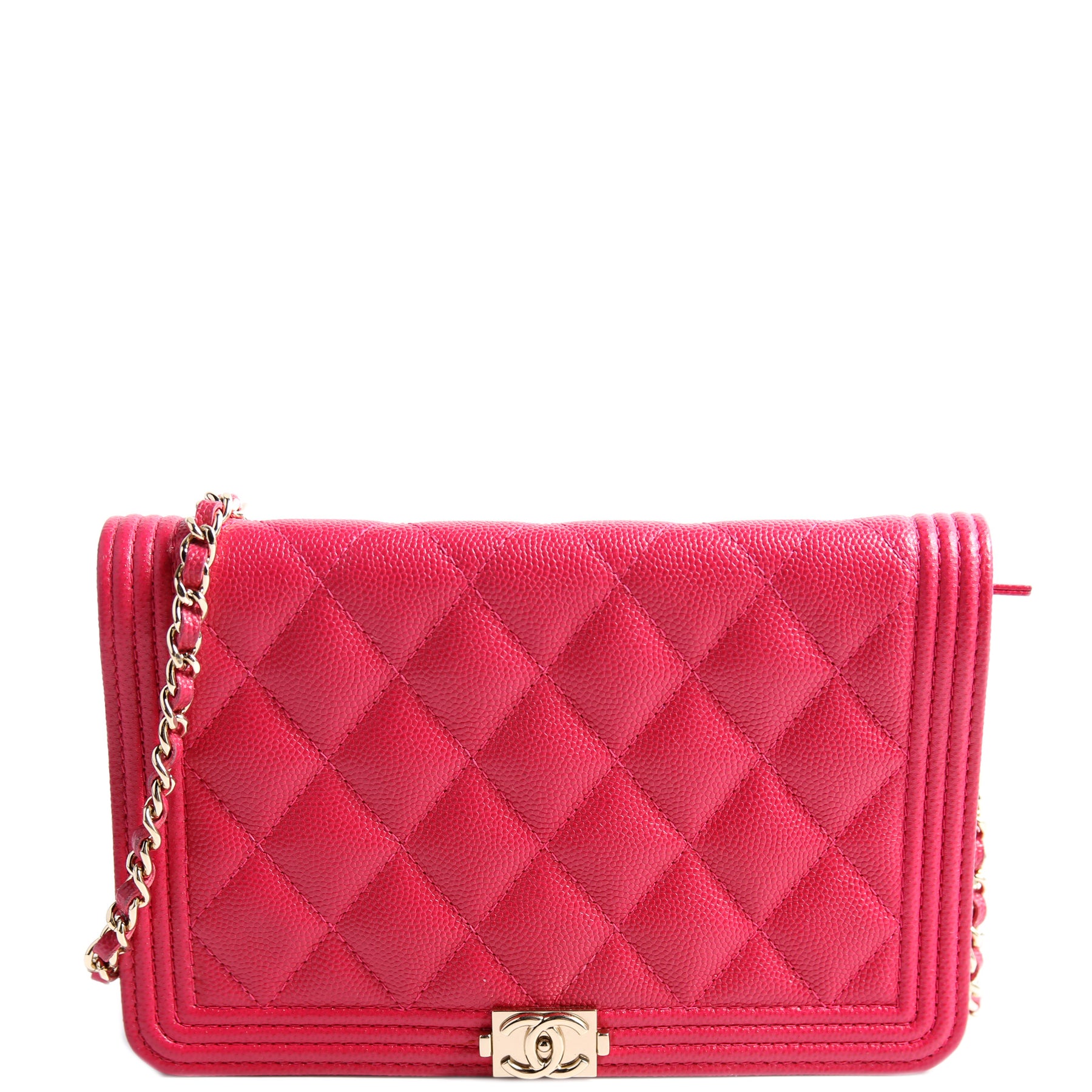 This pre-owned Chanel WOC Boy is guaranteed 100% authentic. The exterior is in the classic Chanel Caviar leather.
