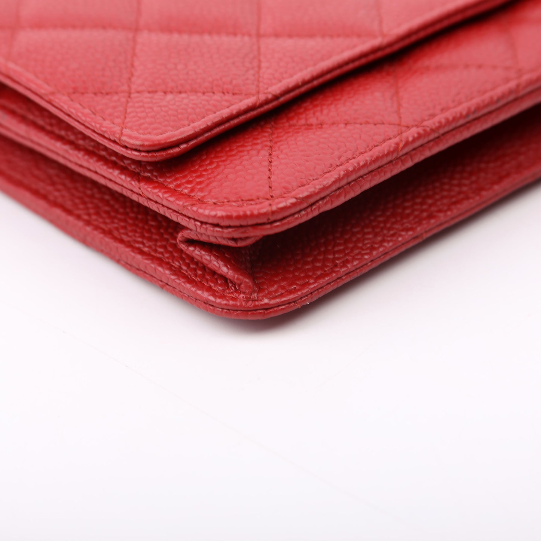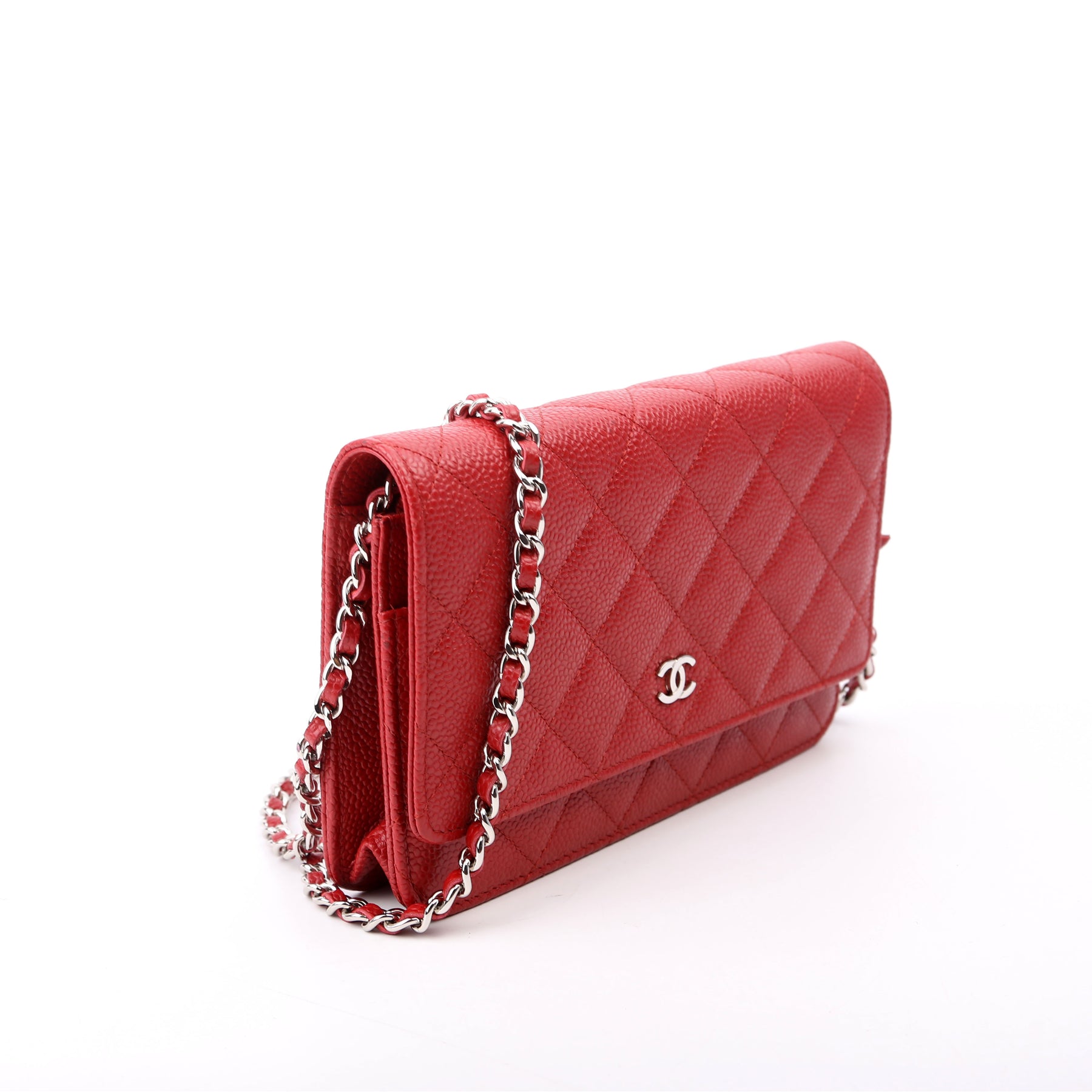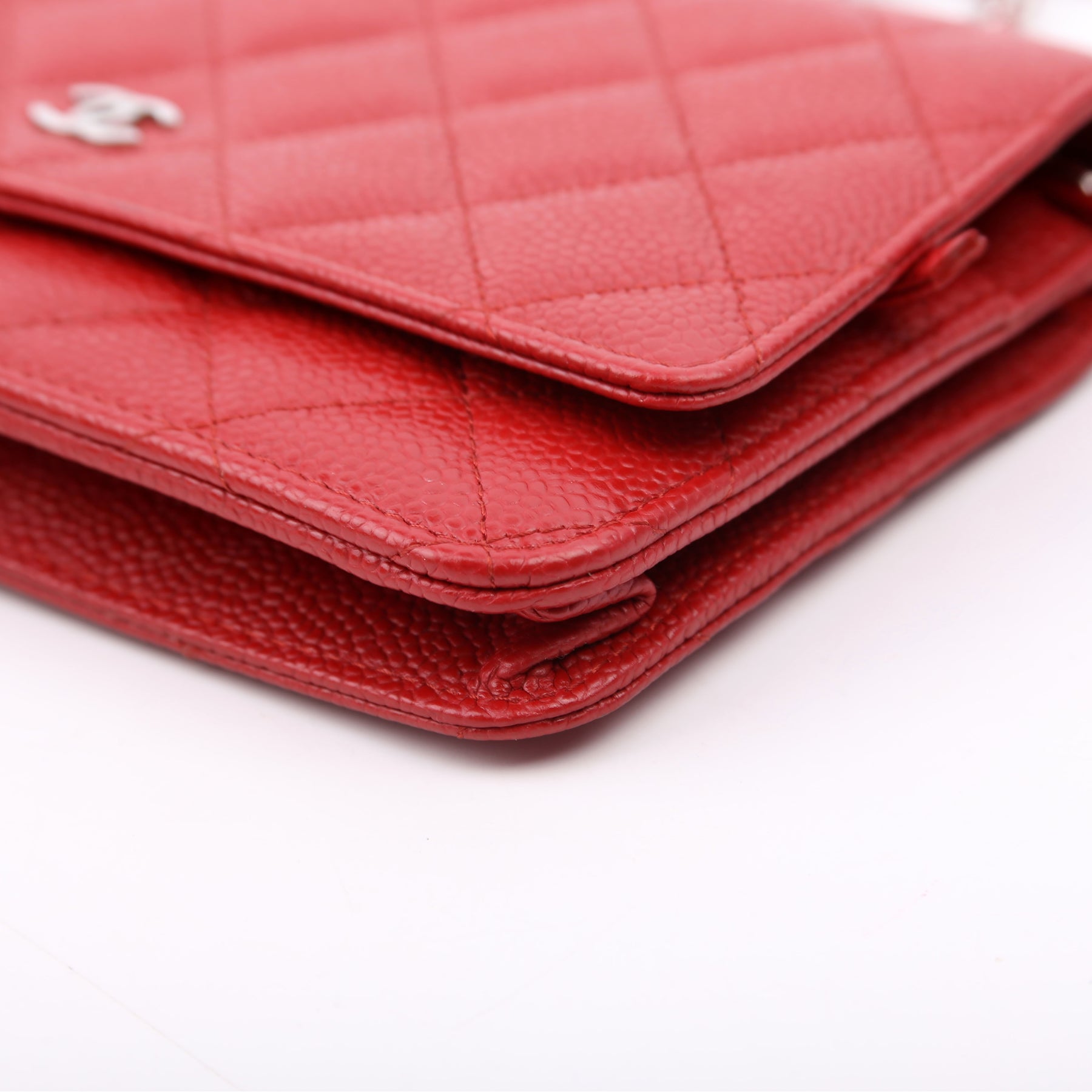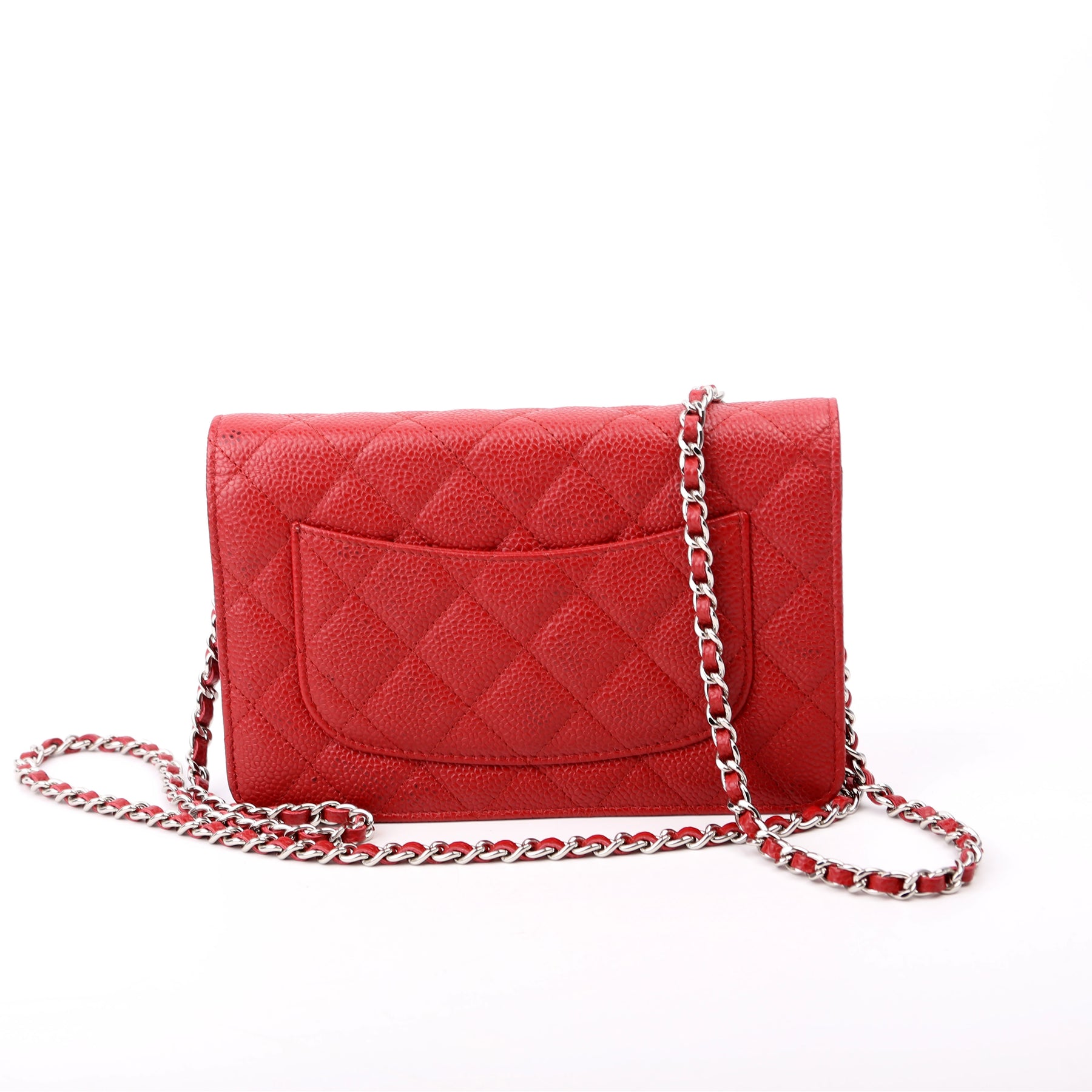 This pre-owned Chanel WOC Classic Quilted is guaranteed 100% authentic. The exterior is in the classic Chanel Caviar leather.