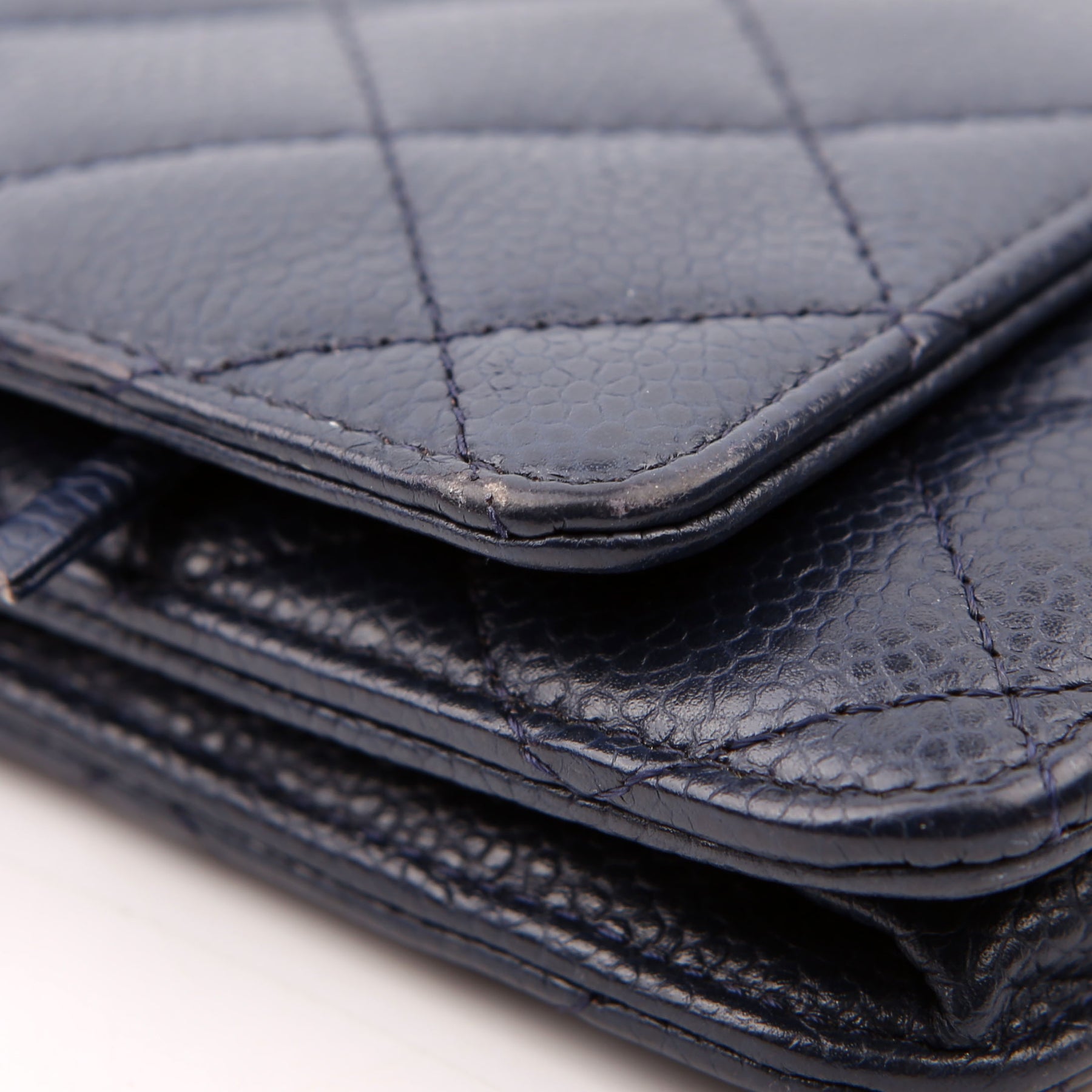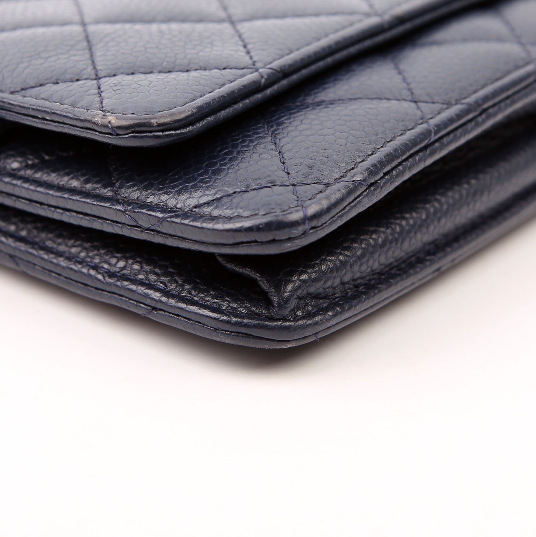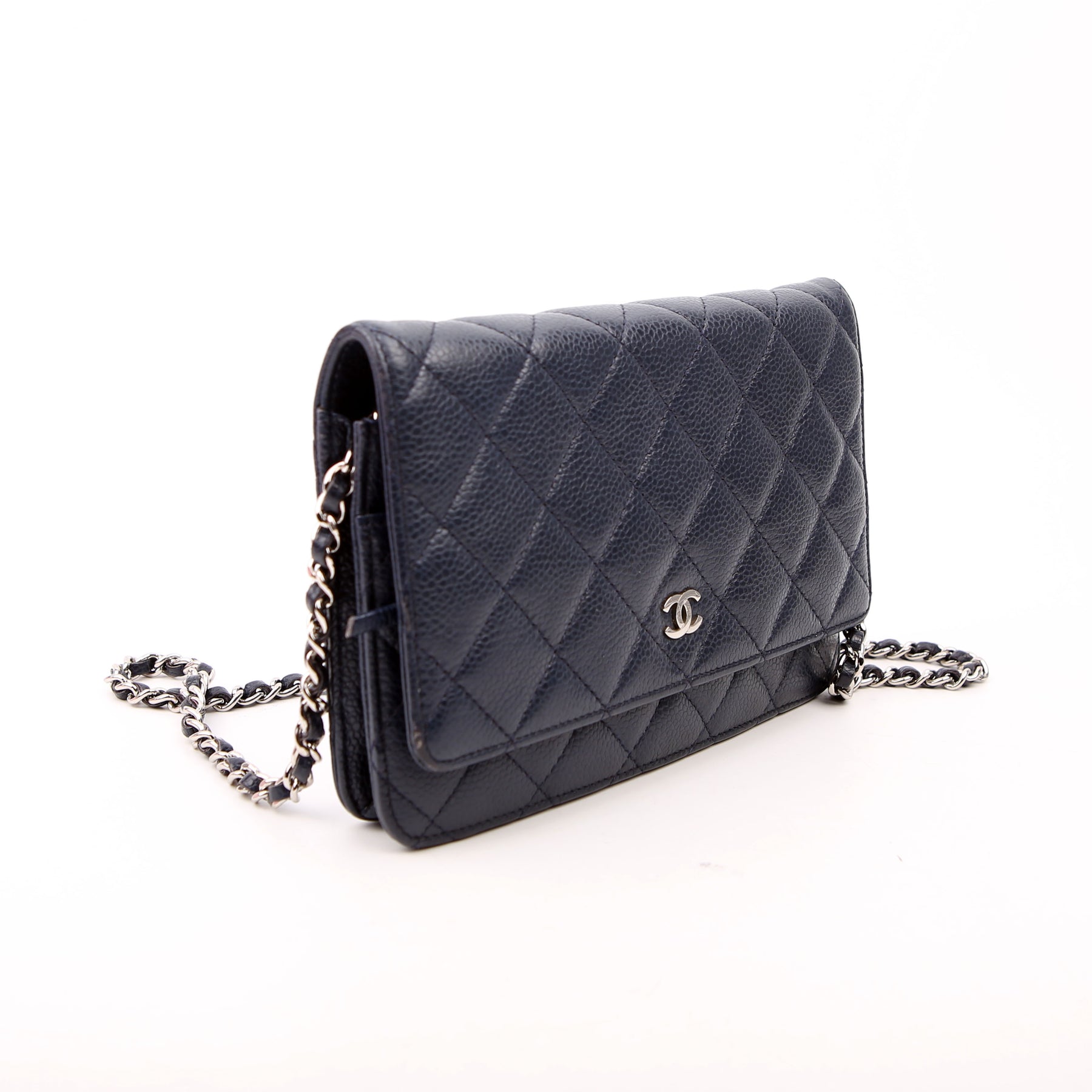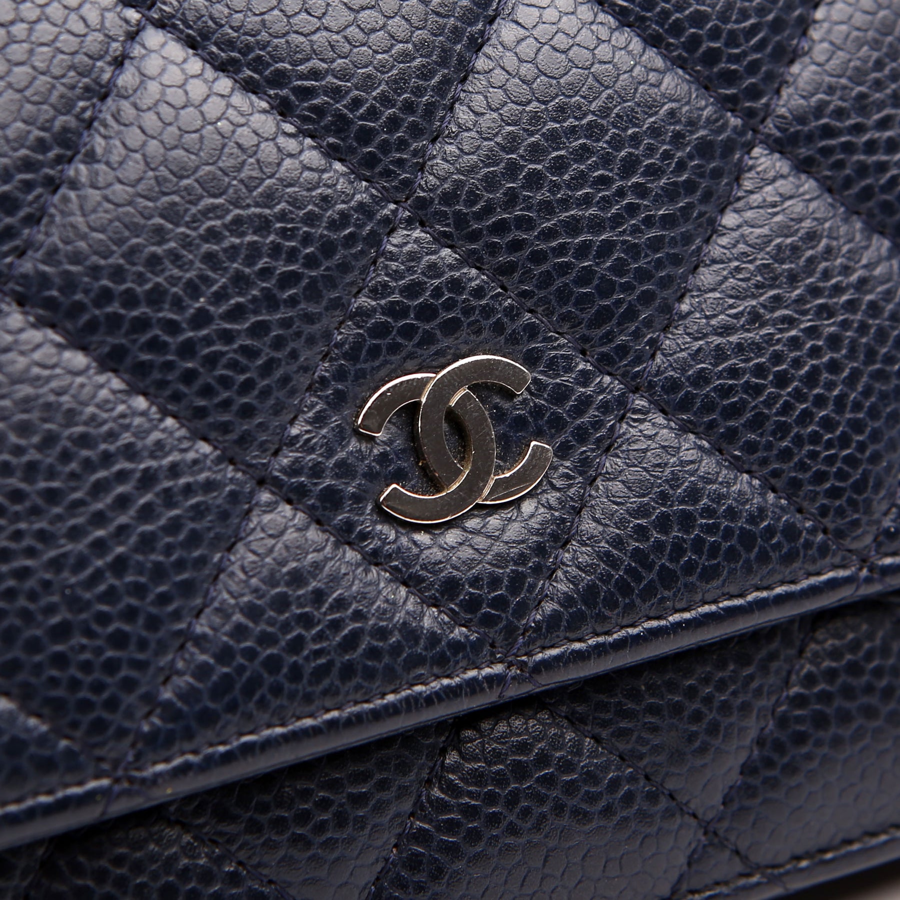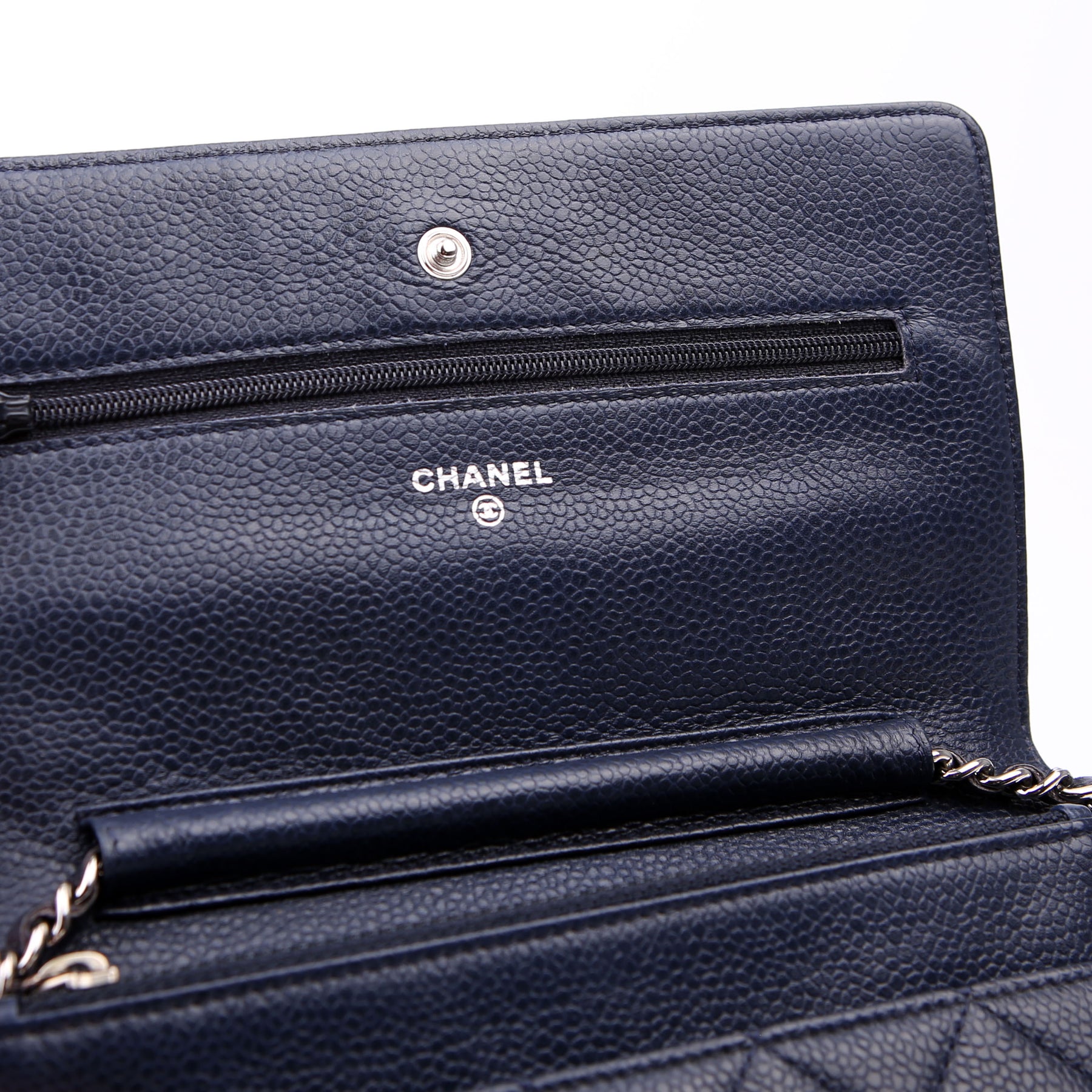 This pre-owned Chanel WOC Classic Quilted is guaranteed 100% authentic. The exterior is in the classic Chanel Caviar leather.