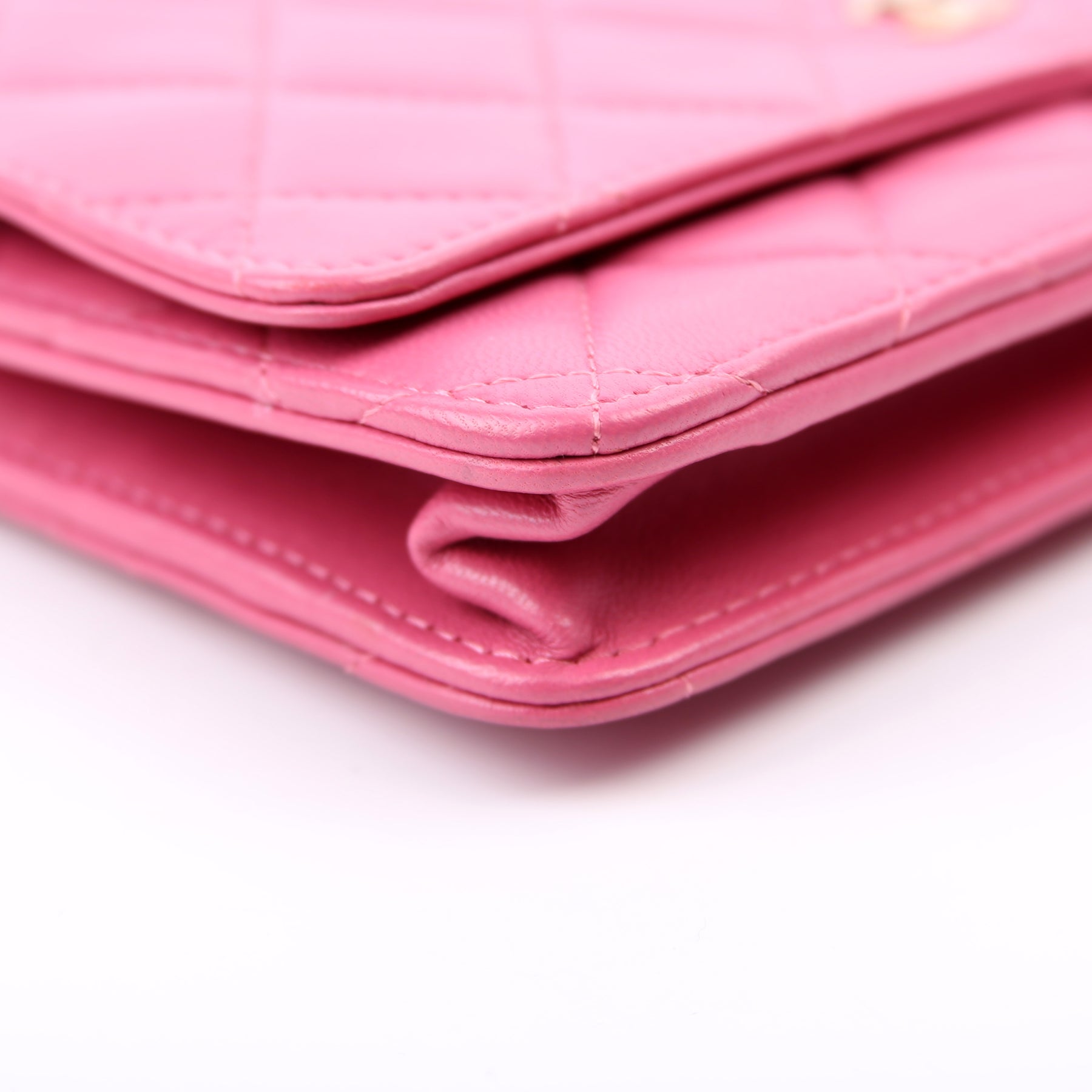 This pre-owned Chanel WOC Classic Quilted is guaranteed 100% authentic. The exterior is in the classic Chanel Lambskin leather.