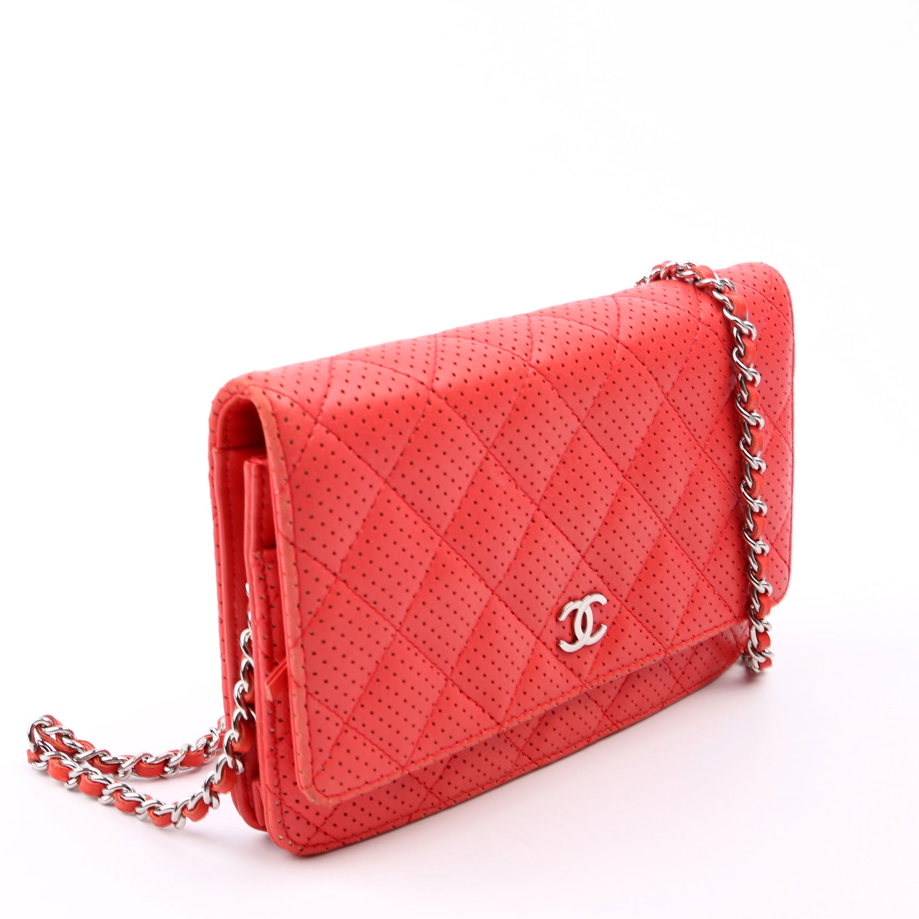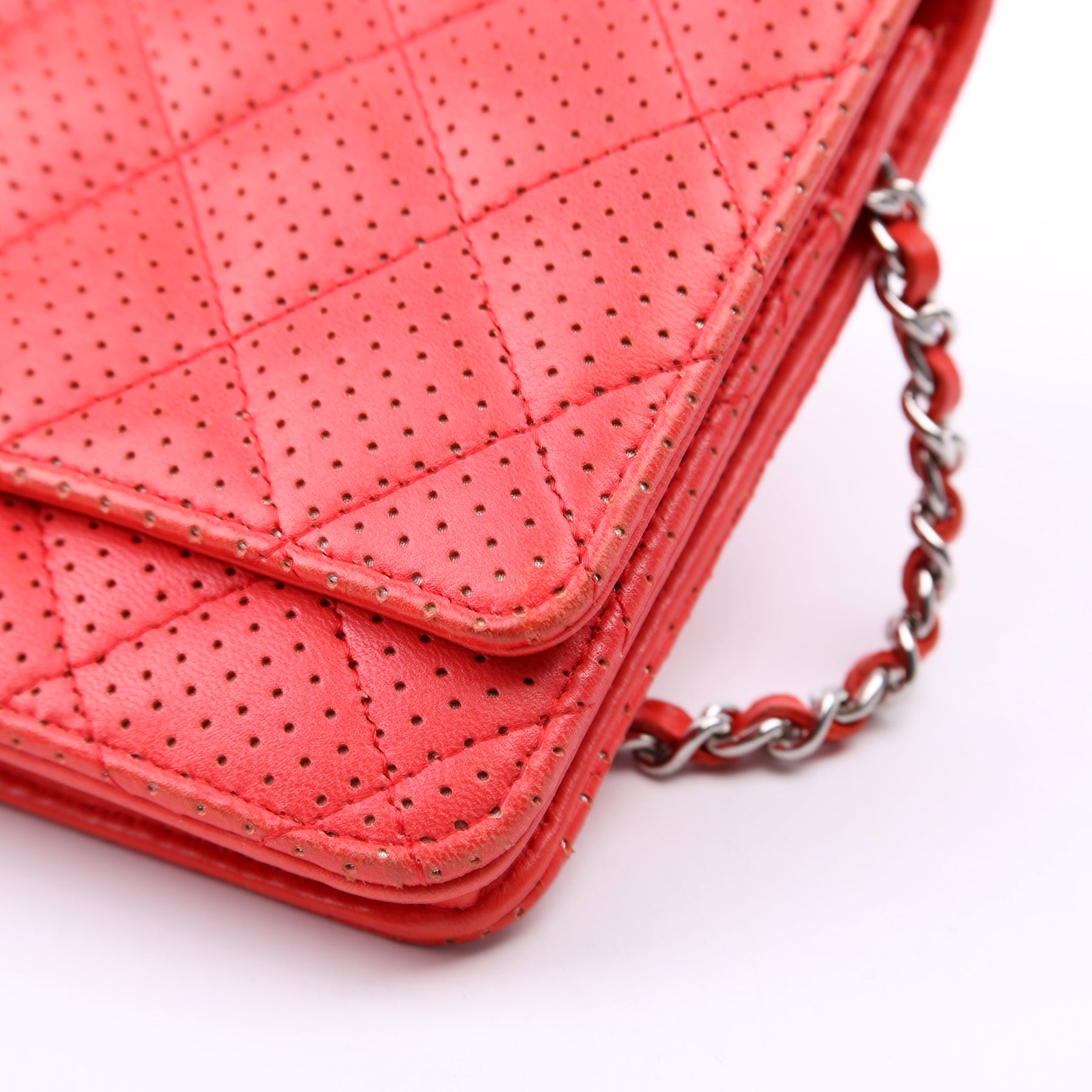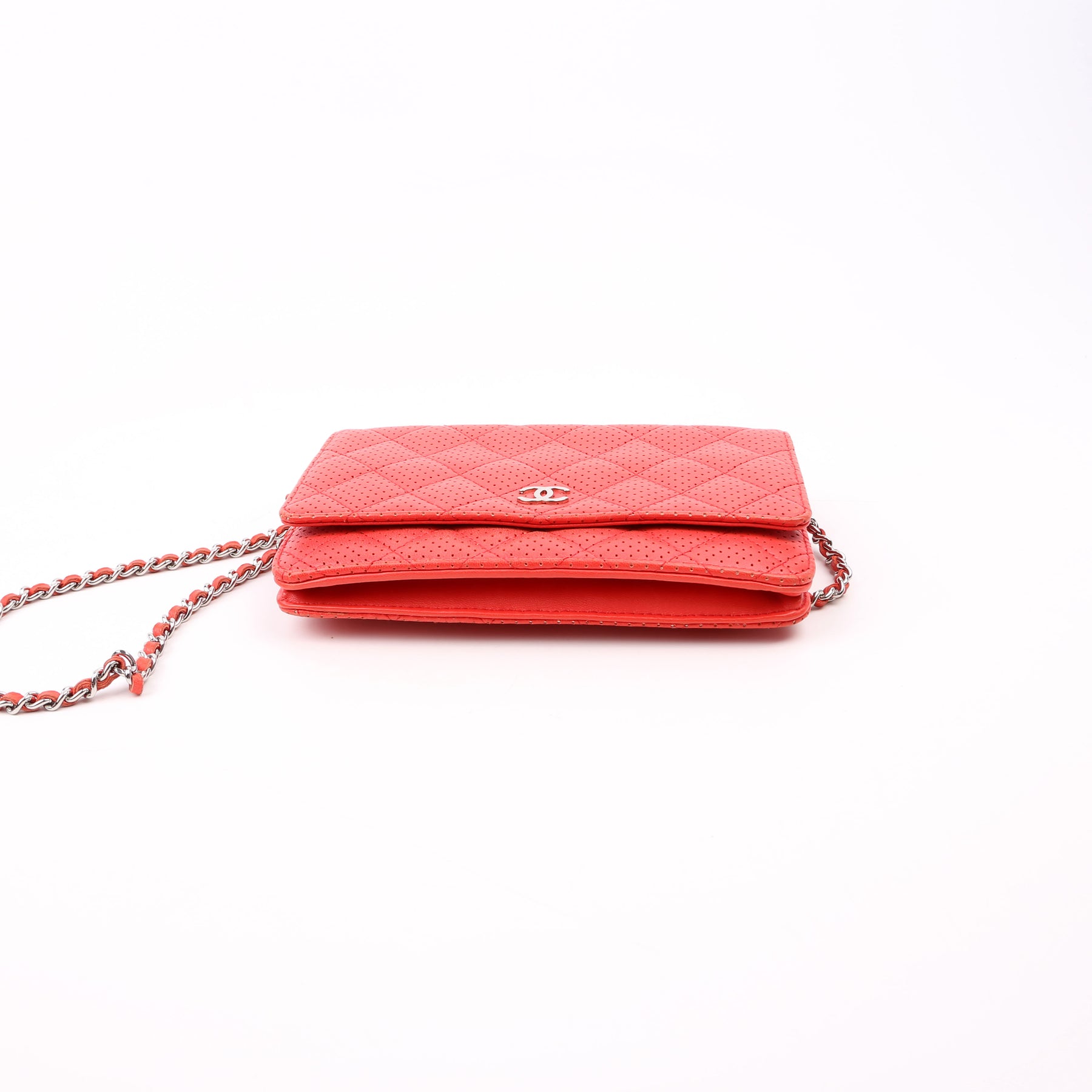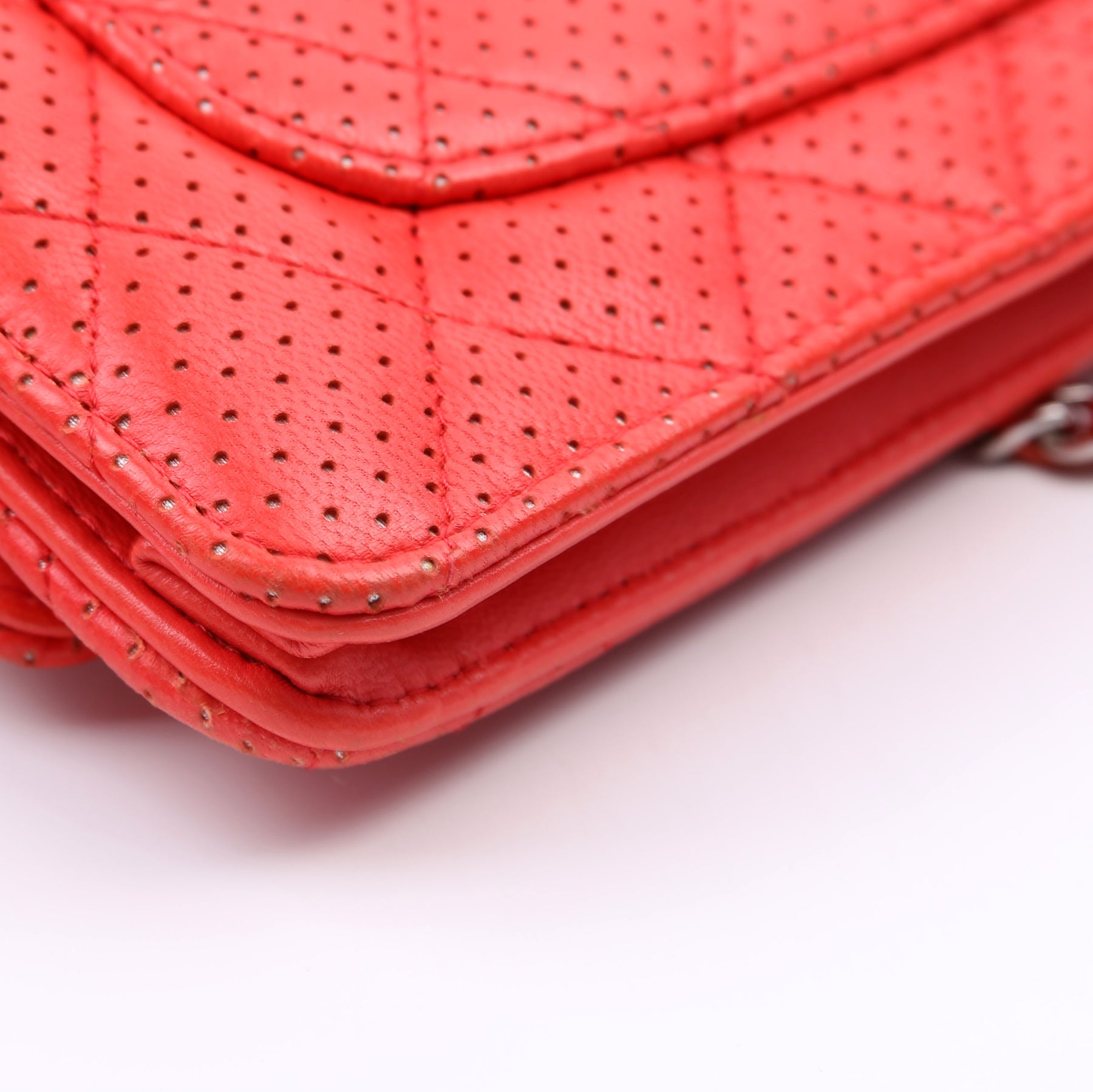This pre-owned Chanel WOC Perforated Leathers Purse is guaranteed 100% authentic.