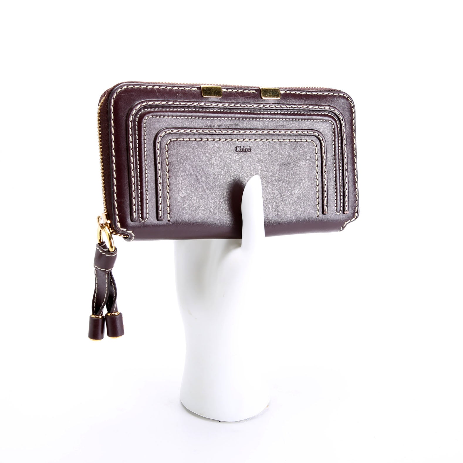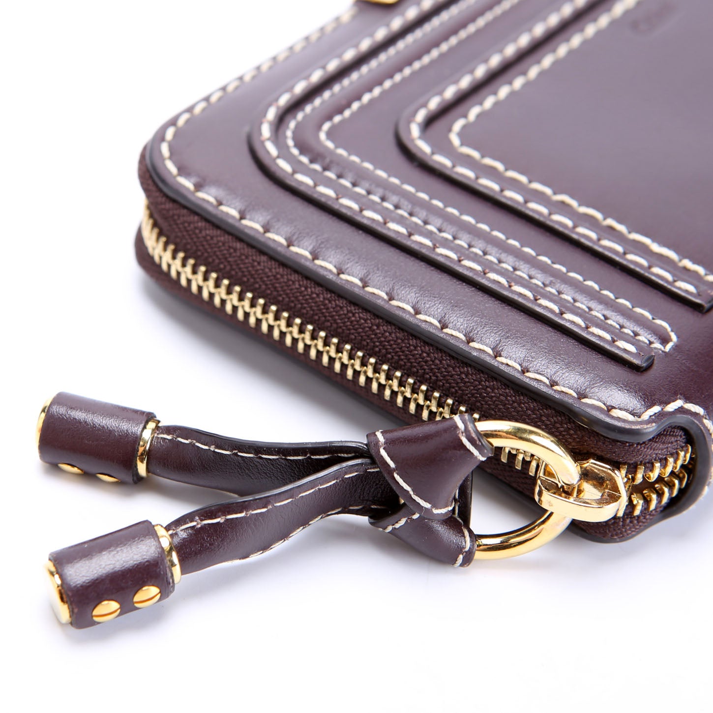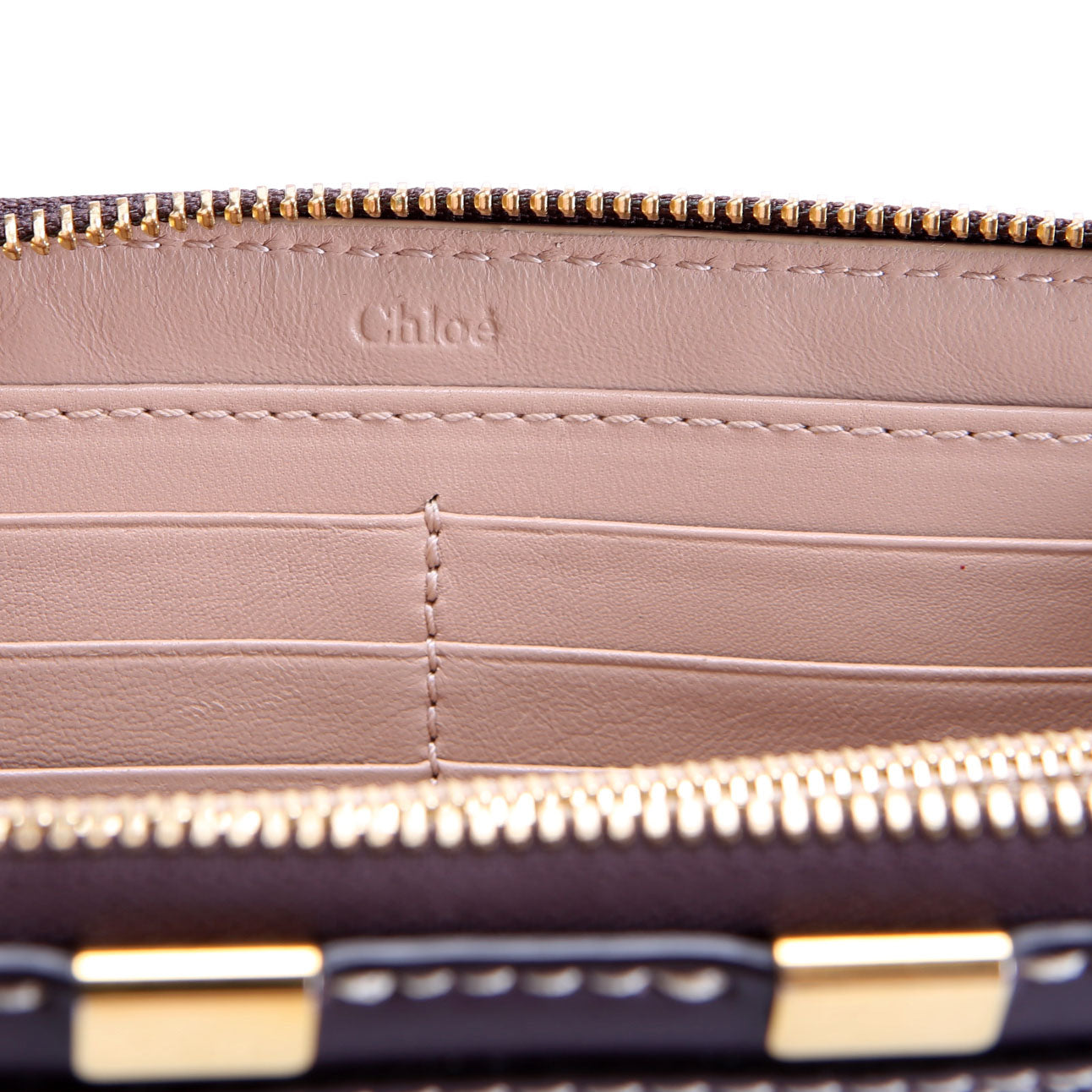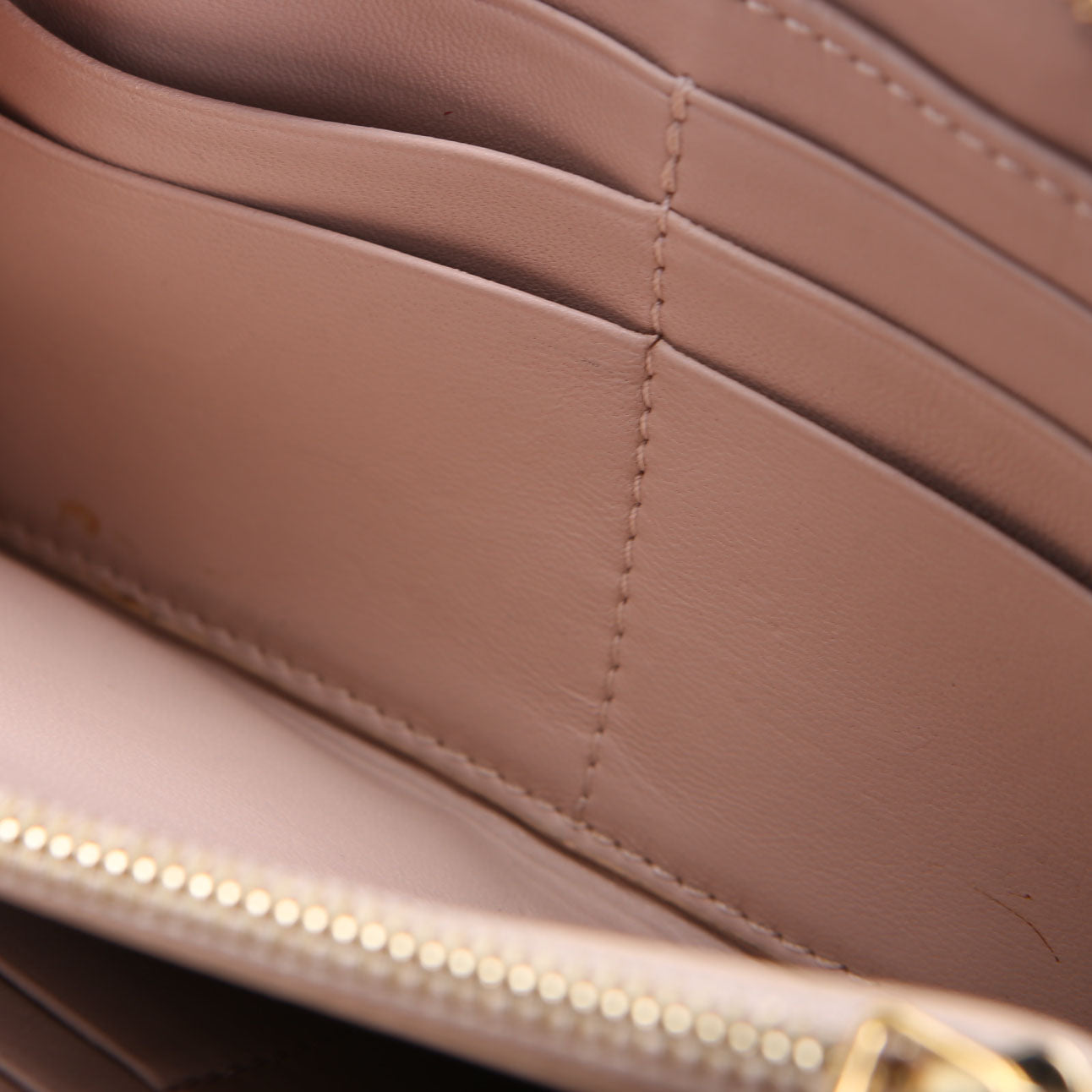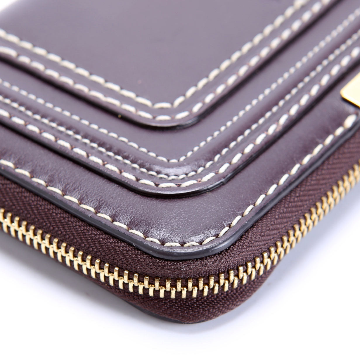 Interior: The interior shows light wear. It features twelve card slots, two open pockets, and one zip closure pocket. The coin pouch is stained.