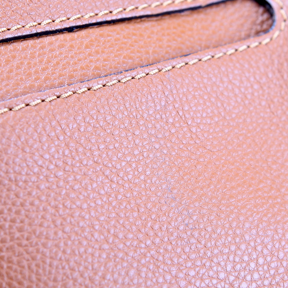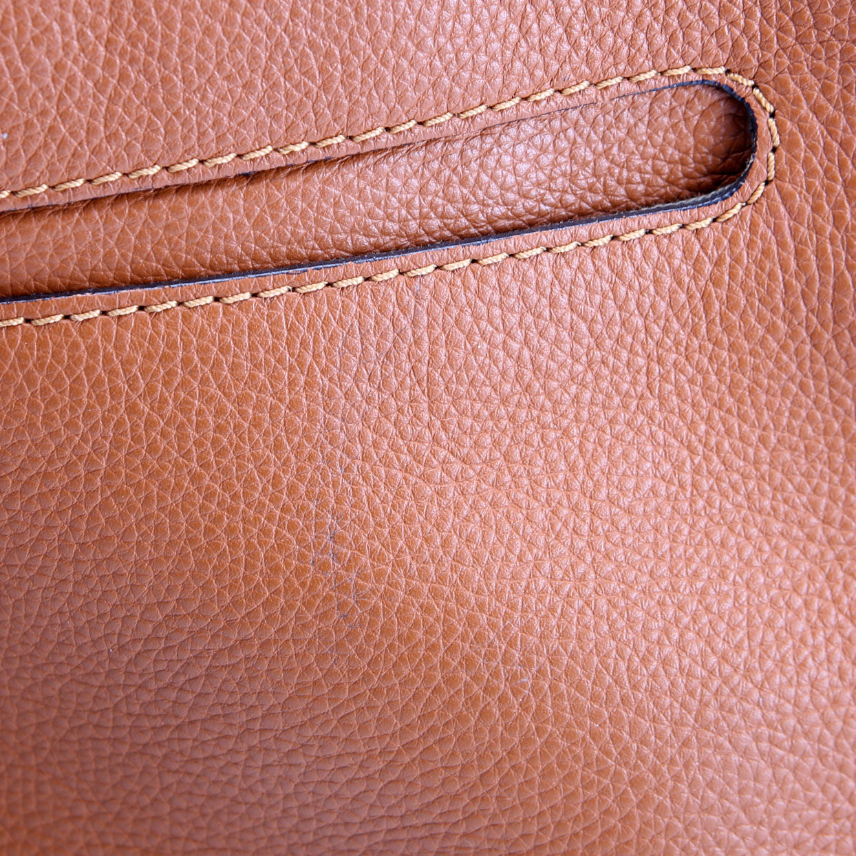 Exterior: The exterior leather is free from wear. The base is slightly misshapen from storage and wear.