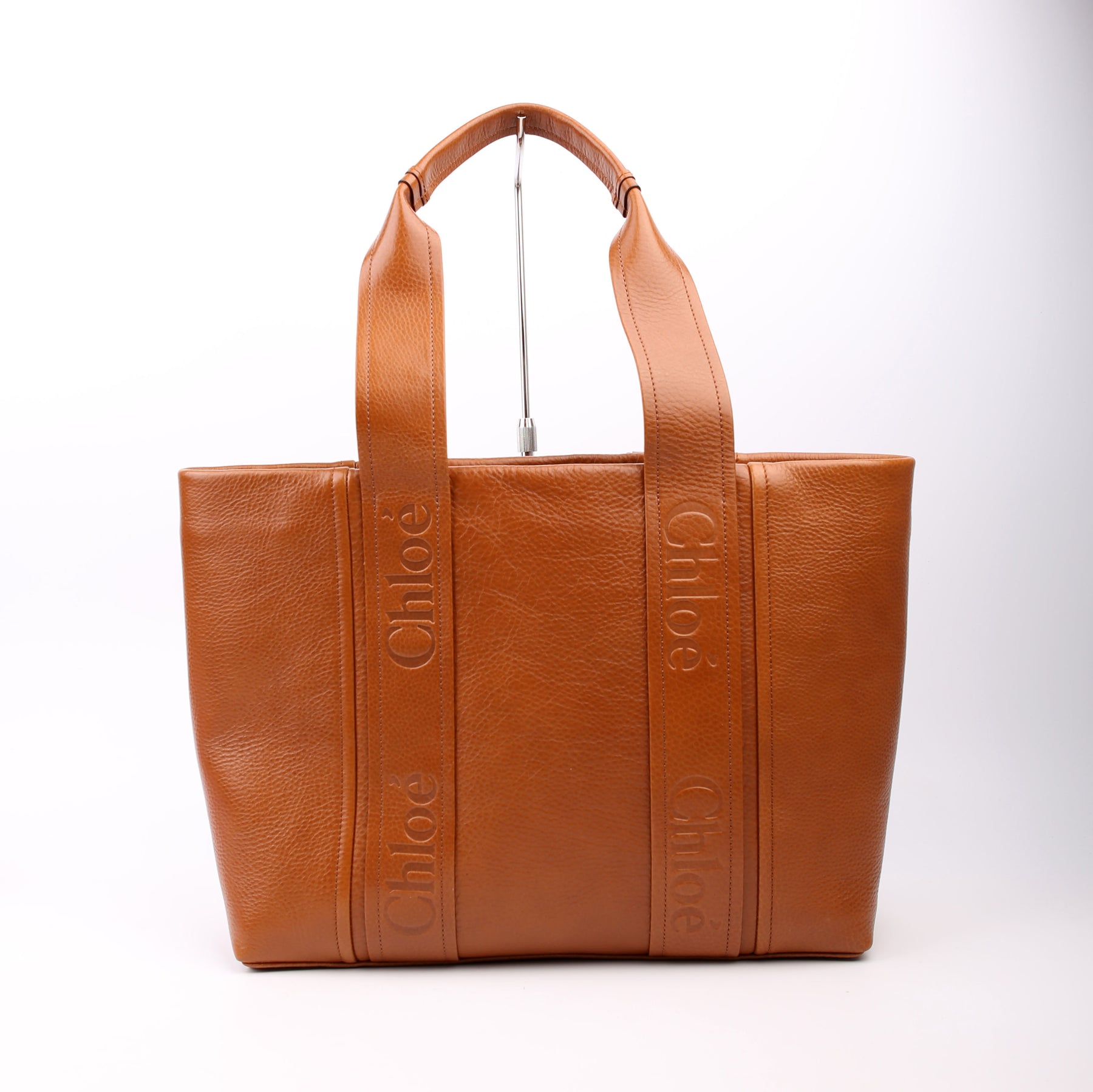 This pre-owned Chloe Woody Medium Shiny Grained Leather Tote is guaranteed 100% authentic.