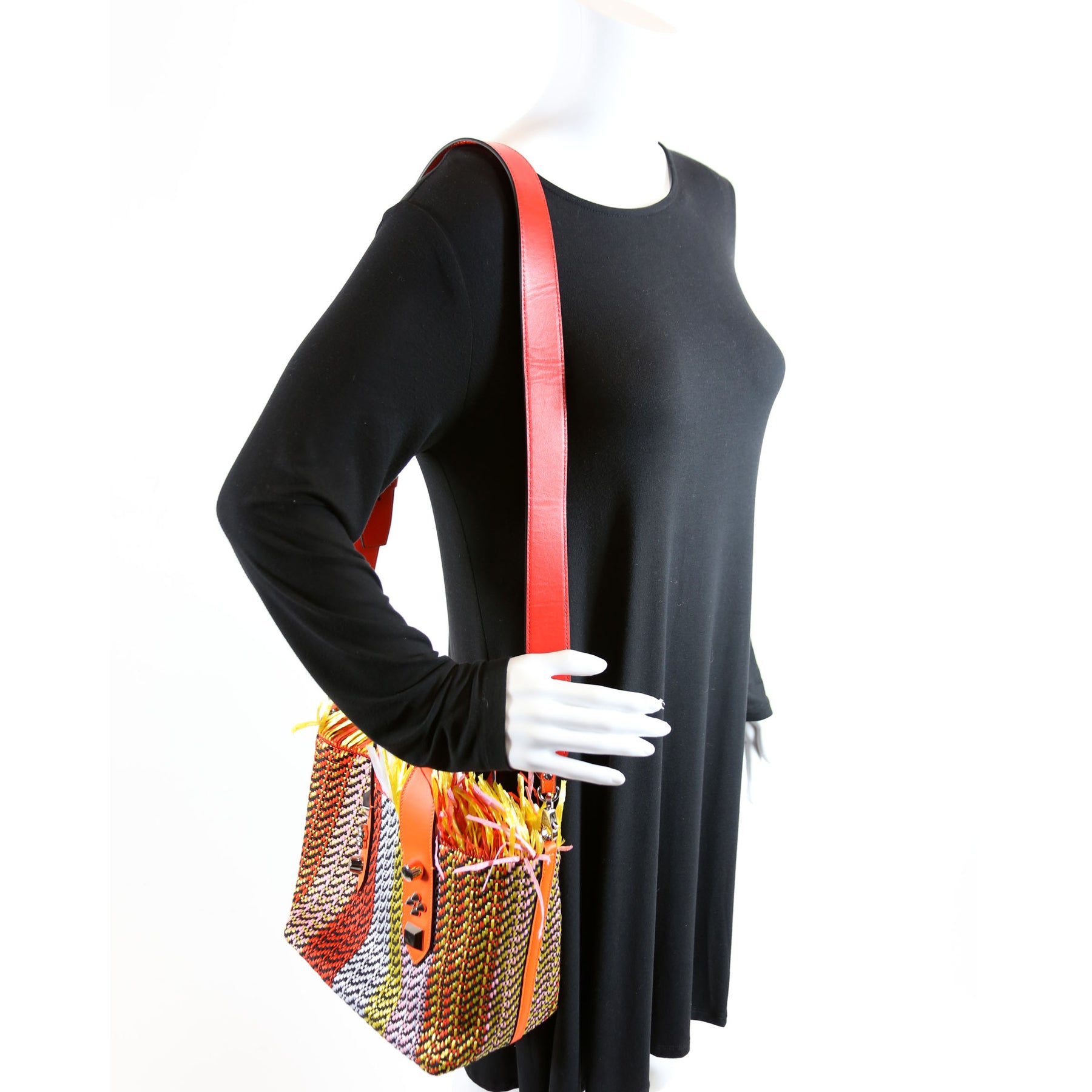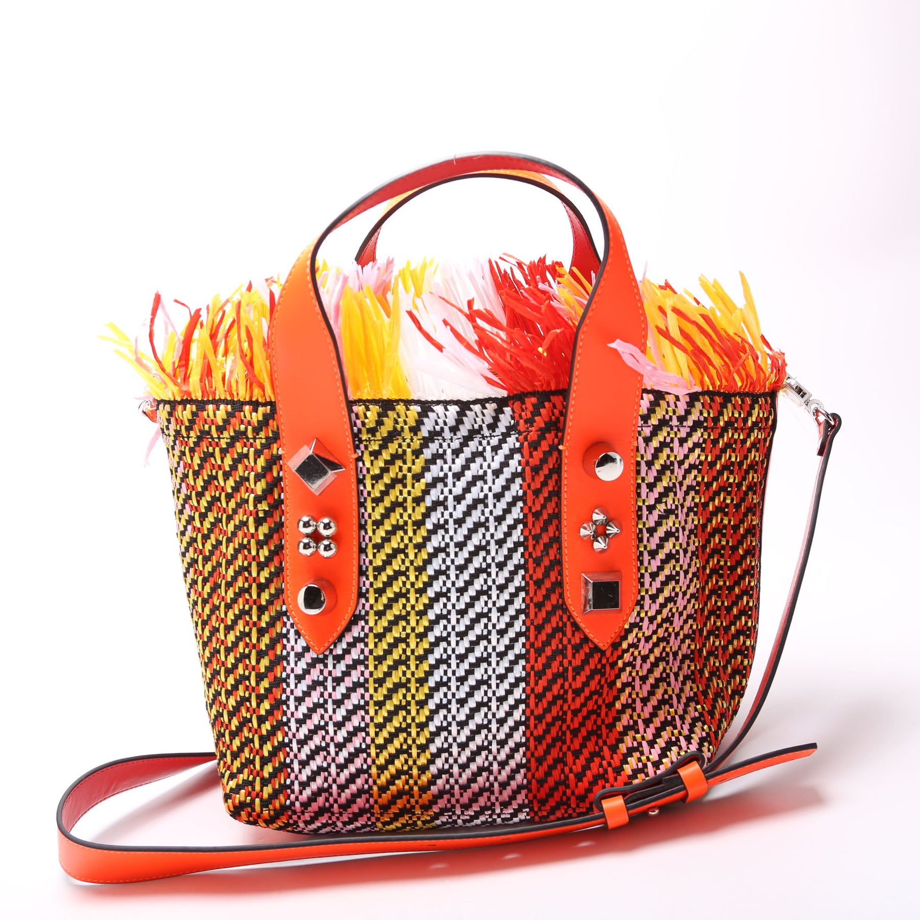 This pre-owned Christian Louboutin Frangibus Fringe Raffia Small Tote is guaranteed 100% authentic.