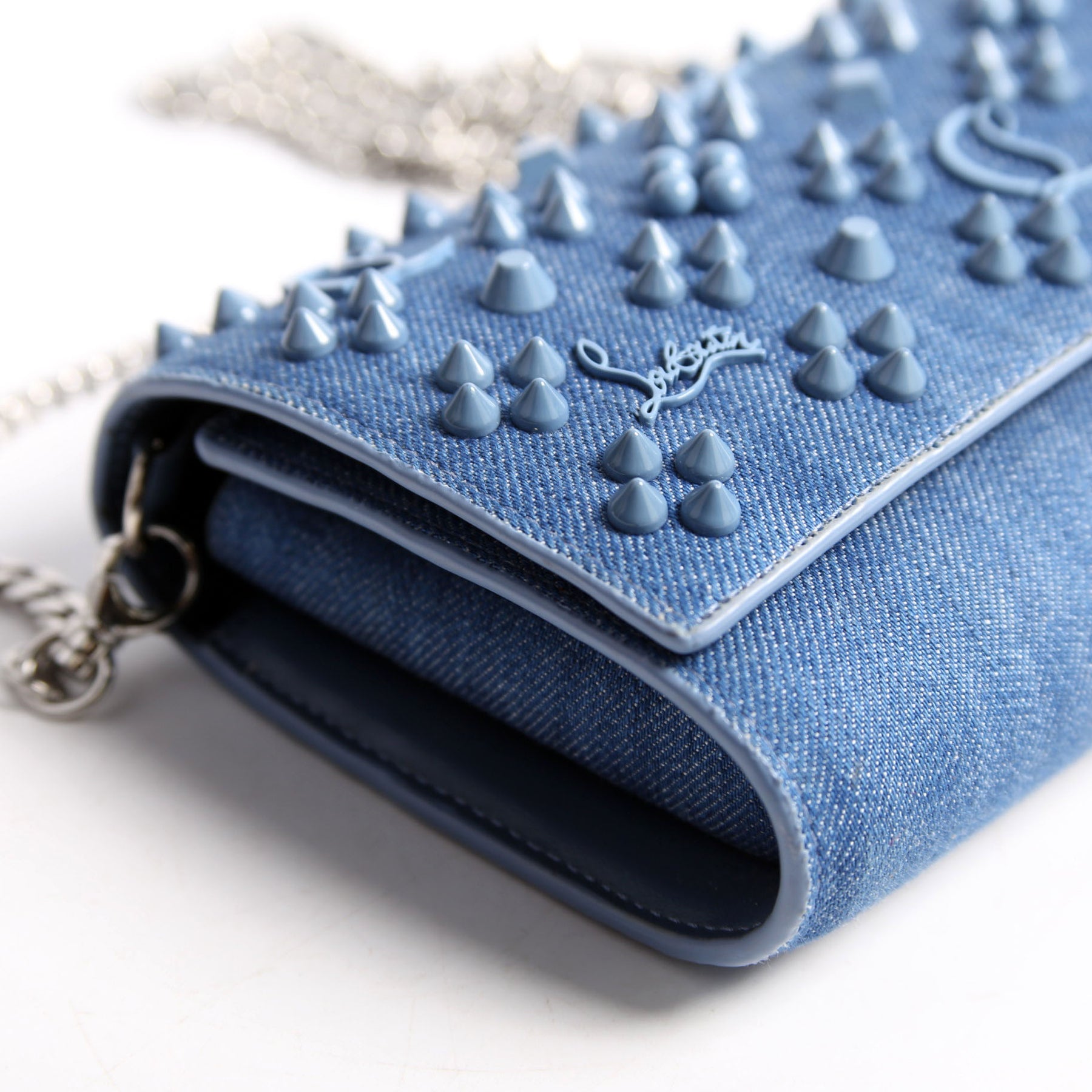 This pre-owned Christian Louboutin Paloma Denim Wallet On Chain is guaranteed 100% authentic.