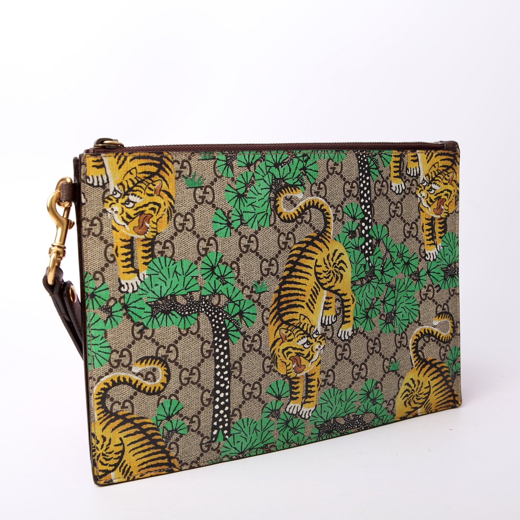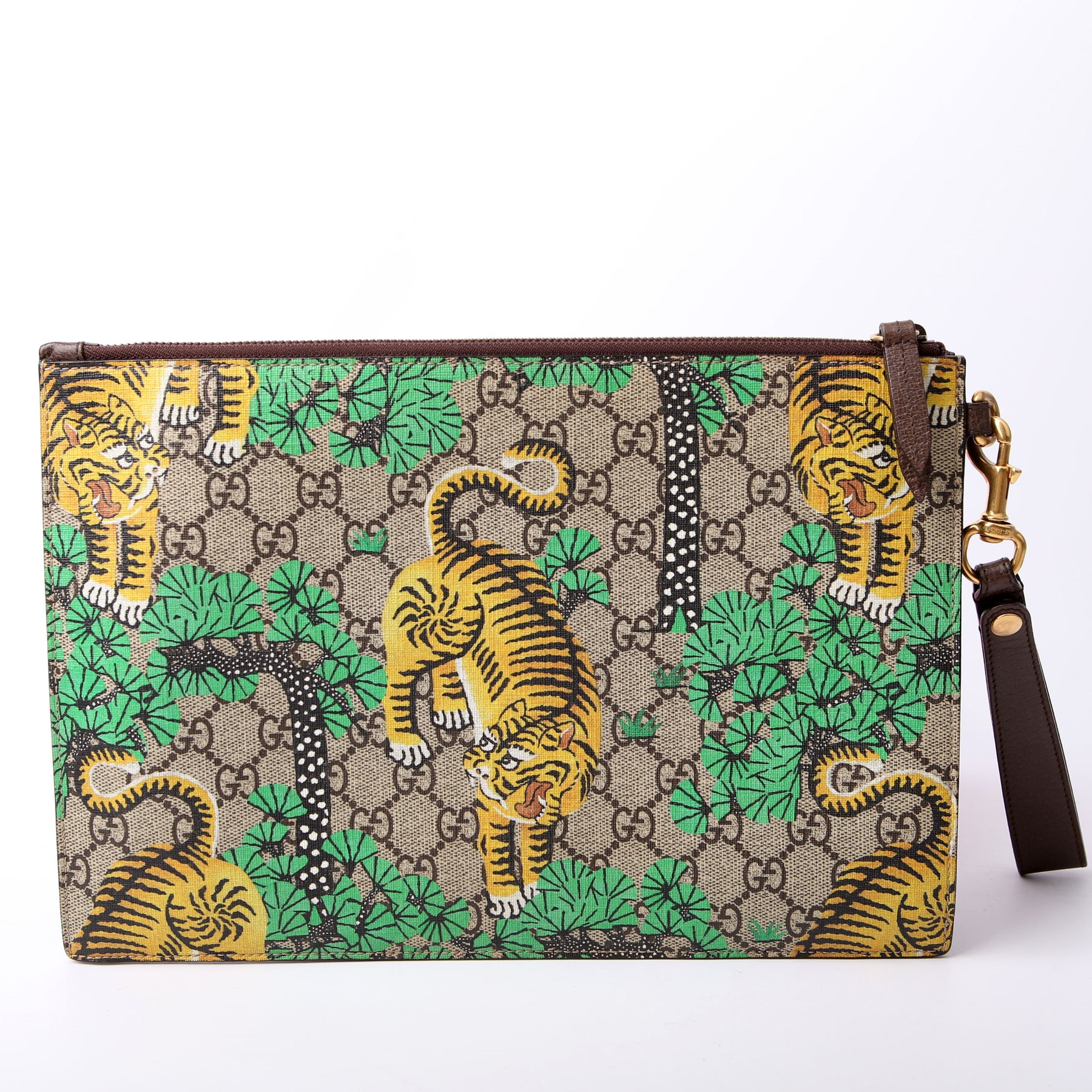 This pre-owned Gucci GG Supreme Bengal Wristlet is guaranteed 100% authentic.
