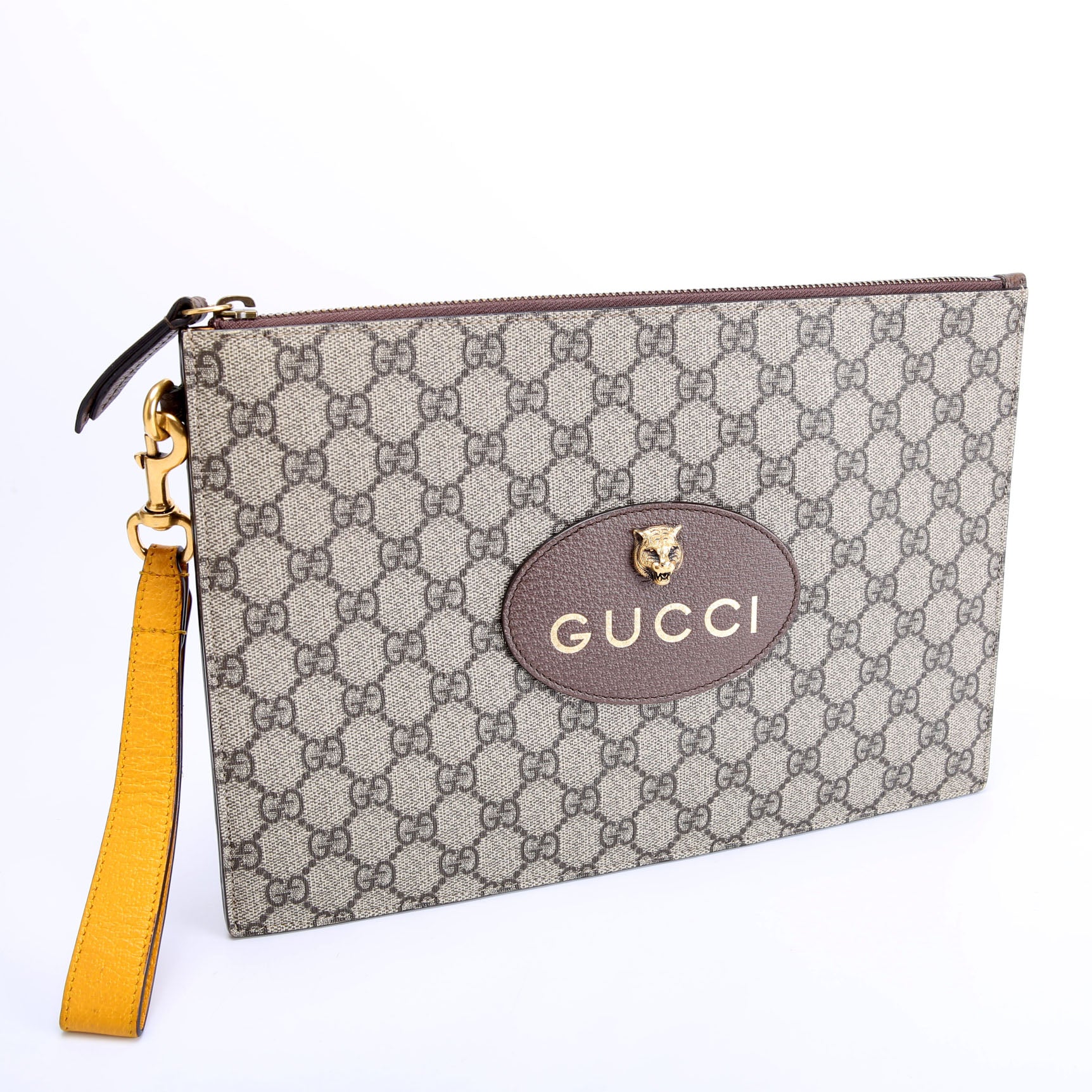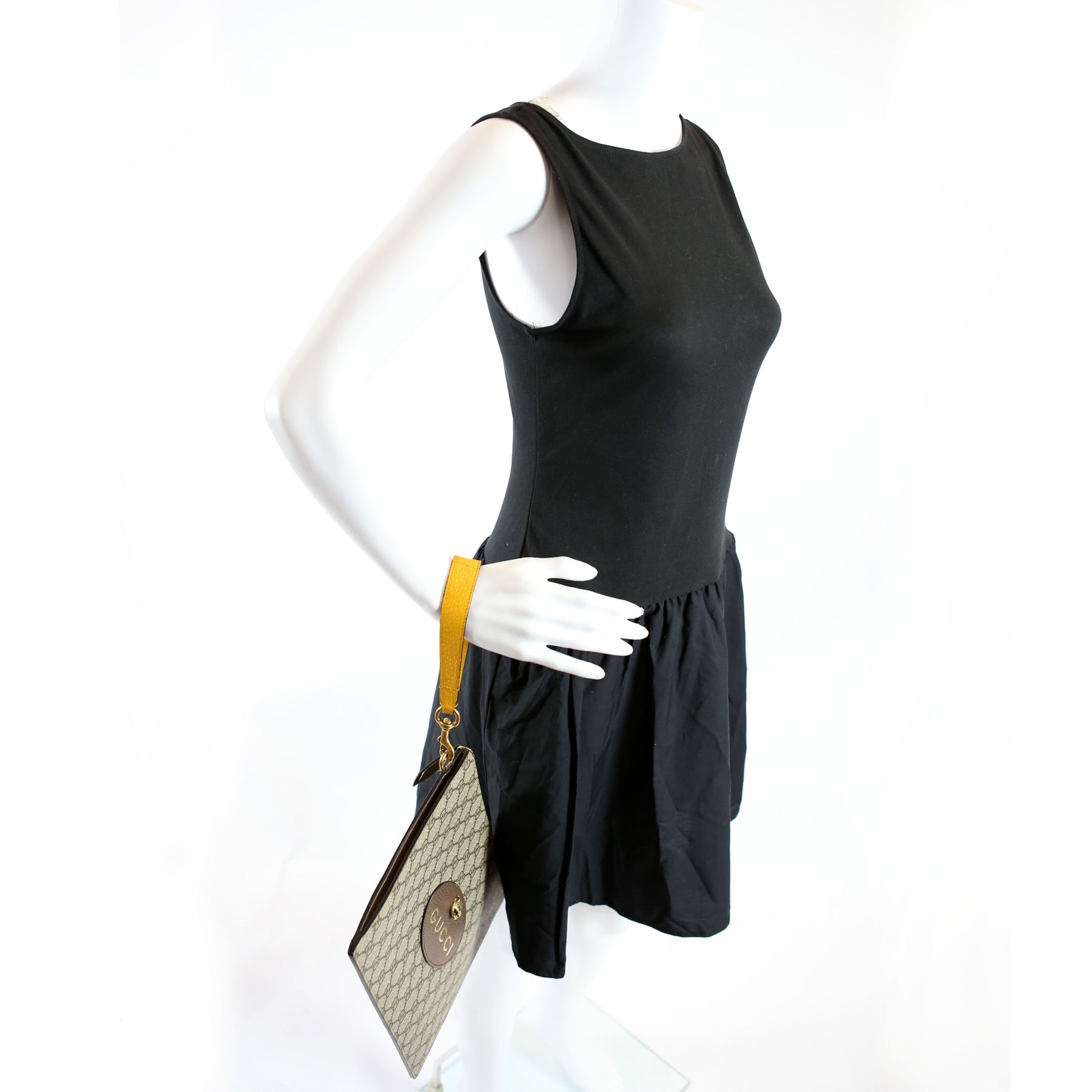 This pre-owned Gucci Neo Vintage Pouch is guaranteed 100% authentic. The exterior is in the classic Gucci Supreme Canvas