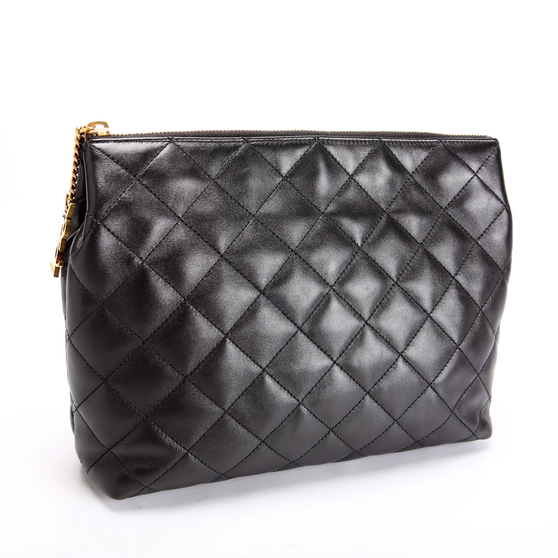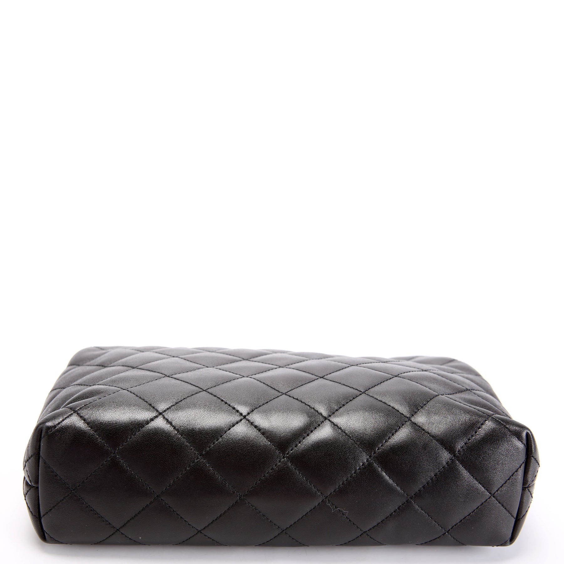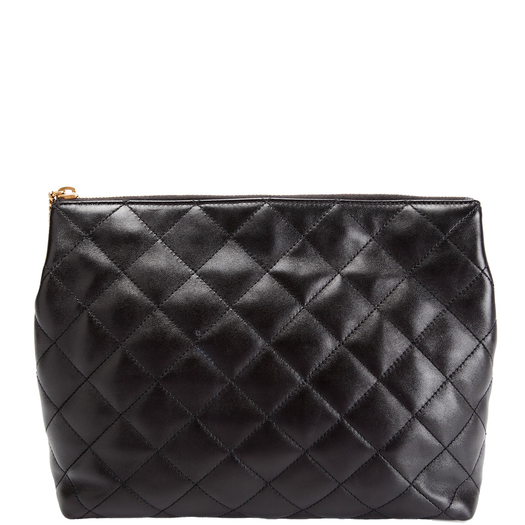 This pre-owned Saint Laurent Cassandre Cosmetic Pouch is guaranteed 100% authentic. The exterior is in the classic Saint Laurent leather.