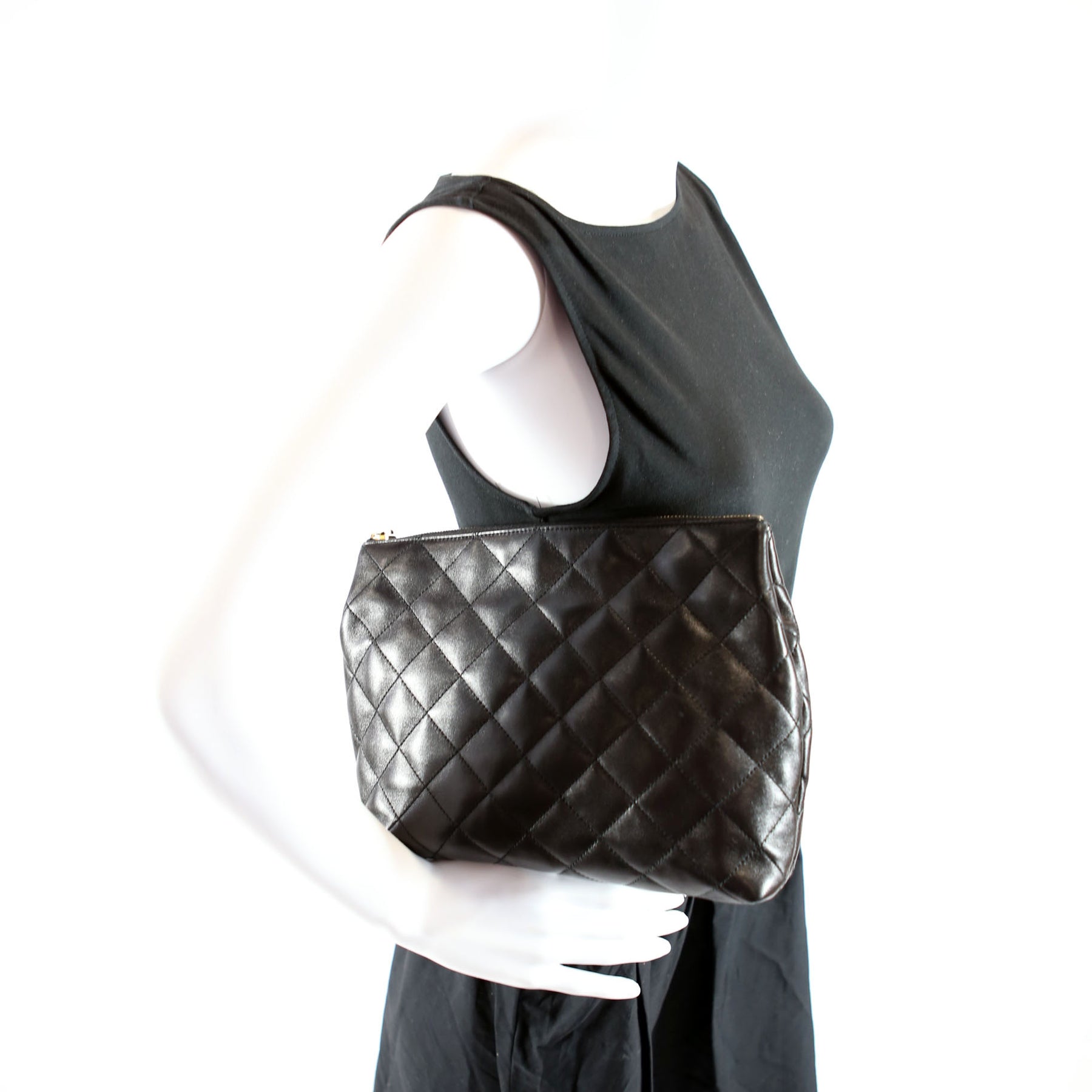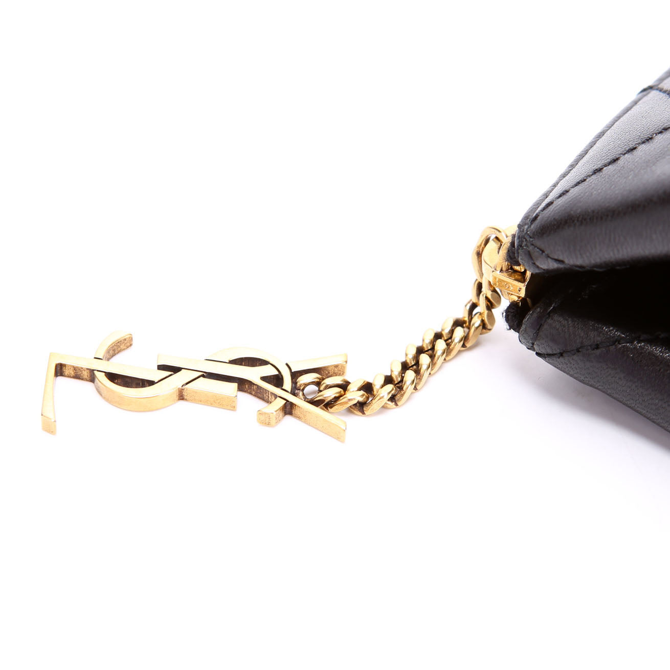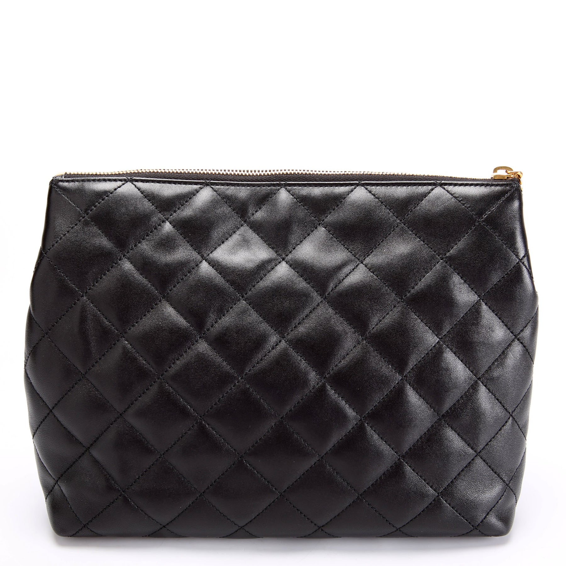 This pre-owned Saint Laurent Cassandre Cosmetic Pouch is guaranteed 100% authentic. The exterior is in the classic Saint Laurent leather.