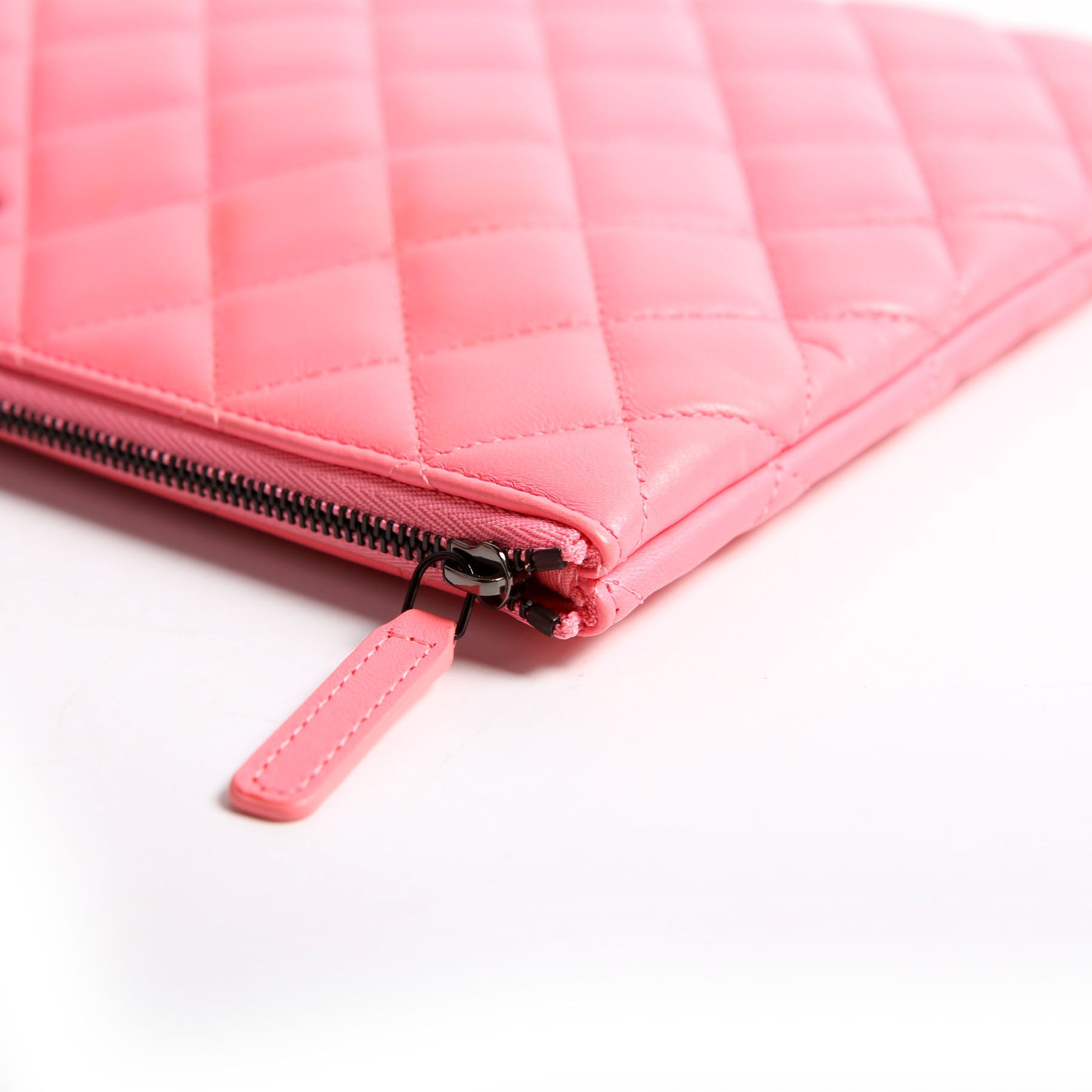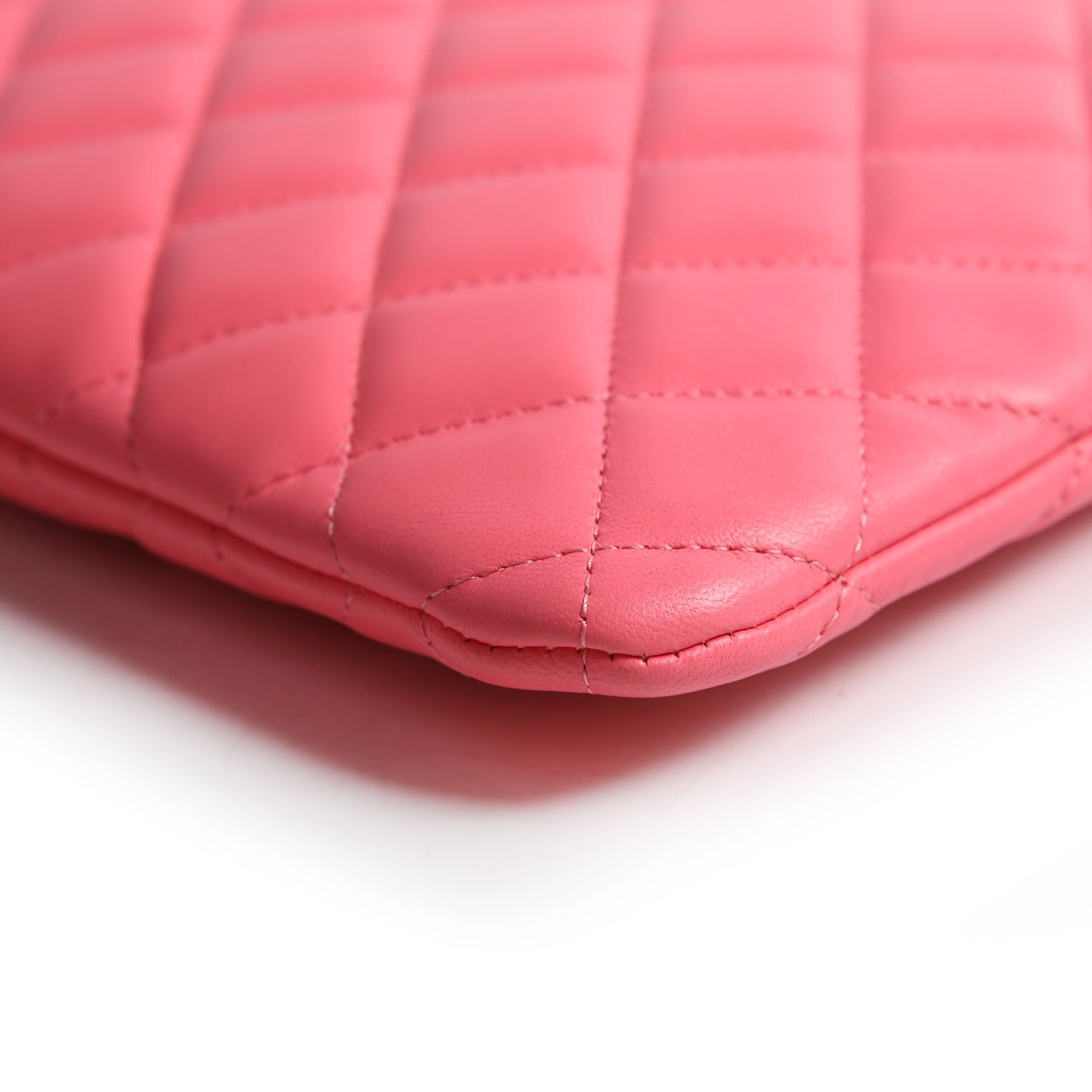 This pre-owned Chanel O Case Medium is guaranteed 100% authentic. The exterior is in the classic Chanel Lambskin leather.