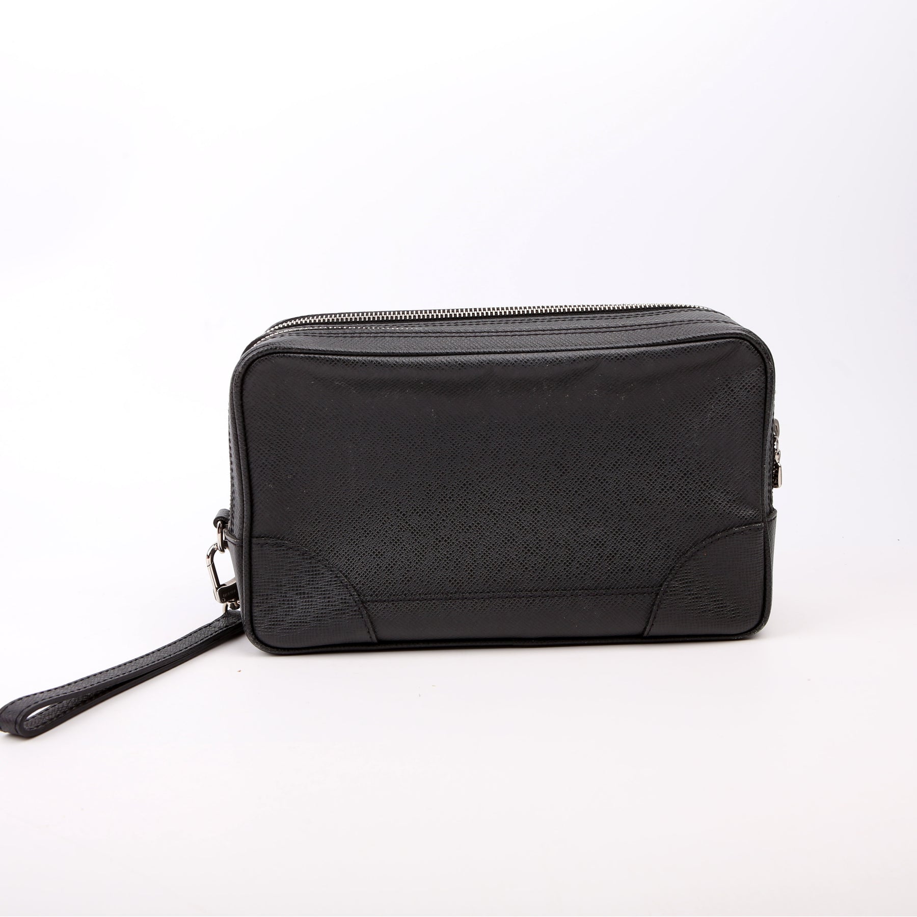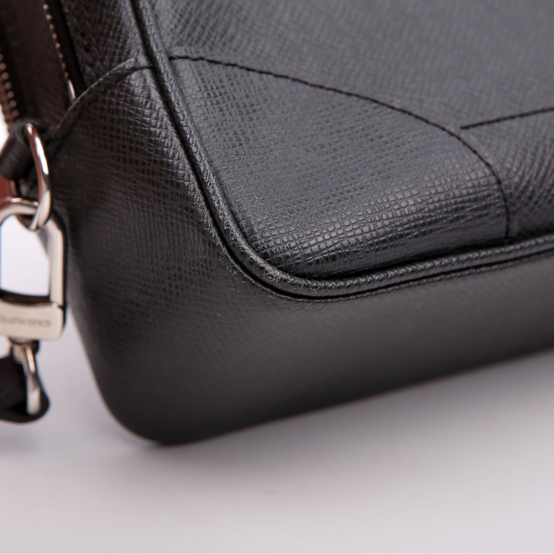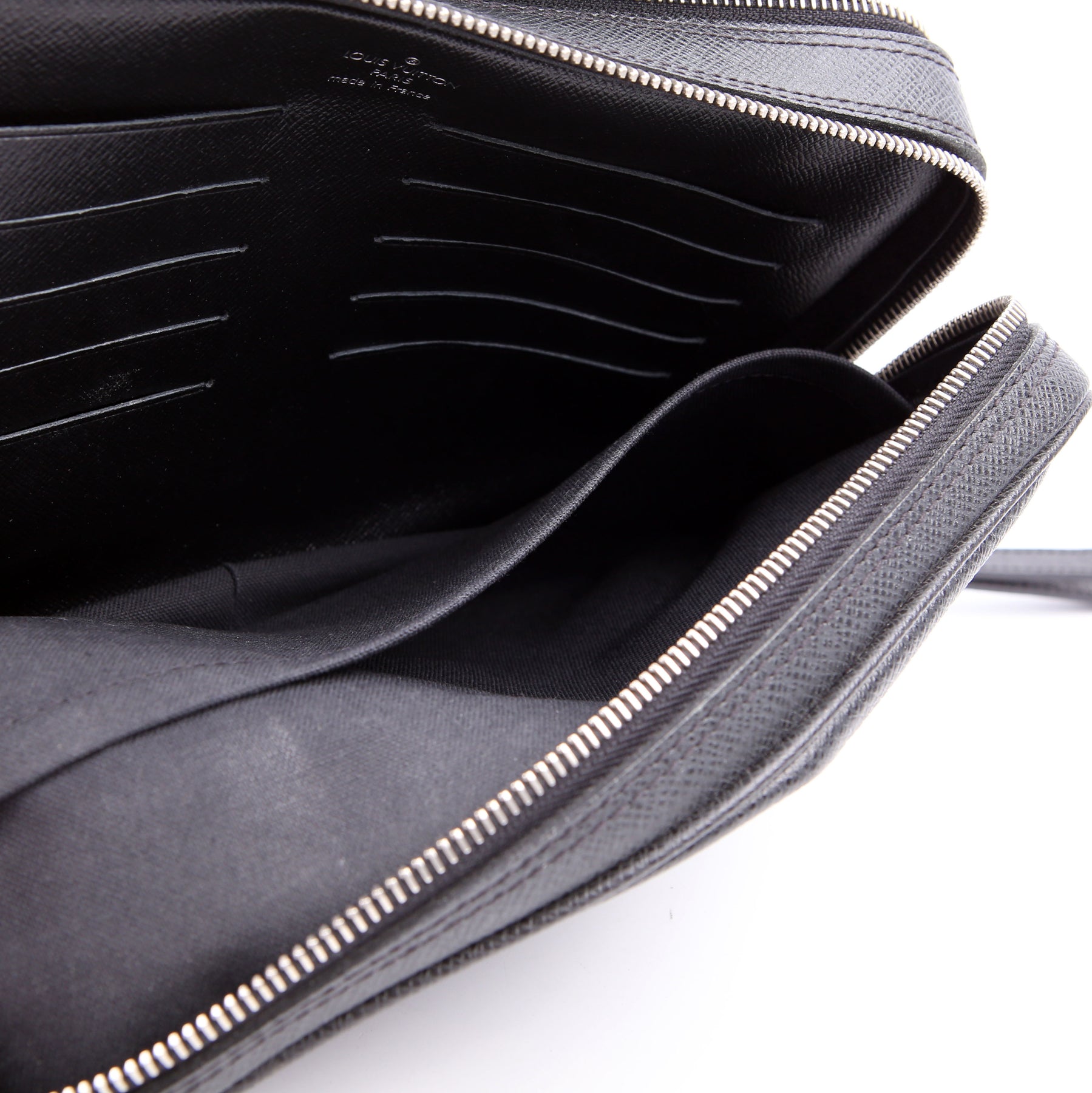This pre-owned Louis Vuitton Pavel Ardoise Wristlet is guaranteed 100% authentic. The exterior is in the classic Louis Vuitton Taiga leather.