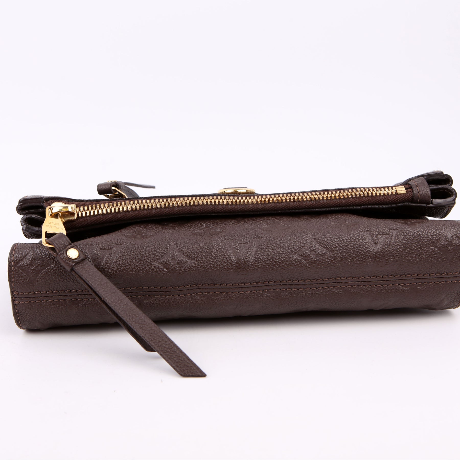 This pre-owned Louis Vuitton Petillante Clutch is guaranteed 100% authentic. The exterior is in the classic Louis Vuitton Empreinte leather.